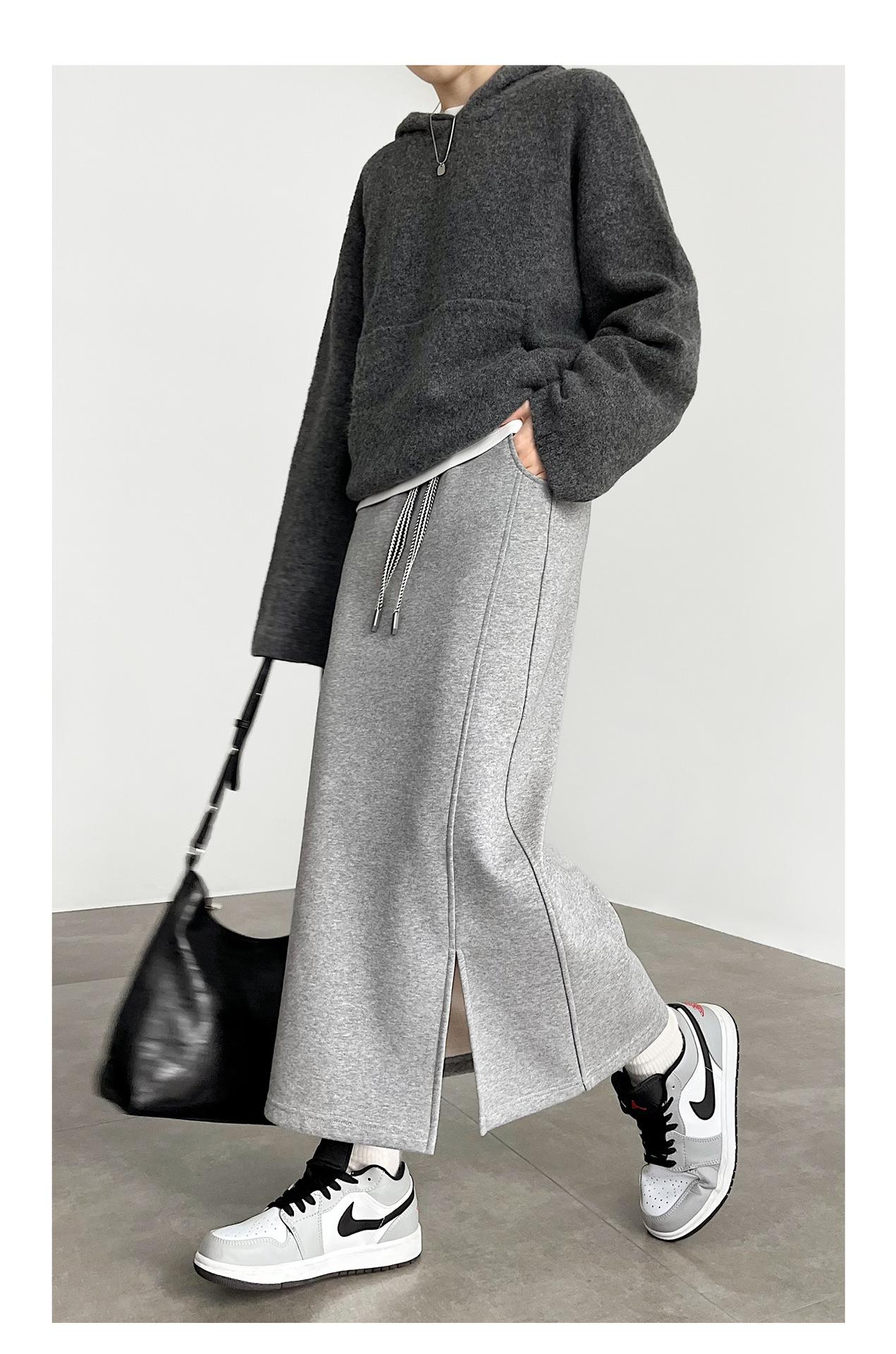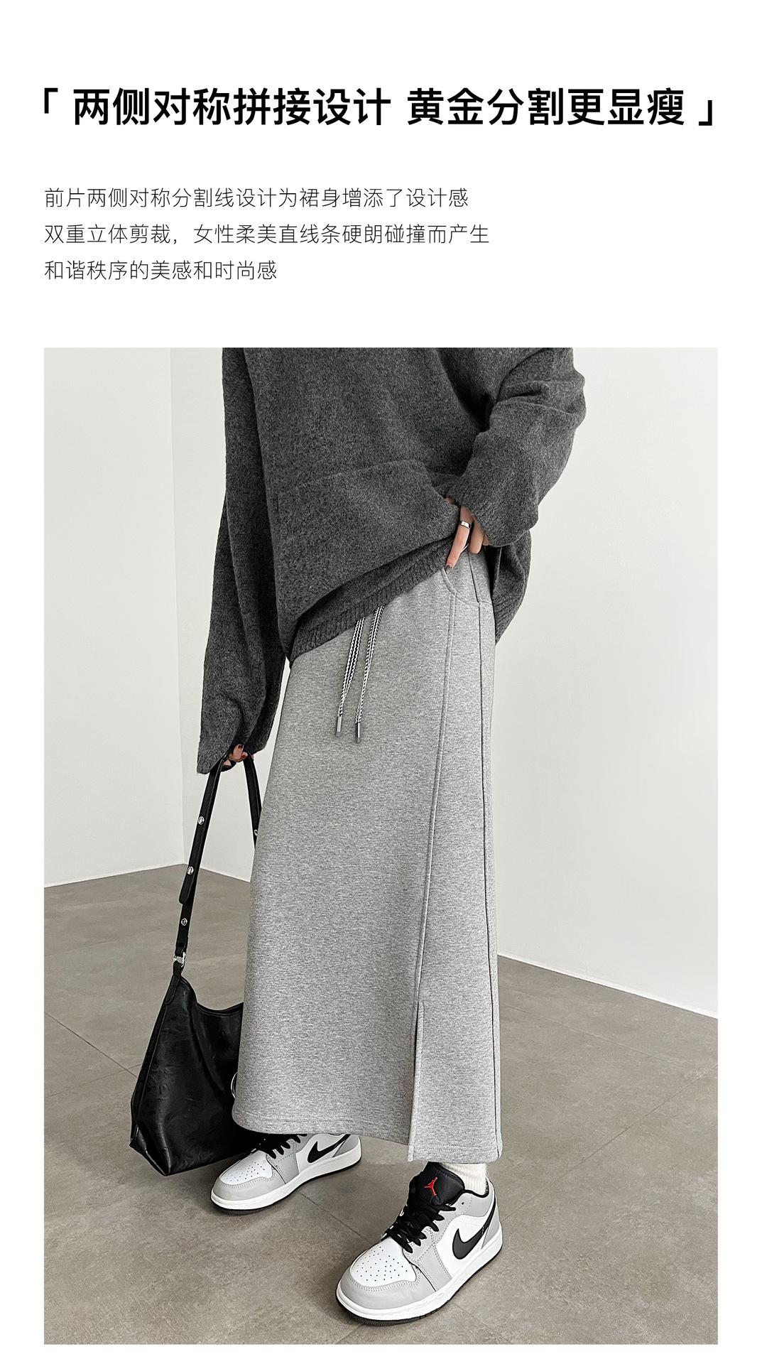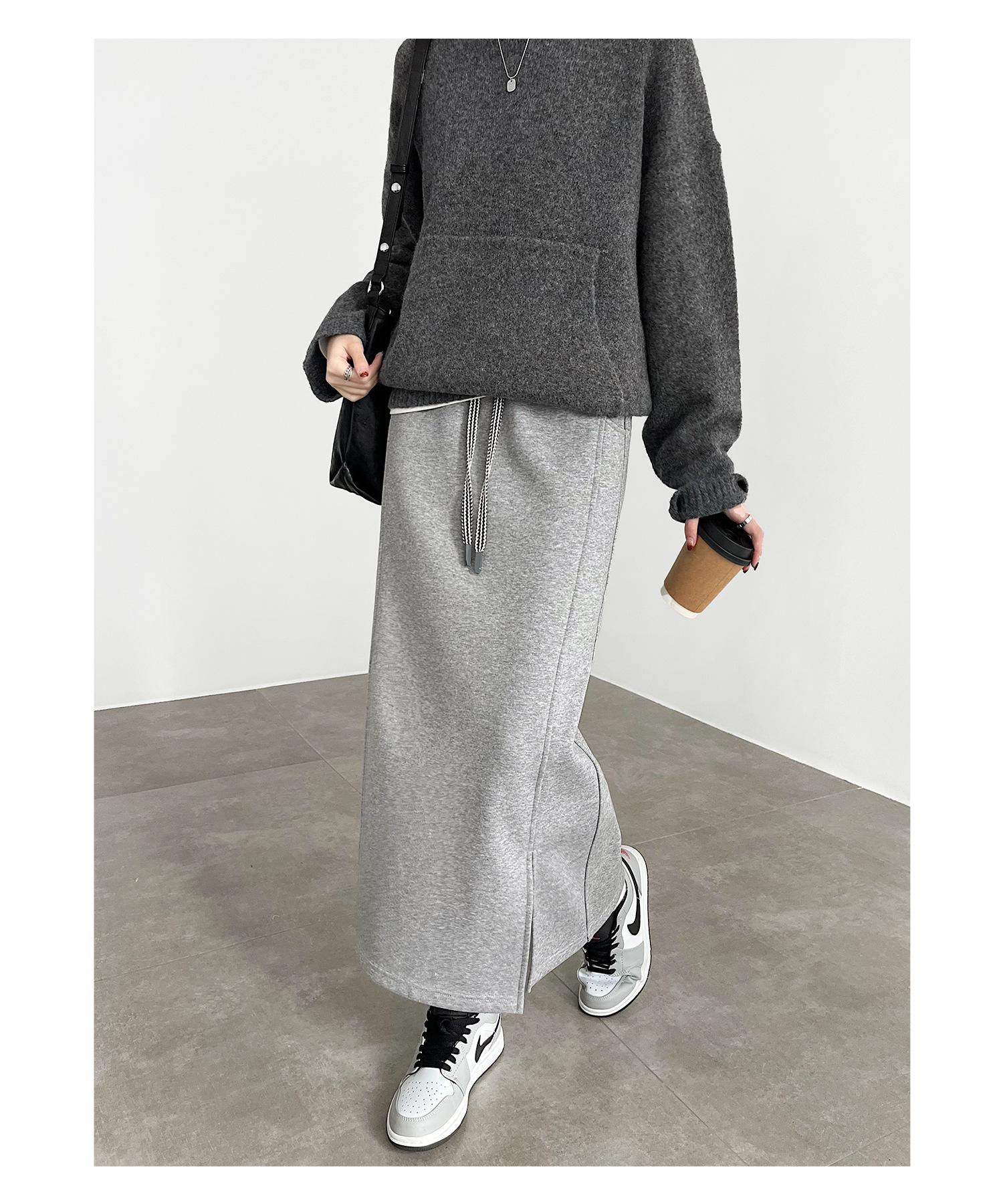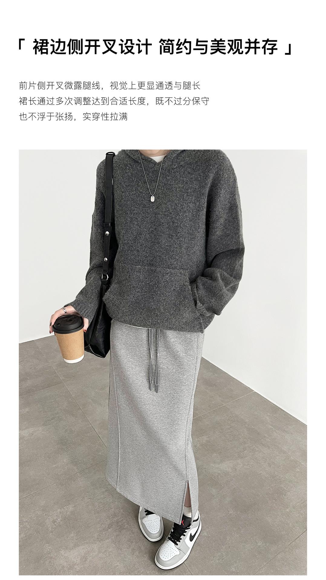 Falda Midi Gris con Abertura para Mujer Otoño 2025 Nueva Falda Lápiz Bodycon de Alta Gama Suelta Recta Larga Vestido Sudadera