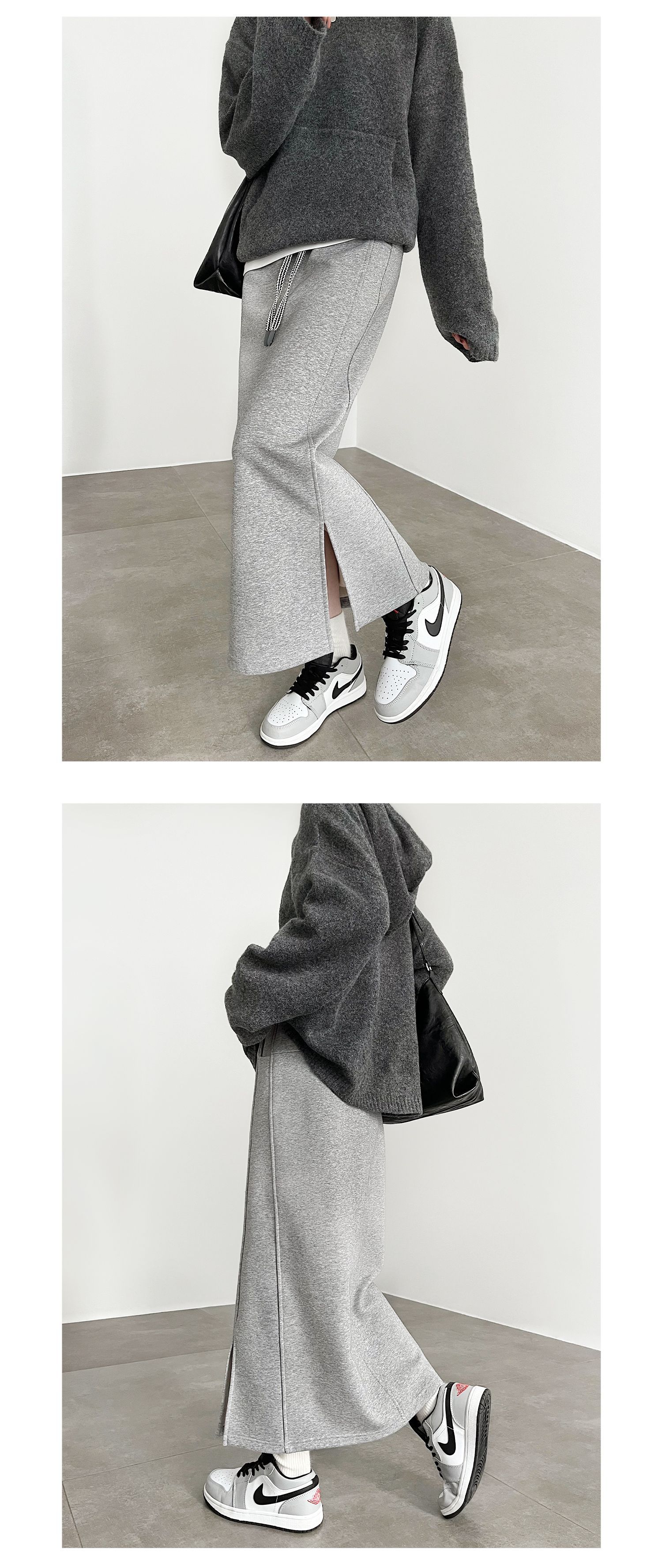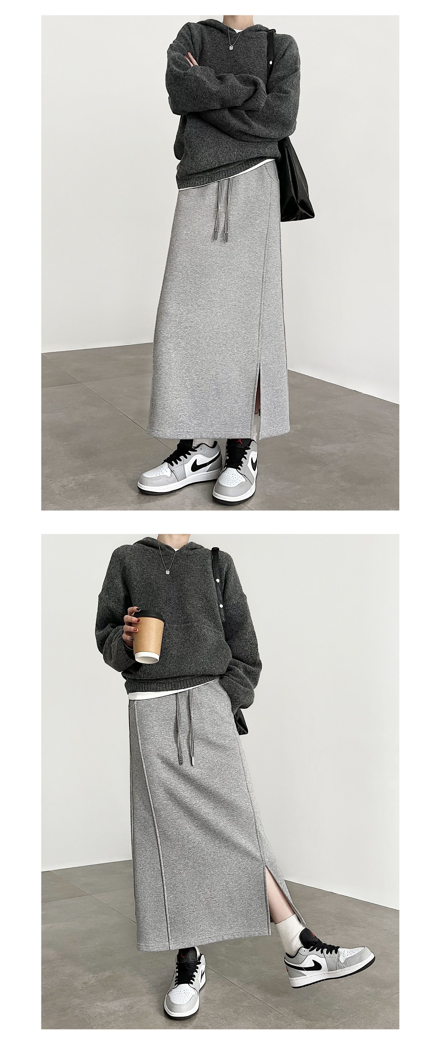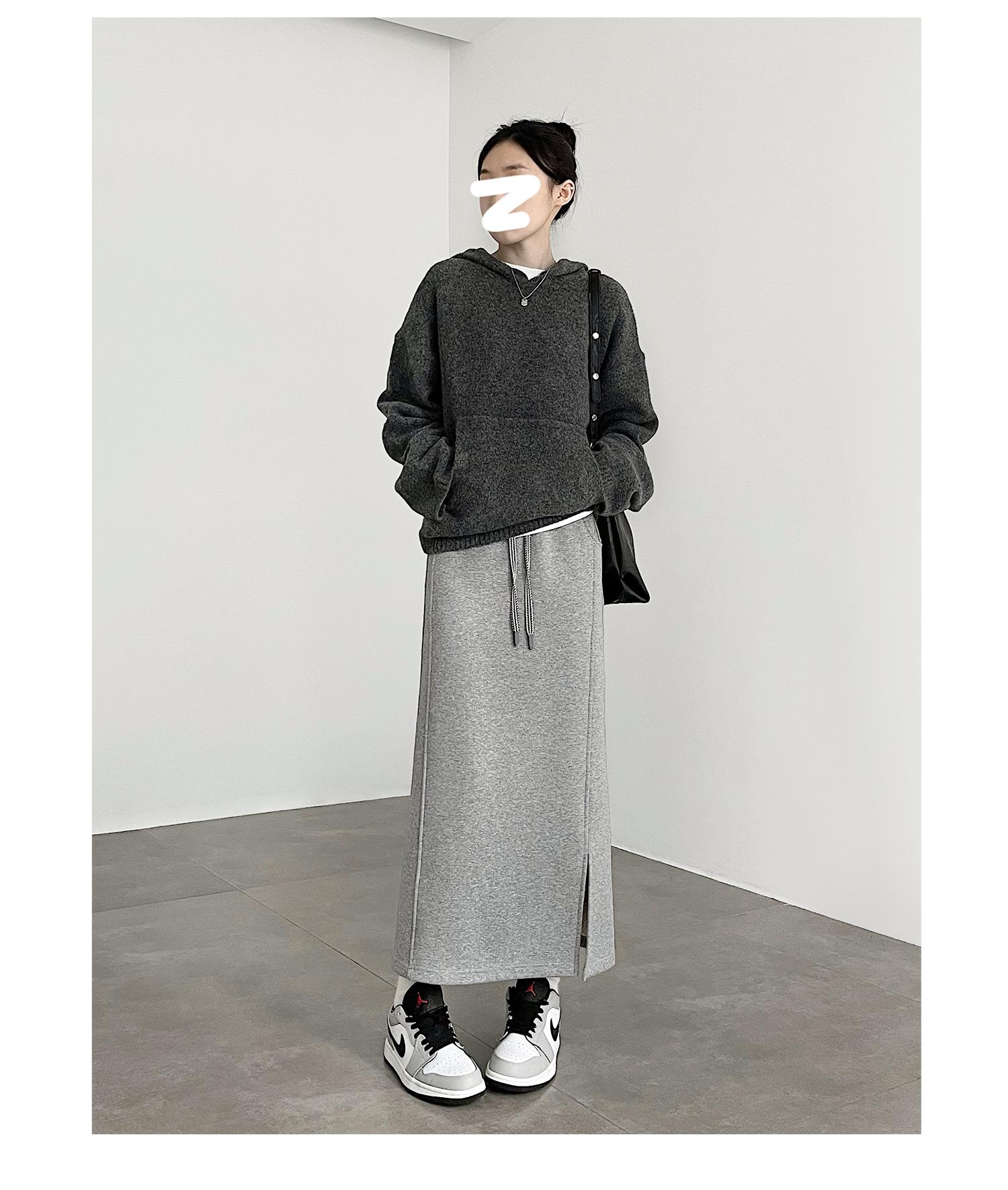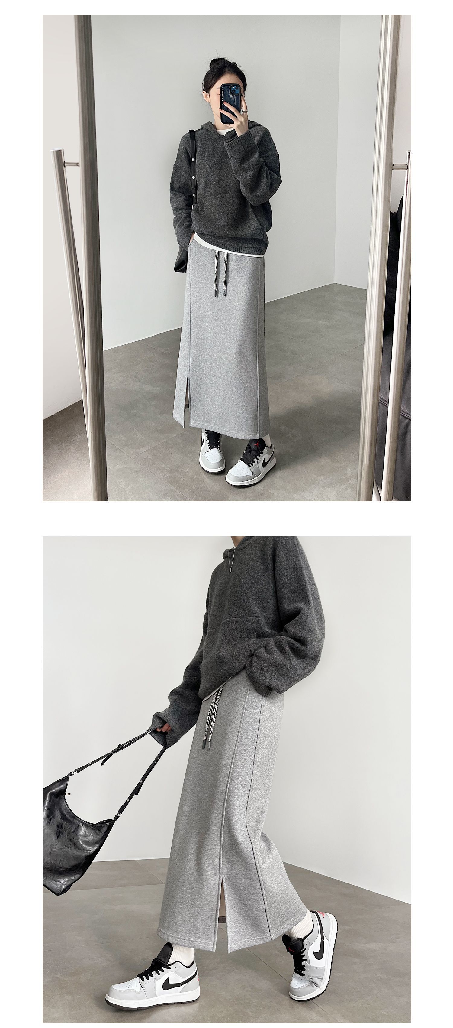 Falda Midi Gris con Abertura para Mujer Otoño 2025 Nueva Falda Lápiz Bodycon de Alta Gama Suelta Recta Larga Vestido Sudadera