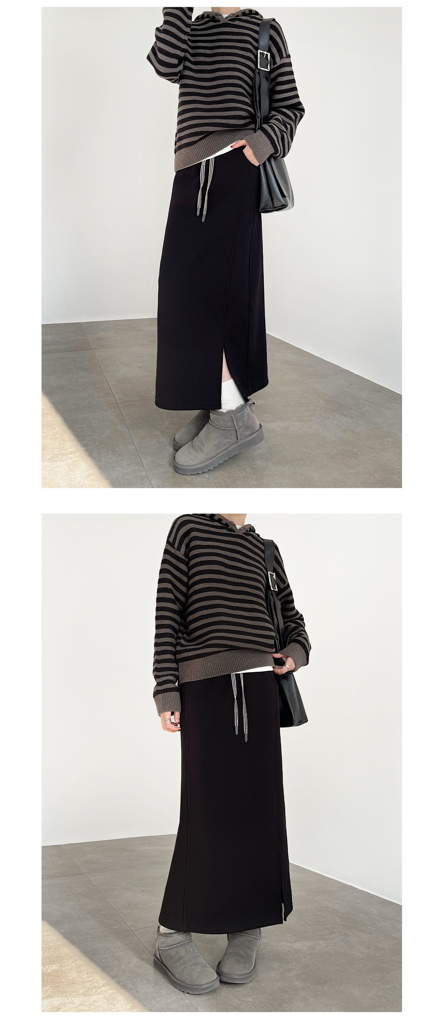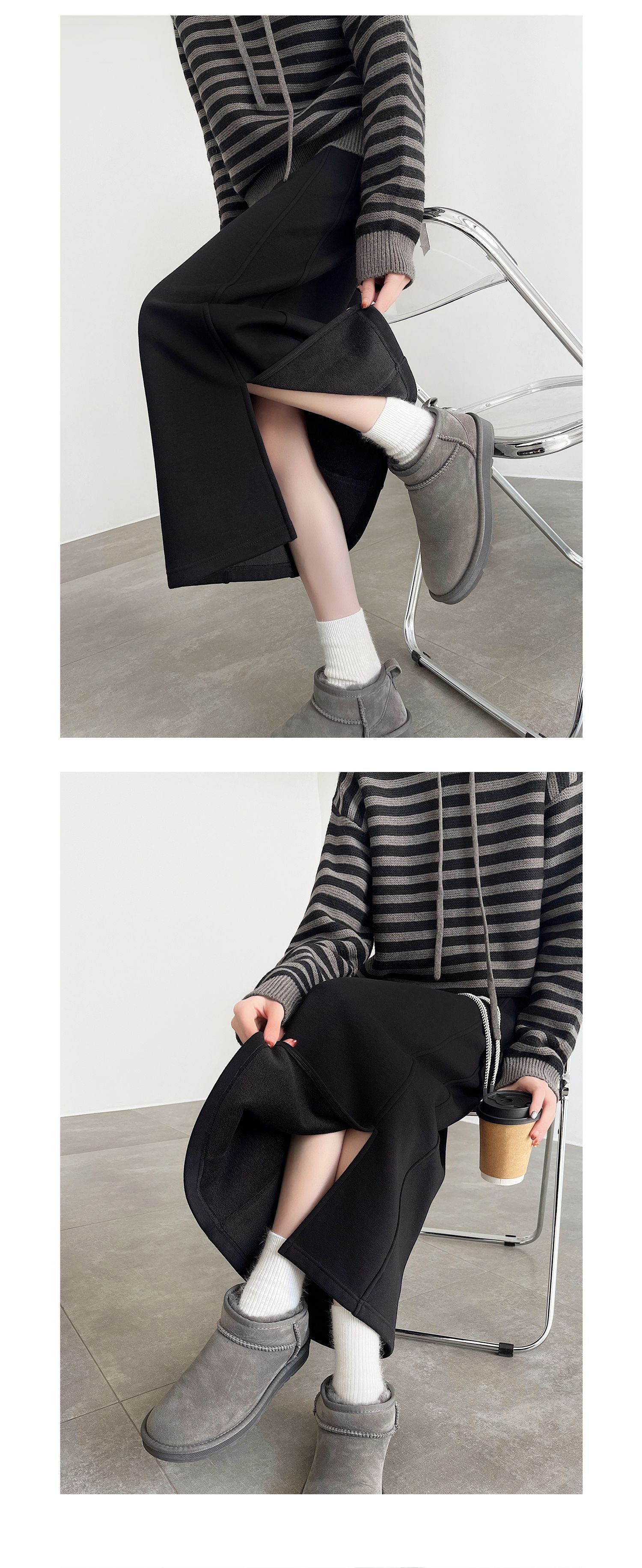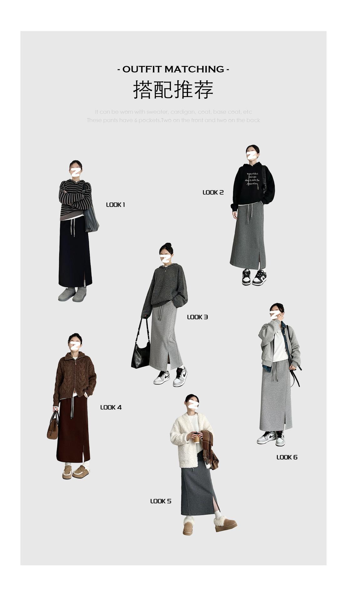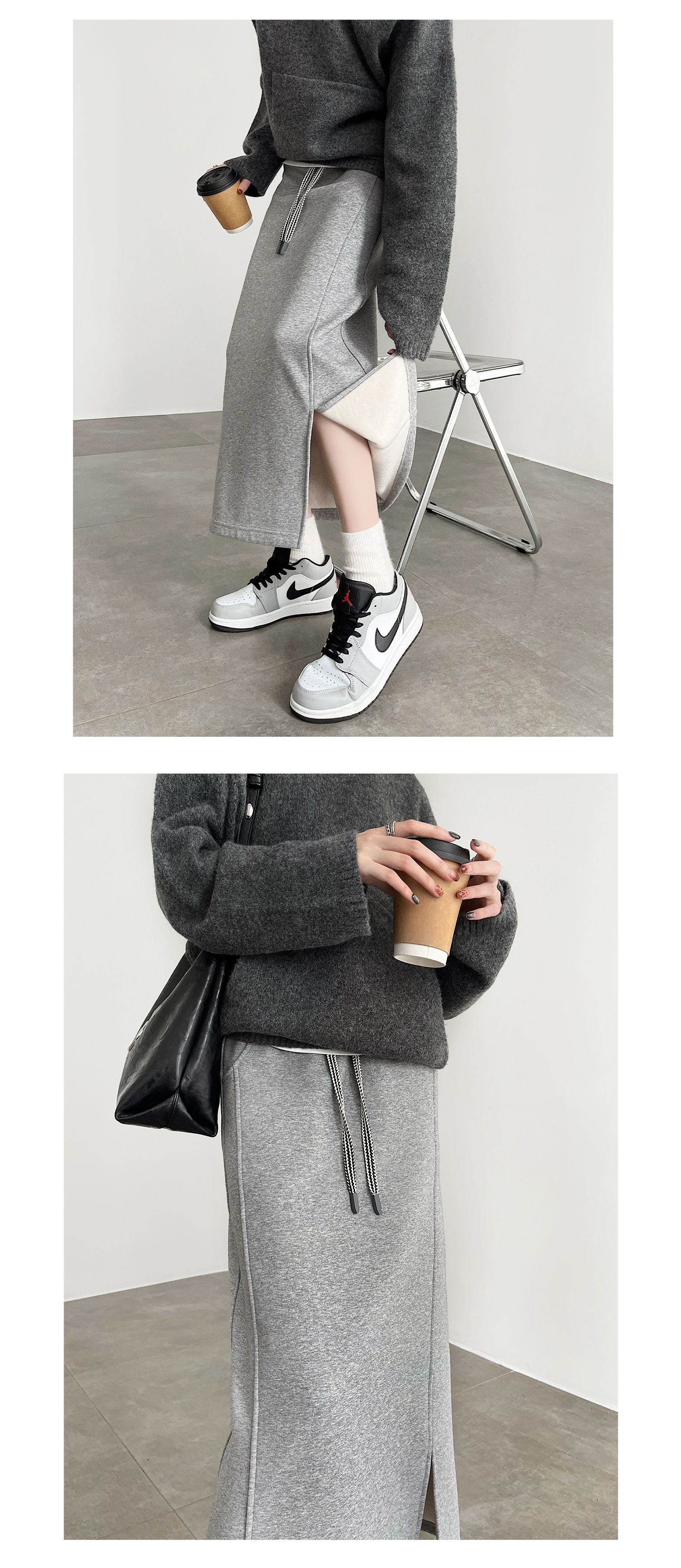 Falda Midi Gris con Abertura para Mujer Otoño 2025 Nueva Falda Lápiz Bodycon de Alta Gama Suelta Recta Larga Vestido Sudadera