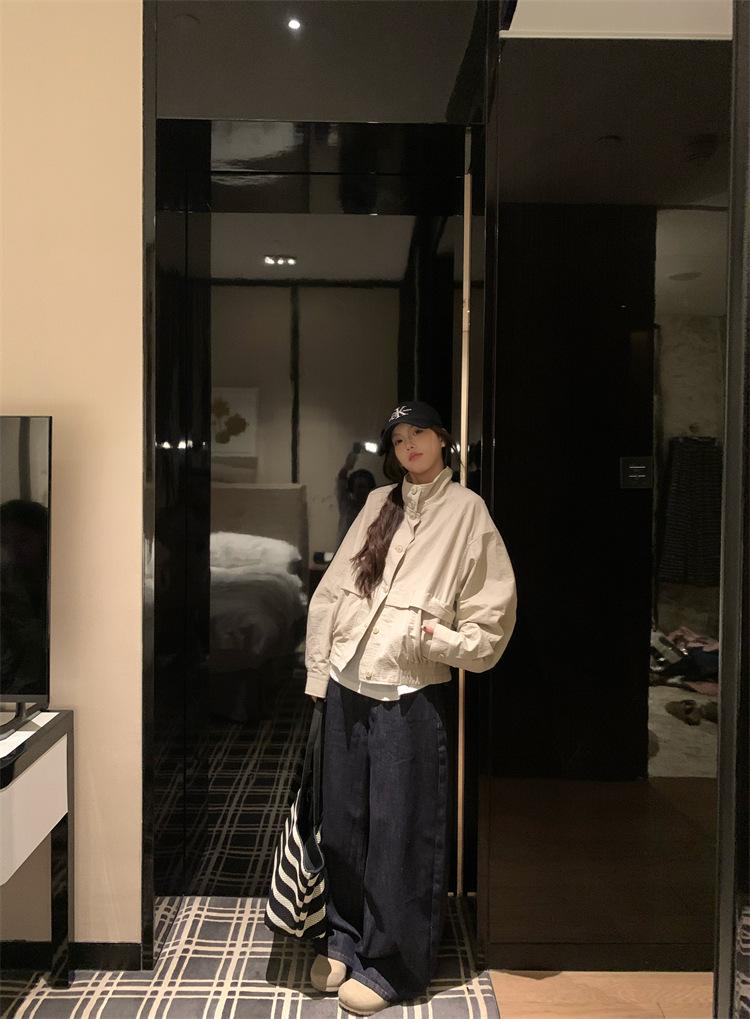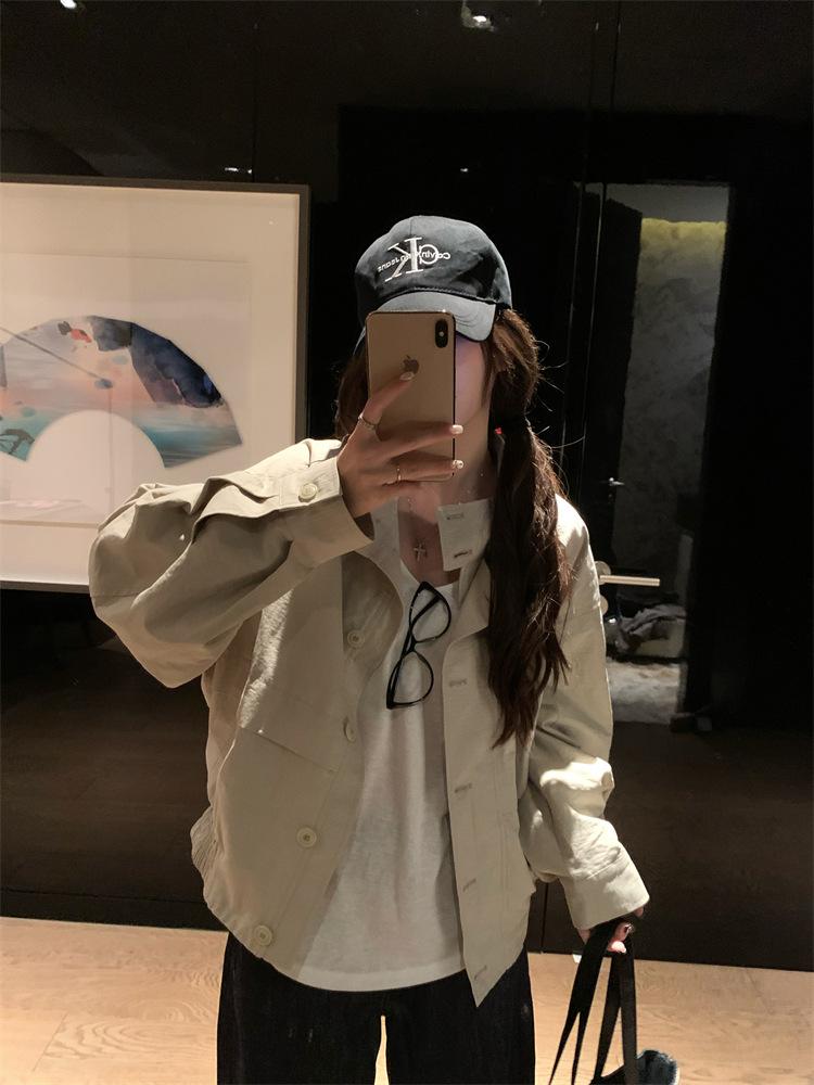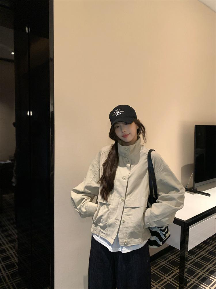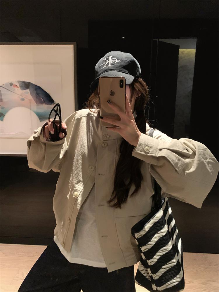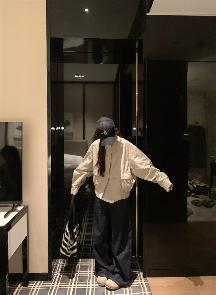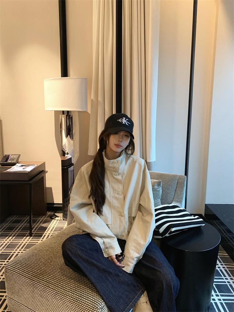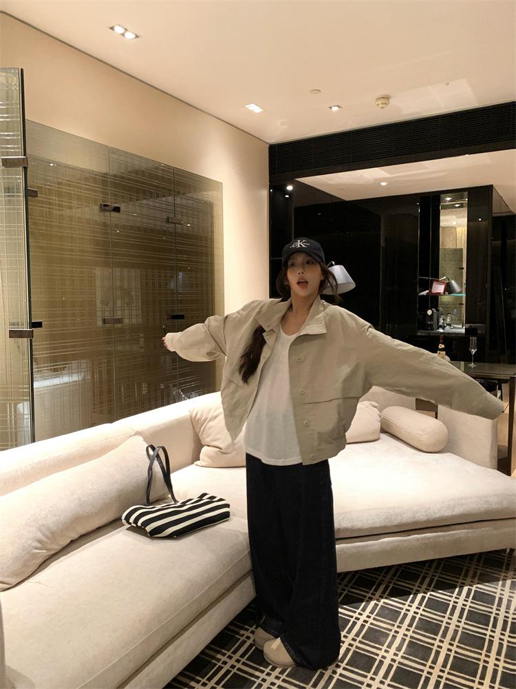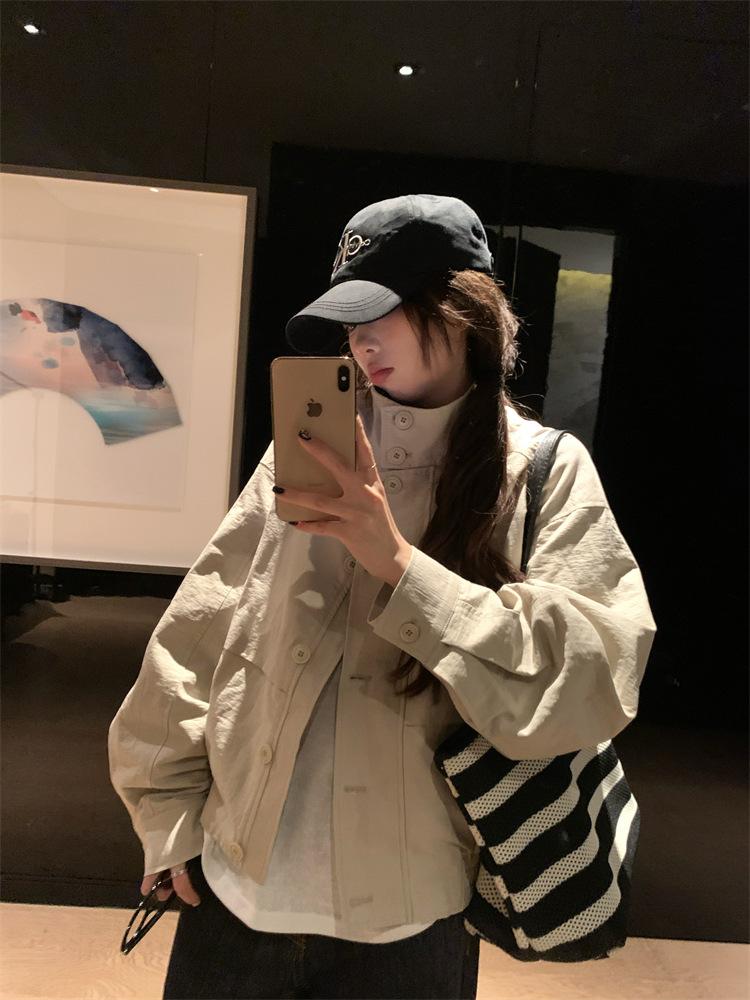 Foto en vivo~ Nuevo otoño ropa de trabajo holgada casual holgada gabardina de manga larga chaqueta para mujer retro versátil top ropa de mujer