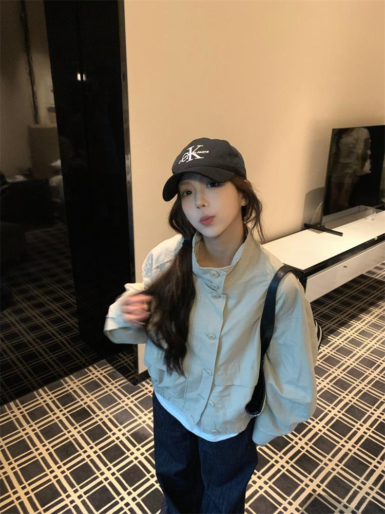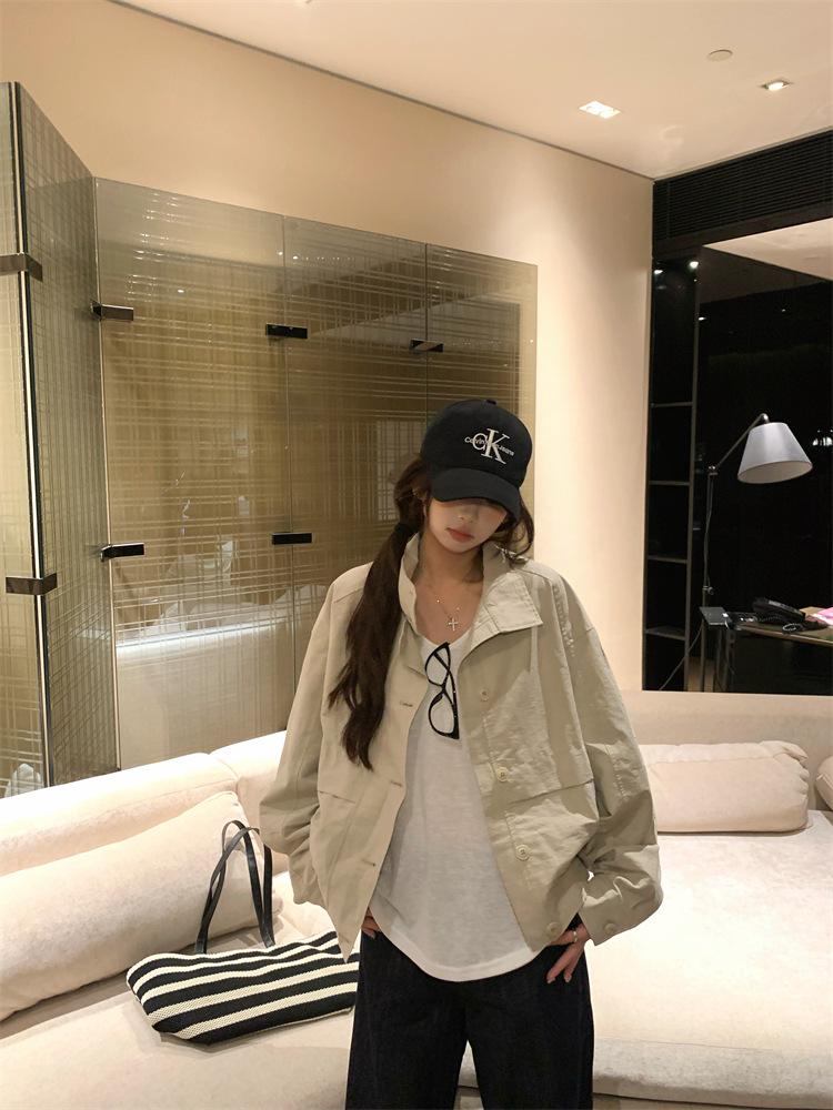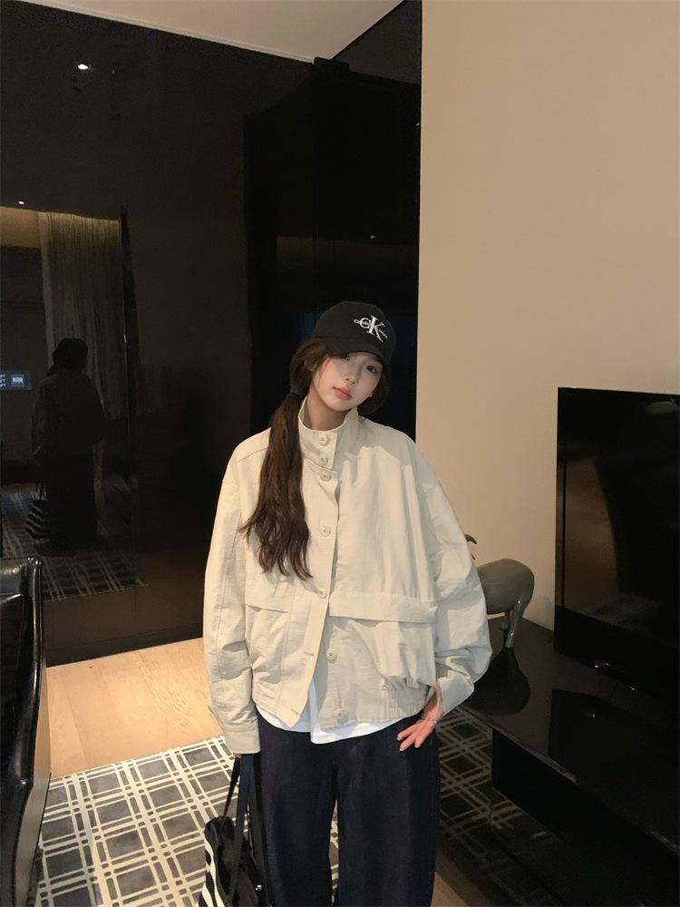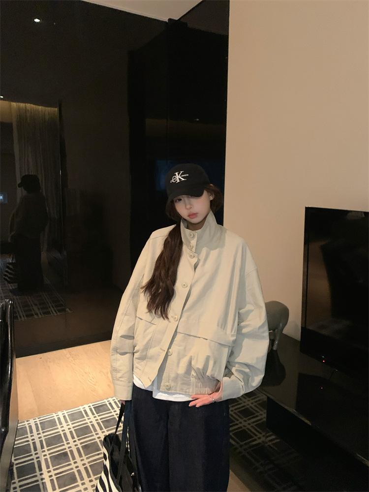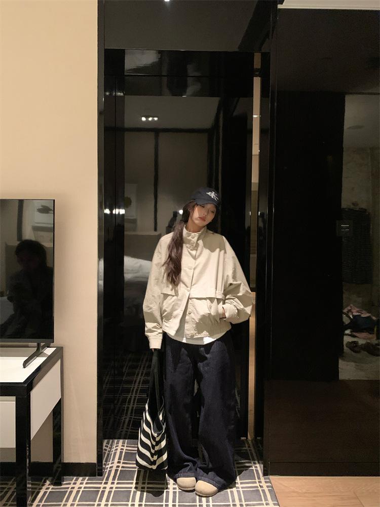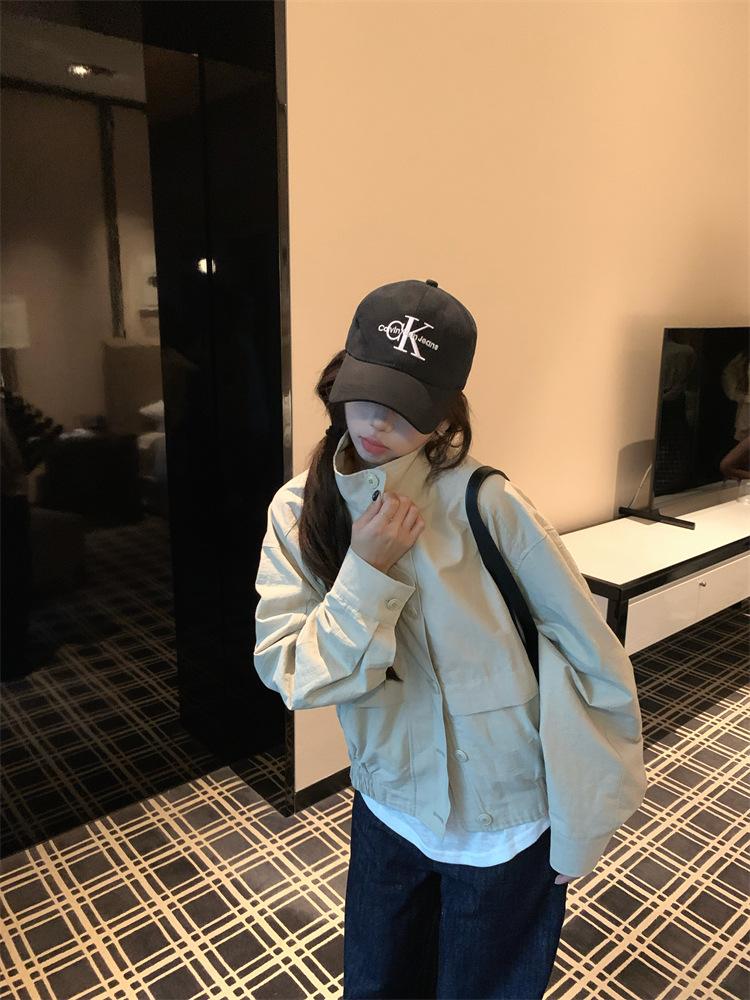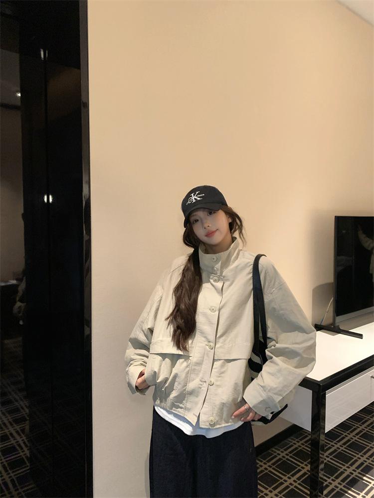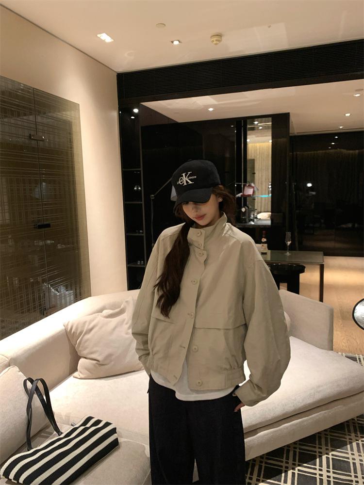 Foto en vivo~ Nuevo otoño ropa de trabajo holgada casual holgada gabardina de manga larga chaqueta para mujer retro versátil top ropa de mujer