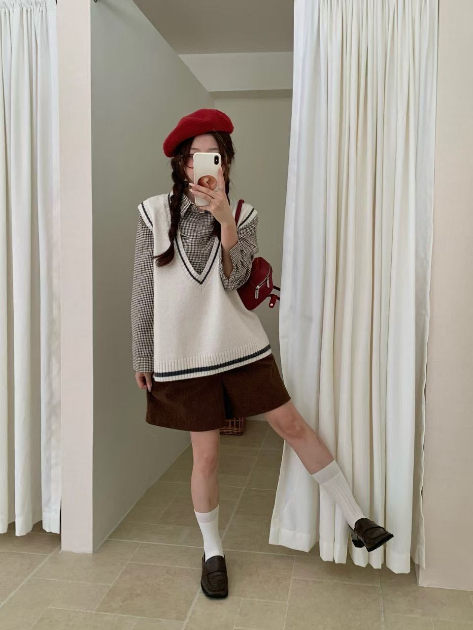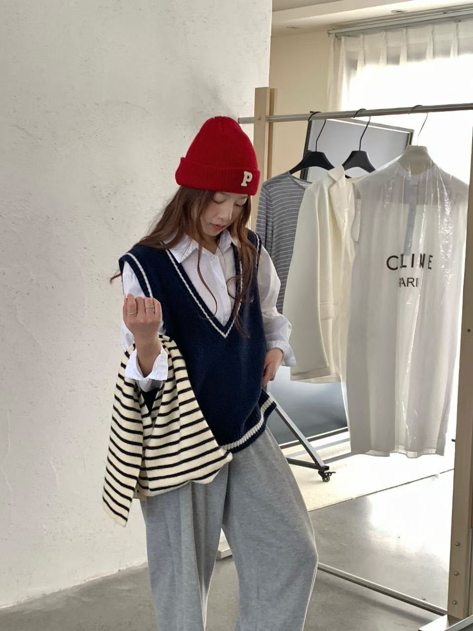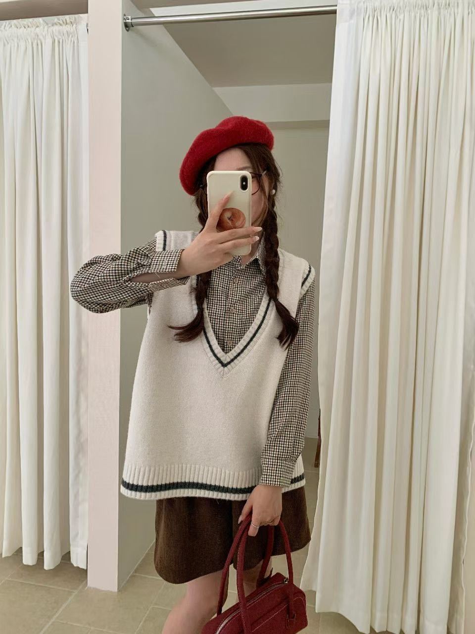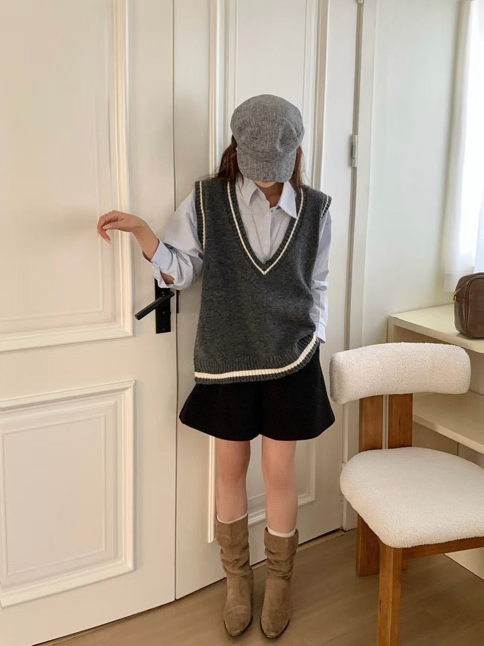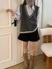 Chaleco de Punto Coreano Retro Universitario con Cuello en V y Capas para Mujer 2025 Otoño/Invierno Nuevo Top Versátil sin Mangas 1235