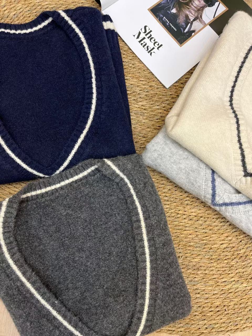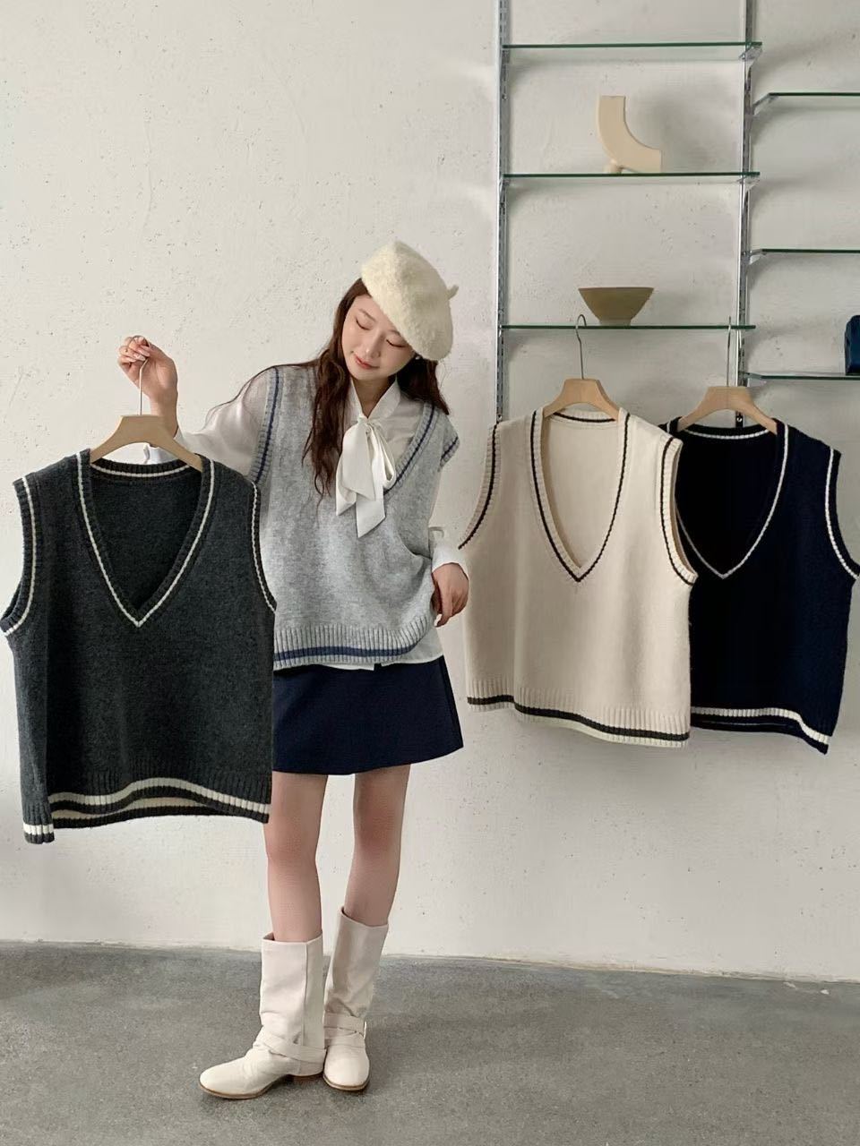 Beige Academy V-vest, Light Grey College V-Vest, Dark Grey College V-Neck Vest, Navy blue College V-neck vest