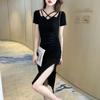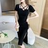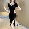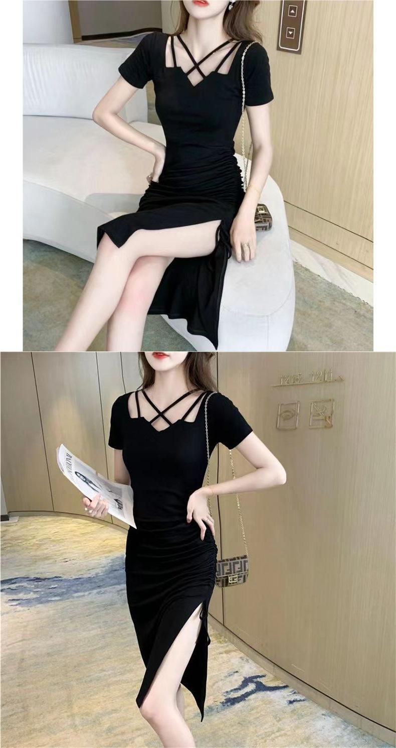 Sentido del Diseño Calado Sexy Club Nocturno Halter Cuello Abertura Bodycon Fruncido Verano Adelgazante Vestido