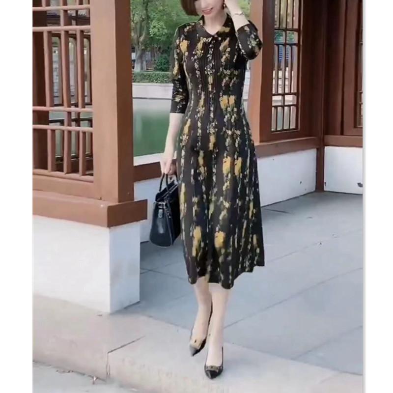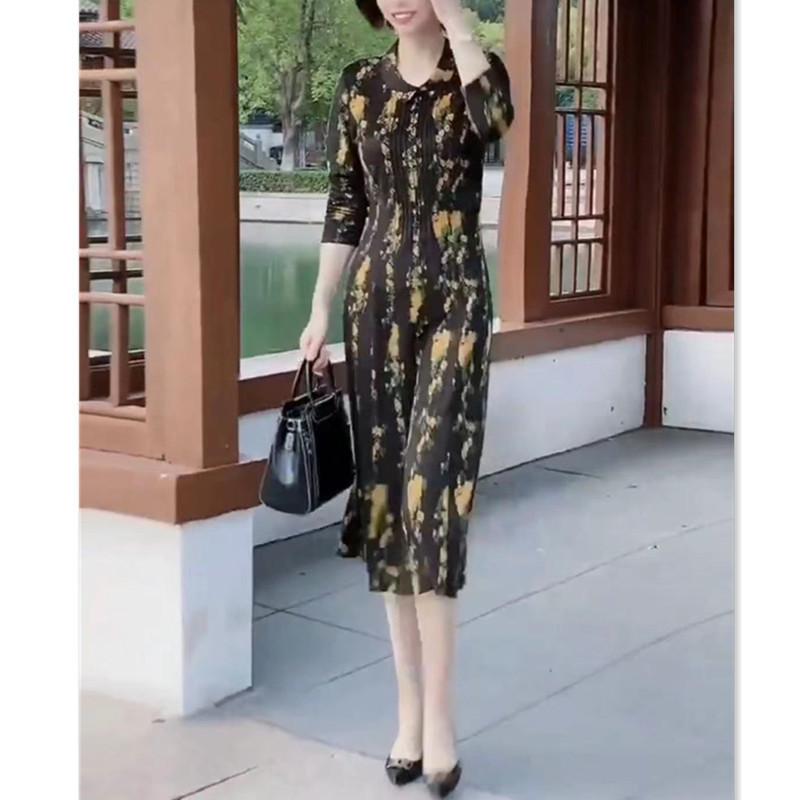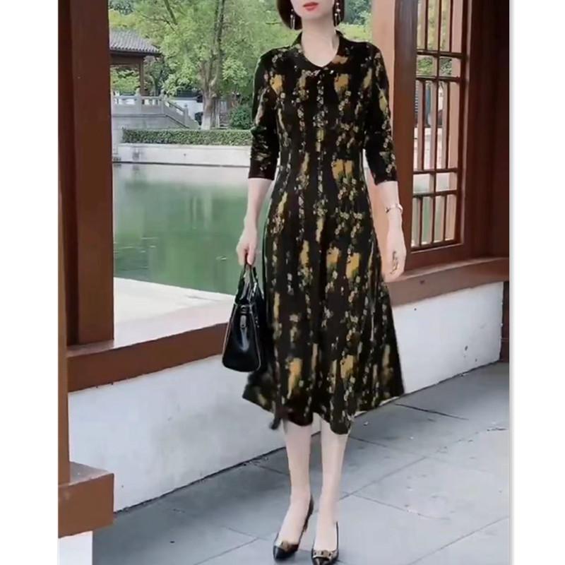 22755 Big Love Beauty Yiyuan 2023 Nuevo Vestido de Principios de Otoño Moda Atmósfera Estampado Vestido Slim Midi