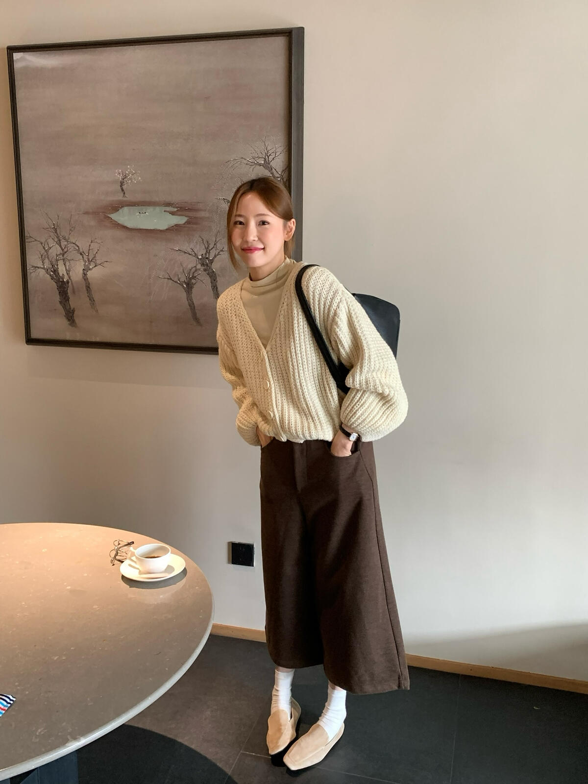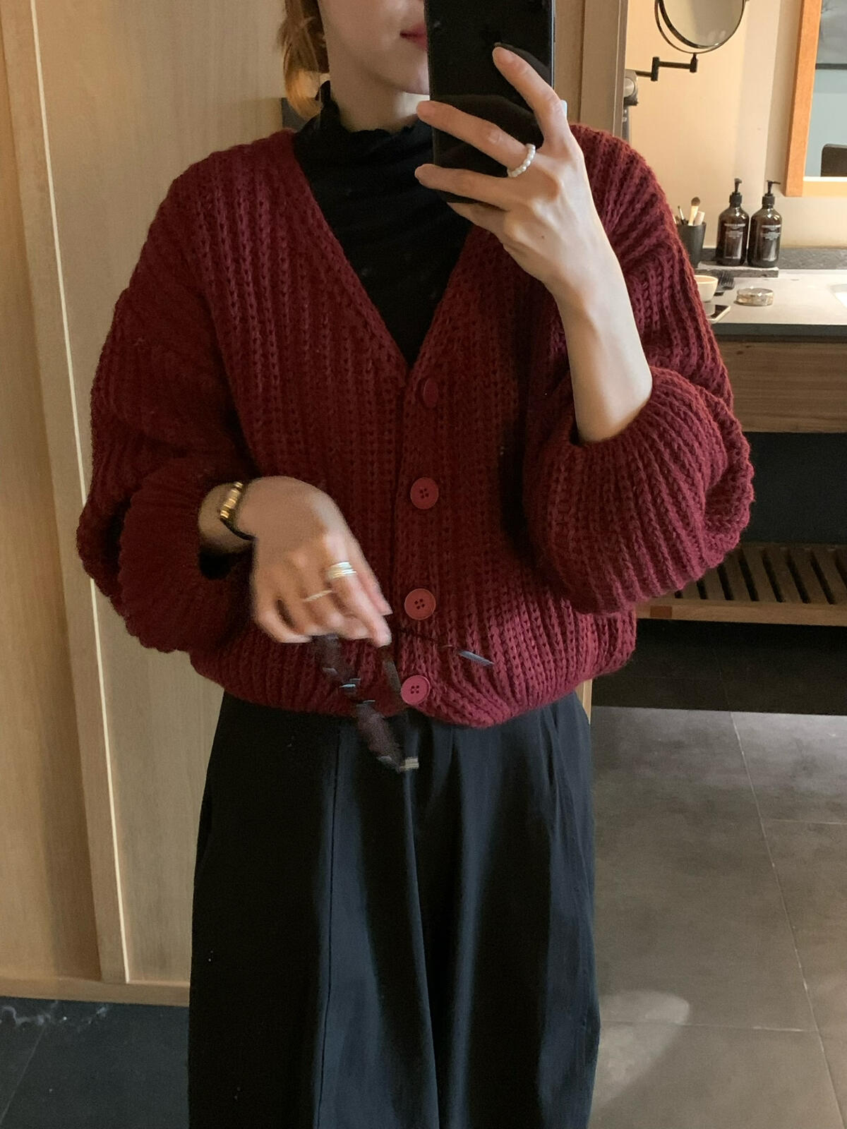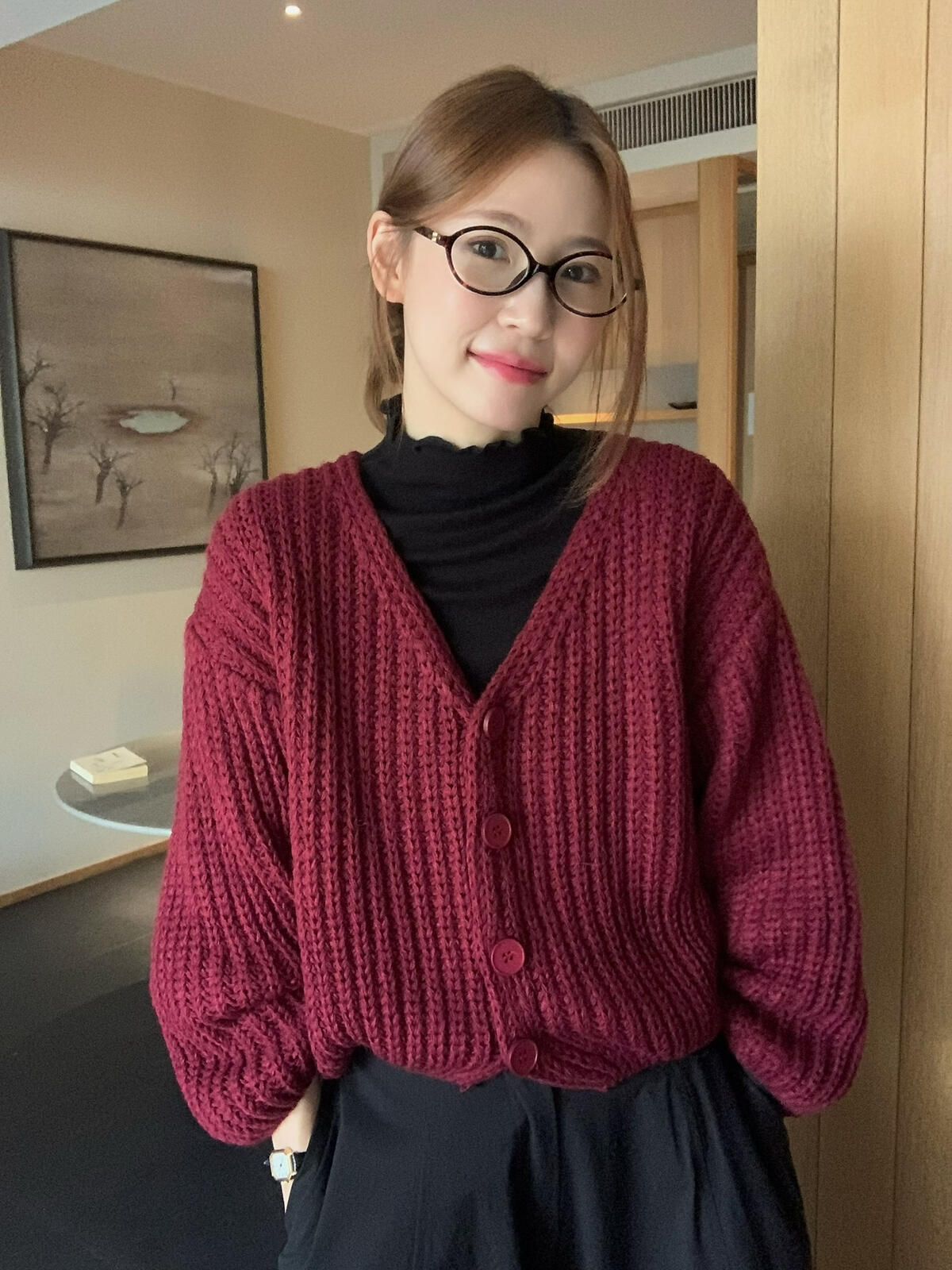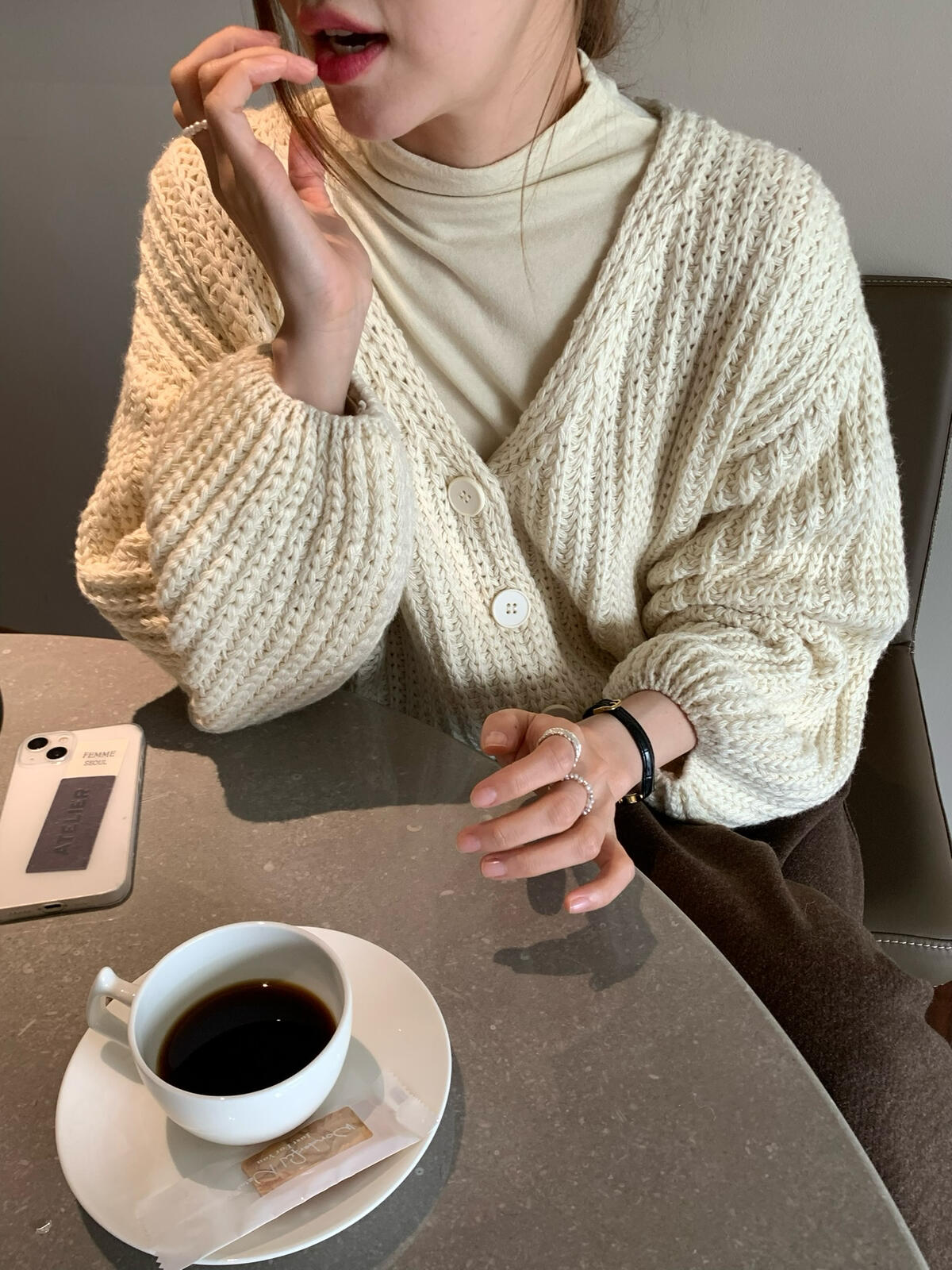 KITTIN Otoño/Invierno Clásico Retro Tejido Grueso Adelgazante Versátil Cárdigan Abrigo Cuello en V Suéter Cálido para Mujer G1866