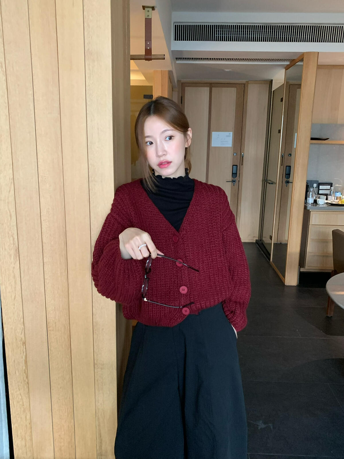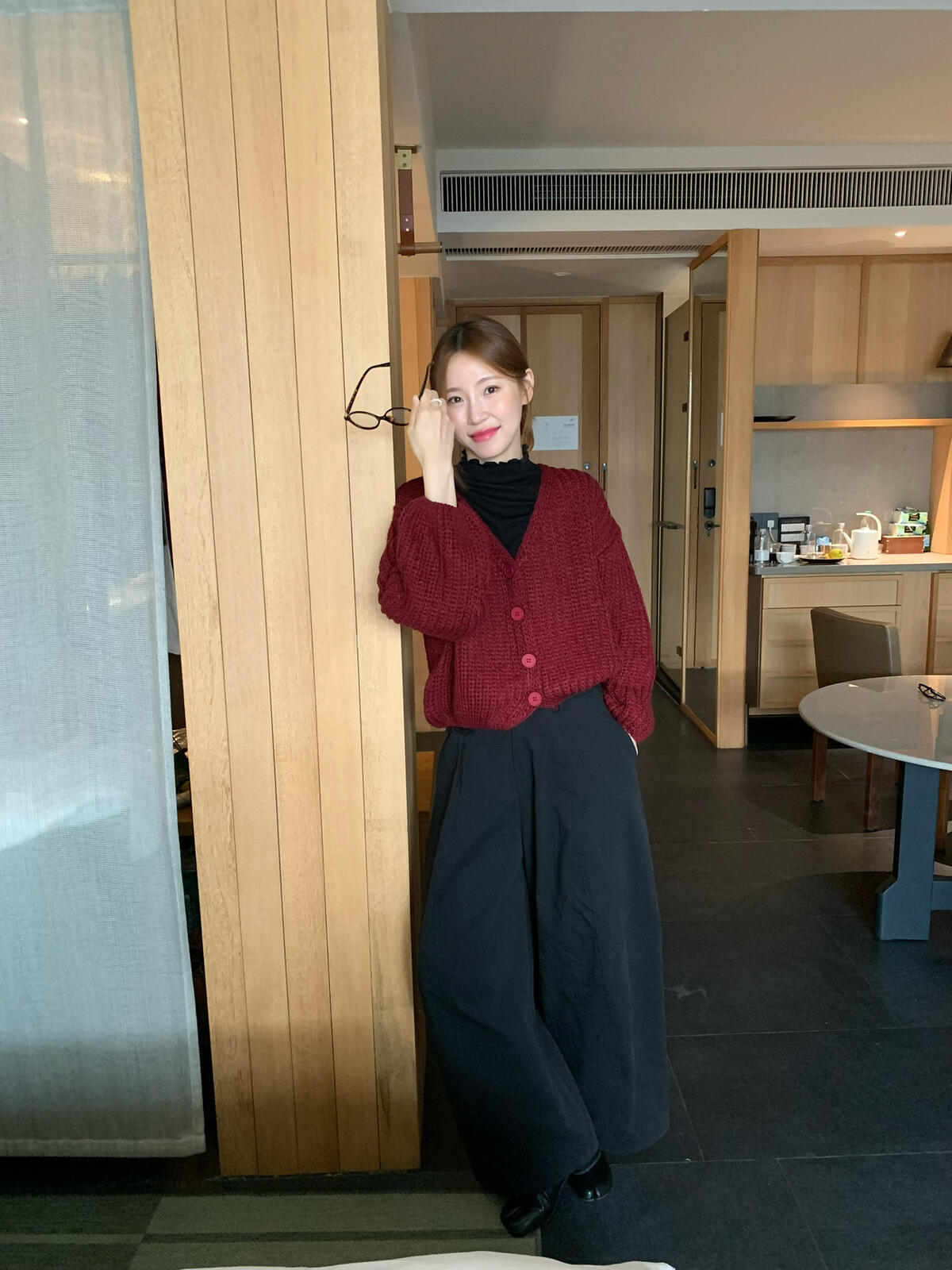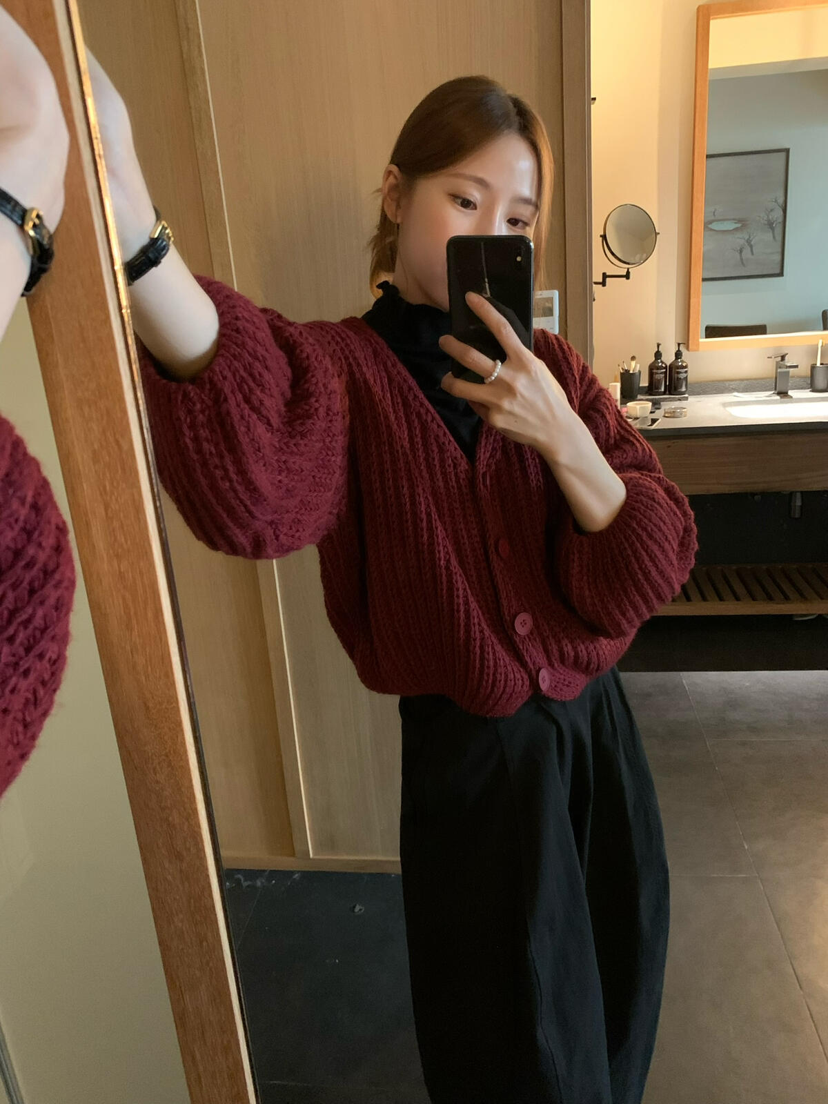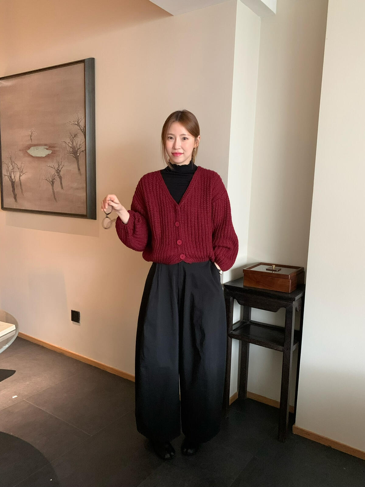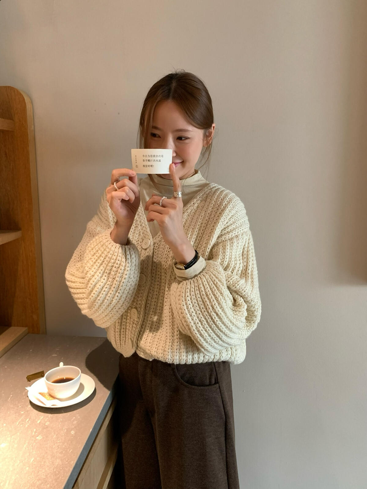 KITTIN Otoño/Invierno Clásico Retro Tejido Grueso Adelgazante Versátil Cárdigan Abrigo Cuello en V Suéter Cálido para Mujer G1866