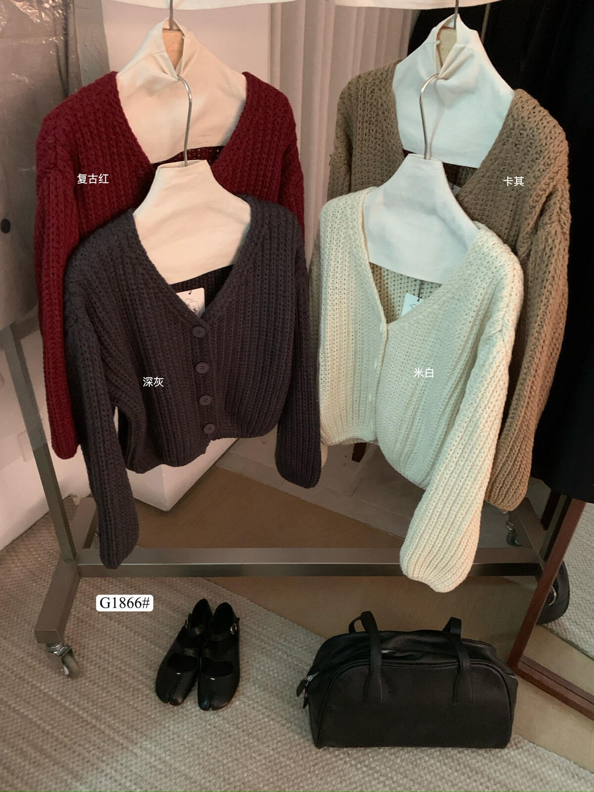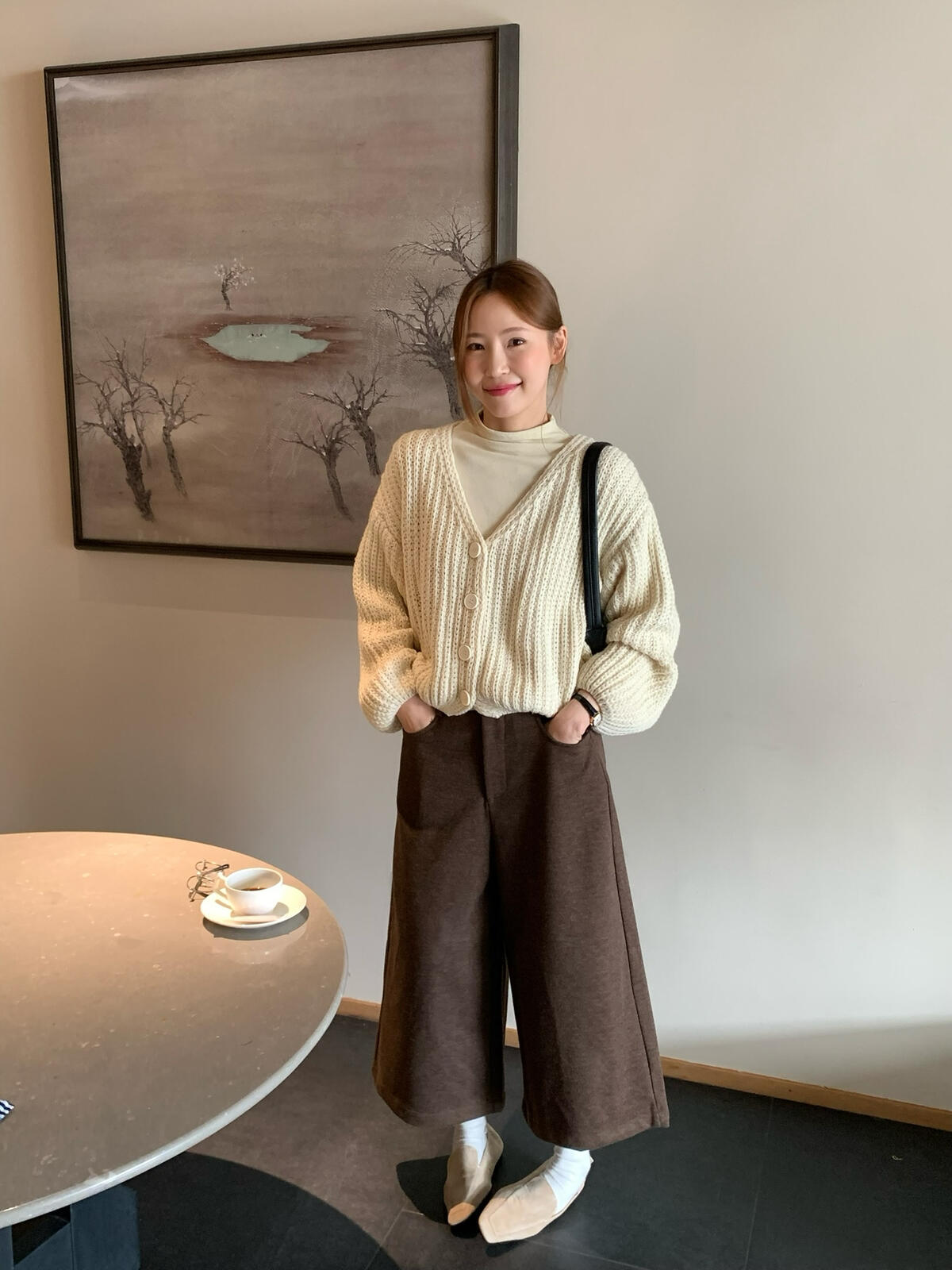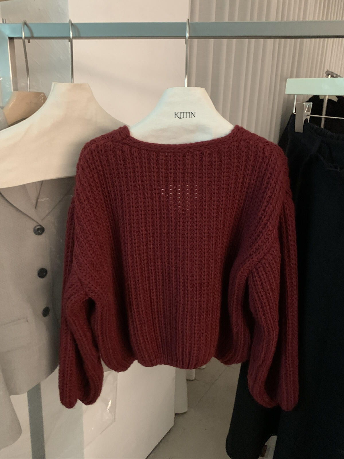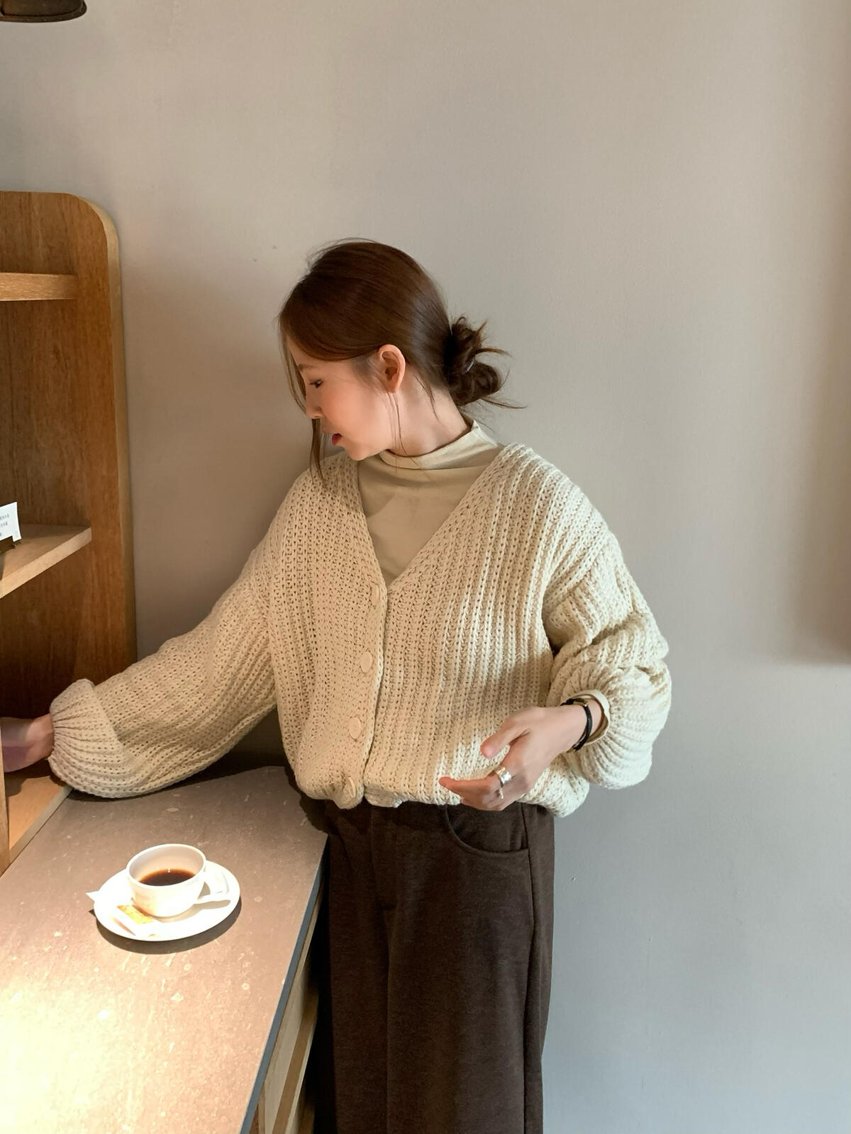 KITTIN Otoño/Invierno Clásico Retro Tejido Grueso Adelgazante Versátil Cárdigan Abrigo Cuello en V Suéter Cálido para Mujer G1866