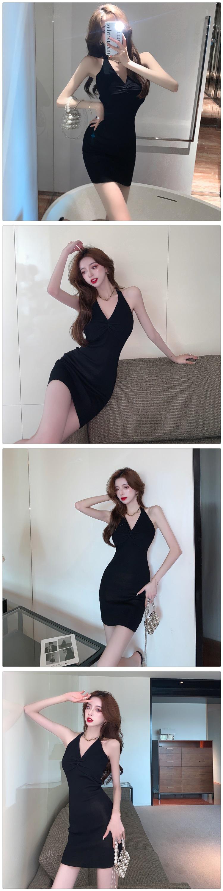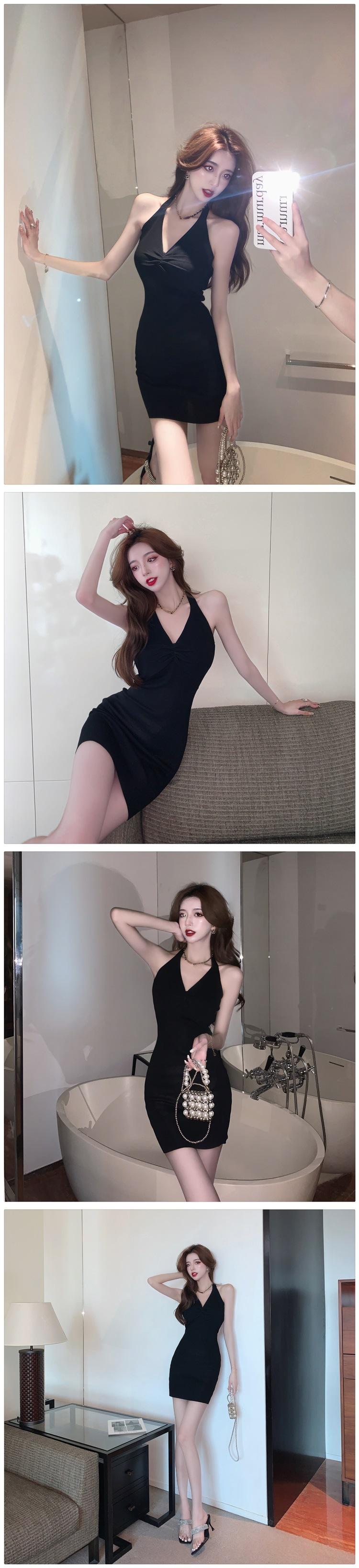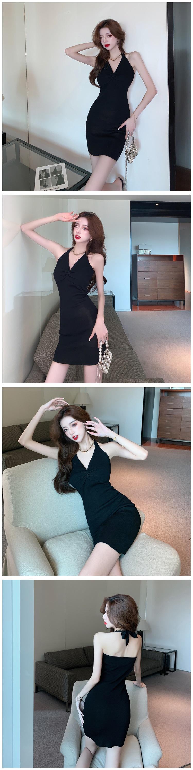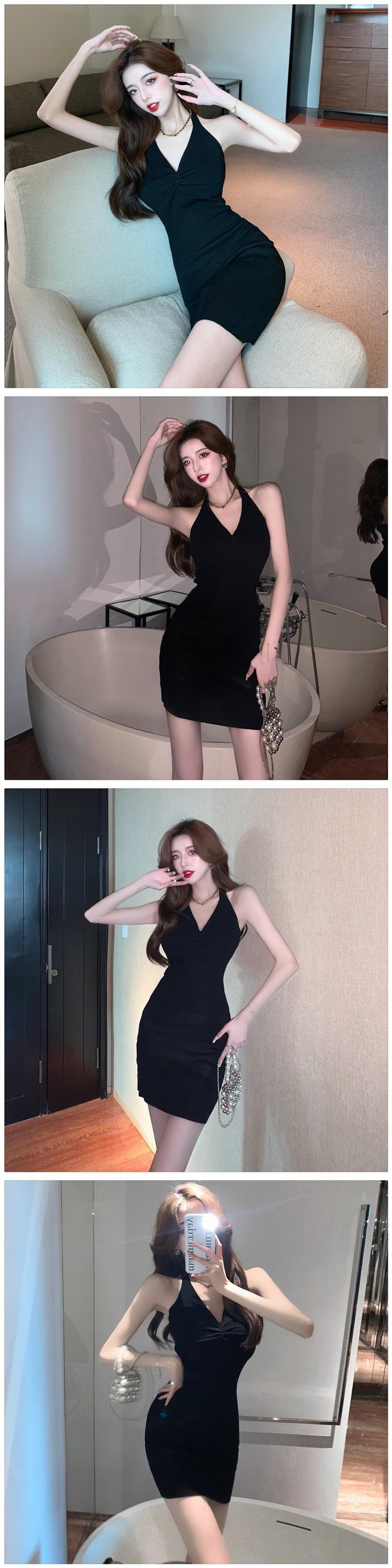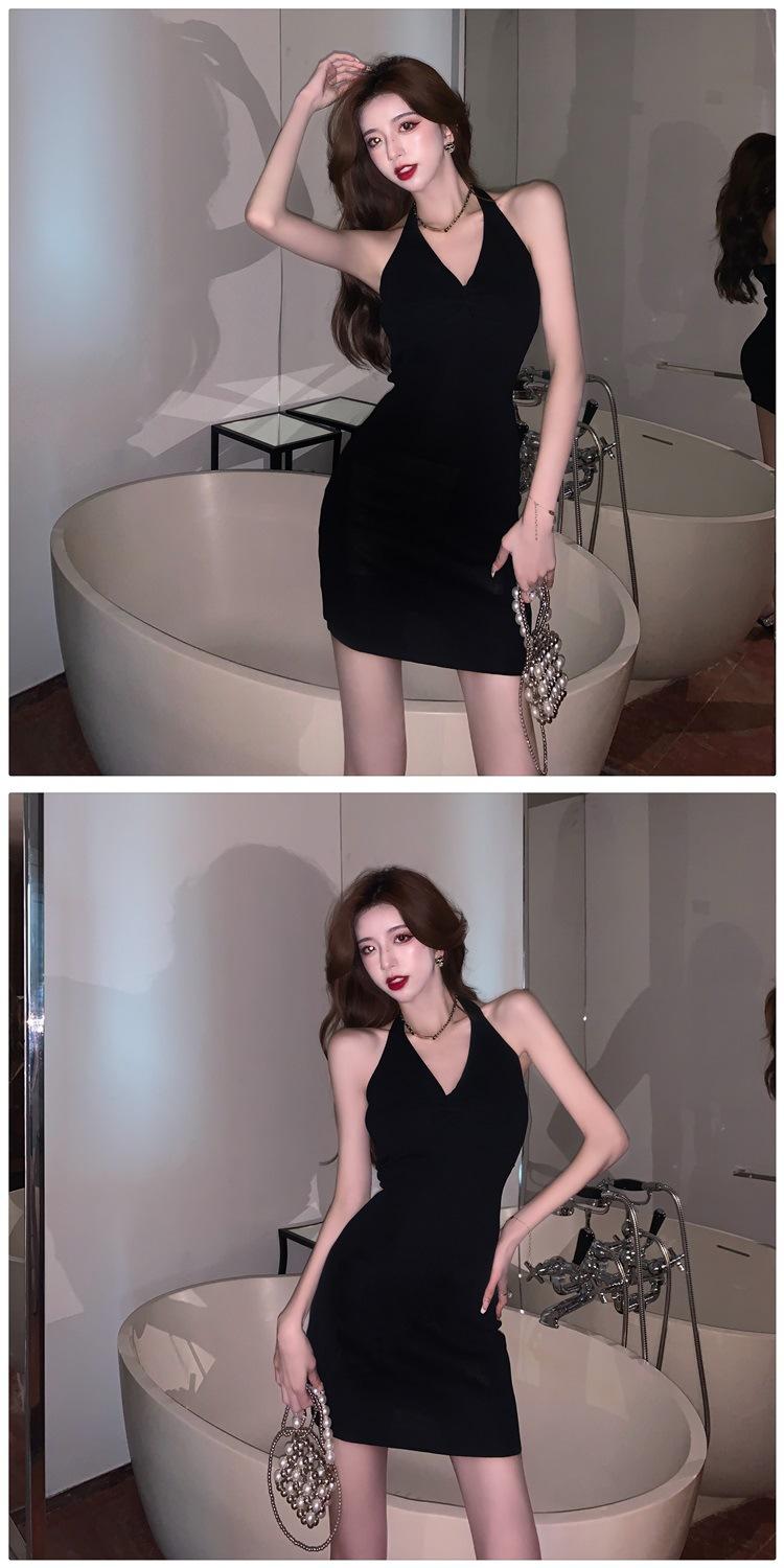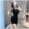 Vestido Spicy Girl sin Mangas con Tirante Halter para Mujer Otoño 2025 Nuevo Adelgazante Negro Bodycon Minifalda