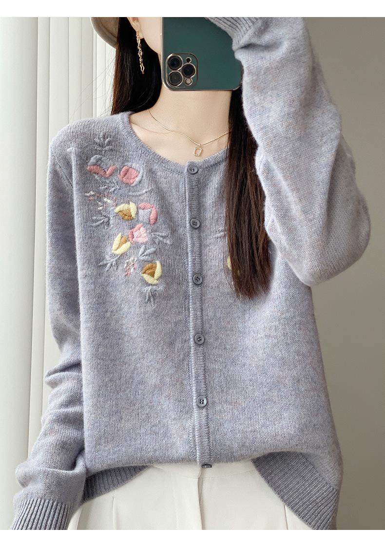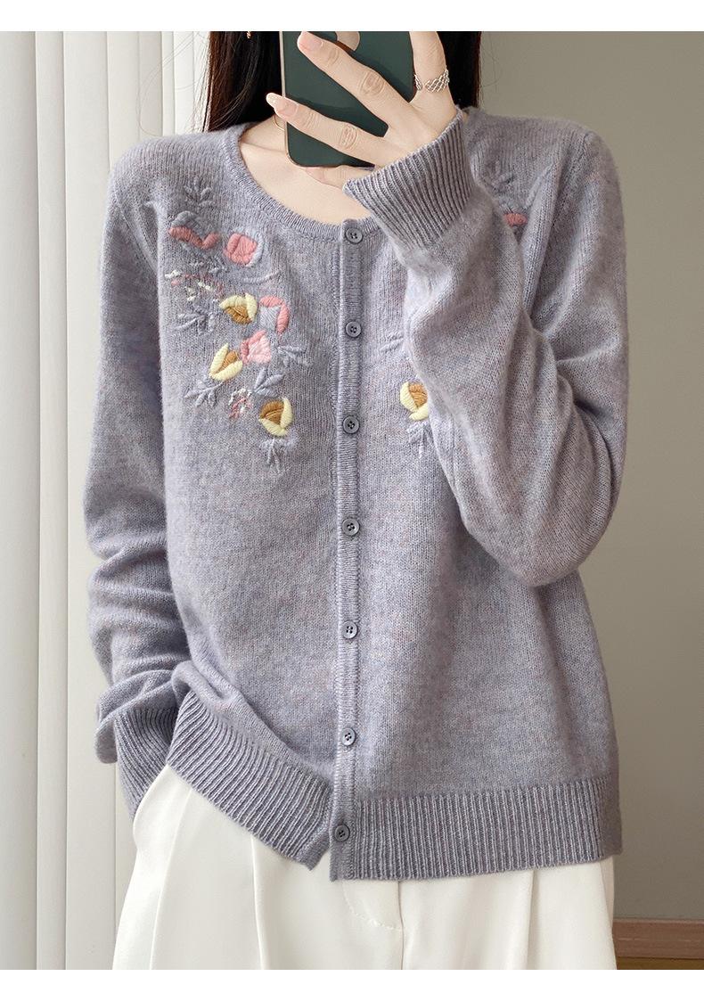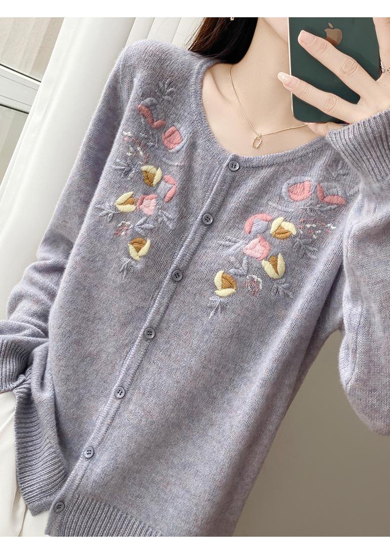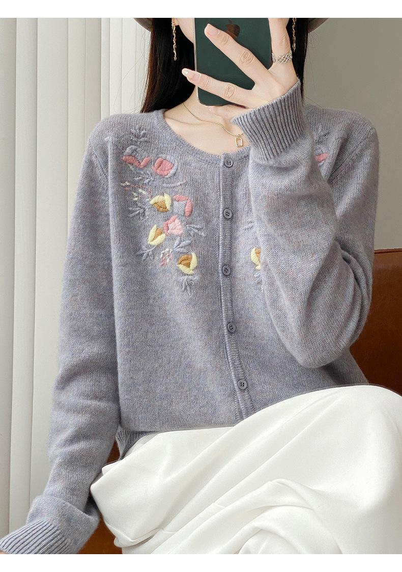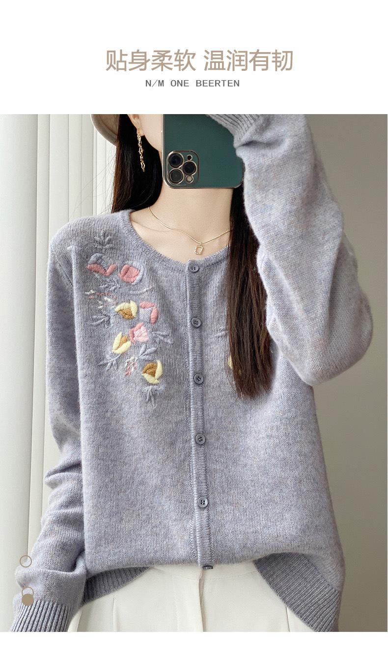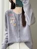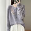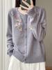 Cárdigan Nuevo para Mujer Pequeño Cuello Redondo Cachemira Temperamento 10 Otoño/Invierno Bordado Lana Tejido Cárdigan 2025 Europeo y Americano