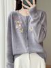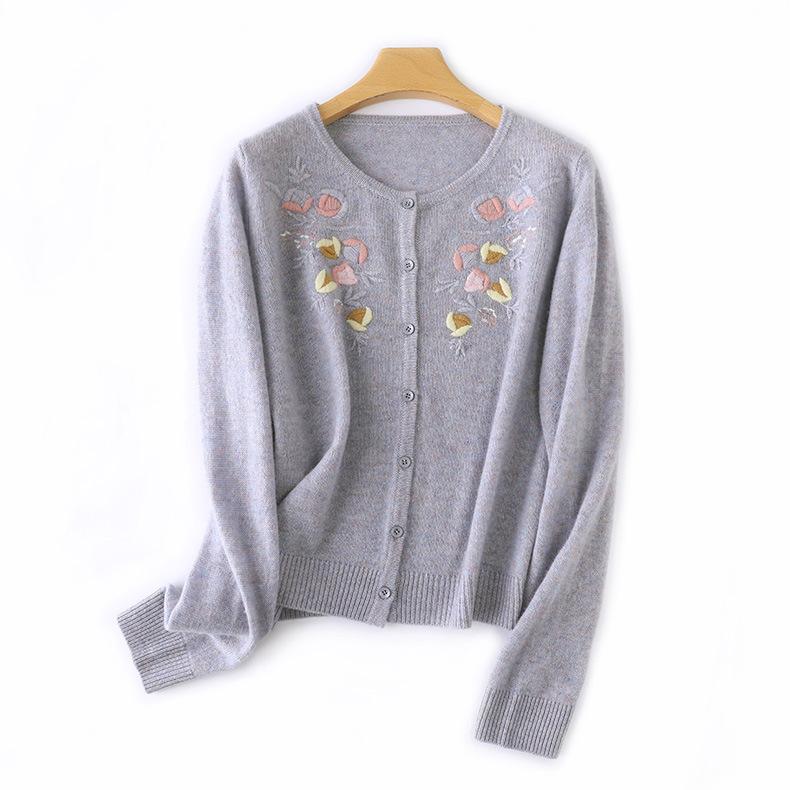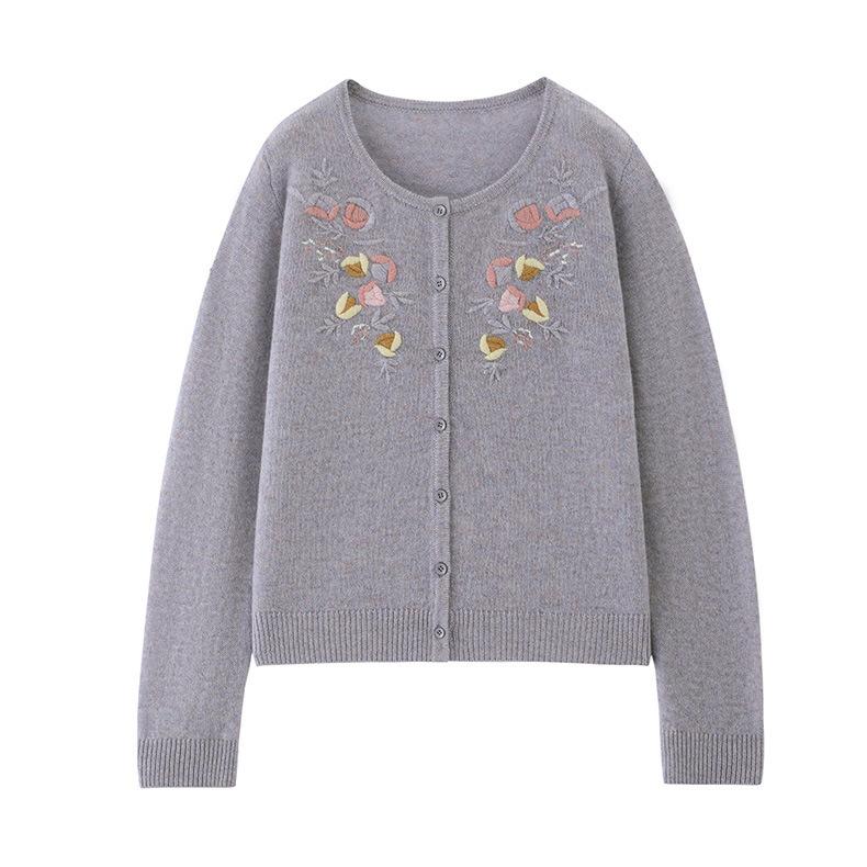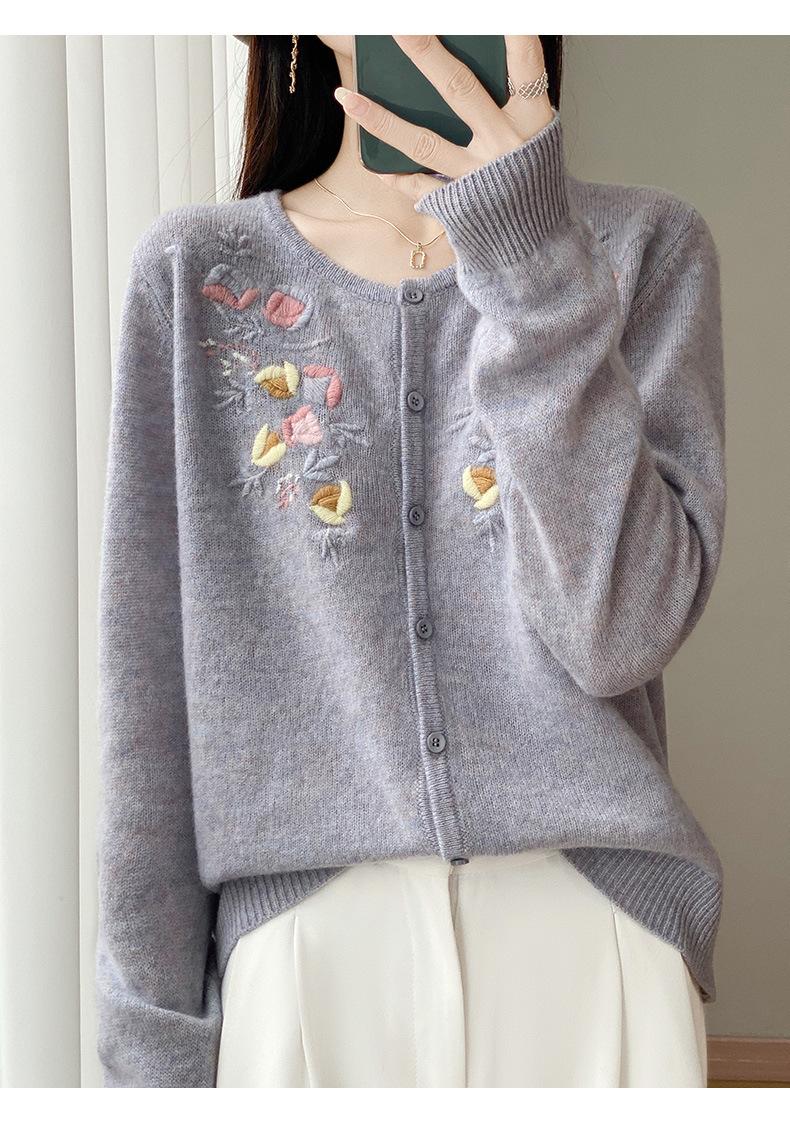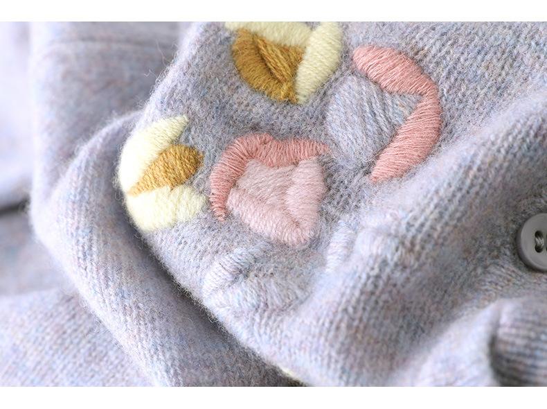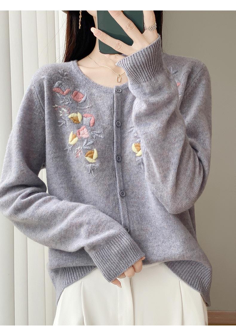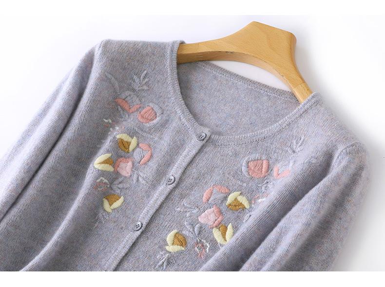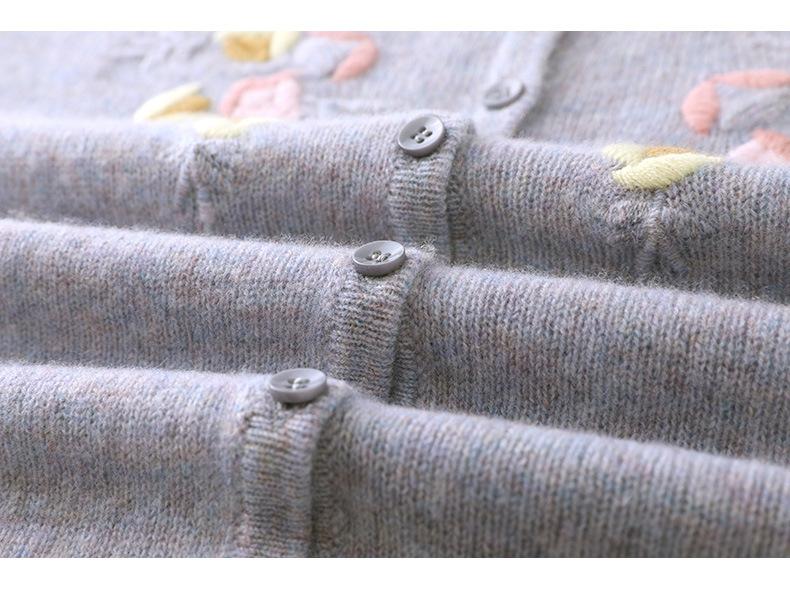 Cárdigan Nuevo para Mujer Pequeño Cuello Redondo Cachemira Temperamento 10 Otoño/Invierno Bordado Lana Tejido Cárdigan 2025 Europeo y Americano