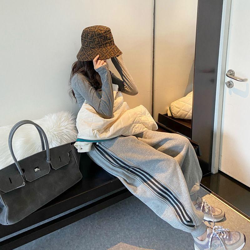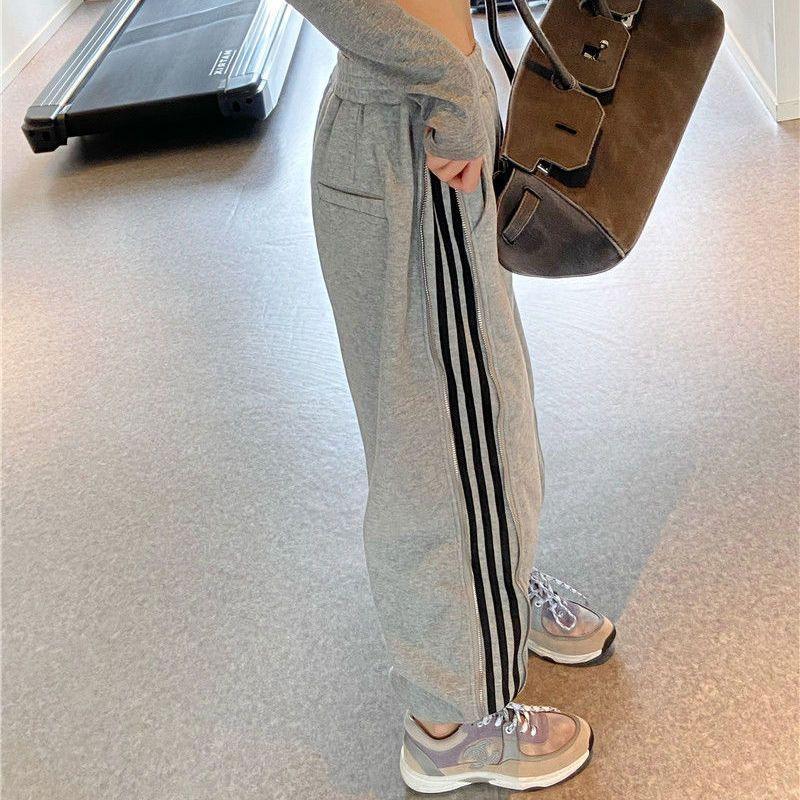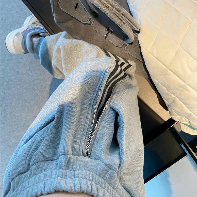 Pantalones deportivos casuales de moda Shanli Dadi de pierna ancha para mujer, otoño e invierno nuevos joggers grises versátiles holgados adelgazantes con forro polar