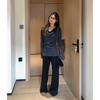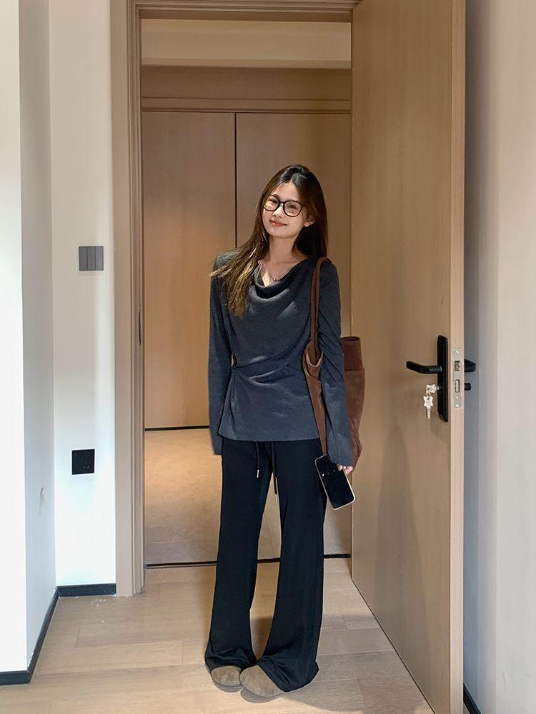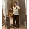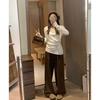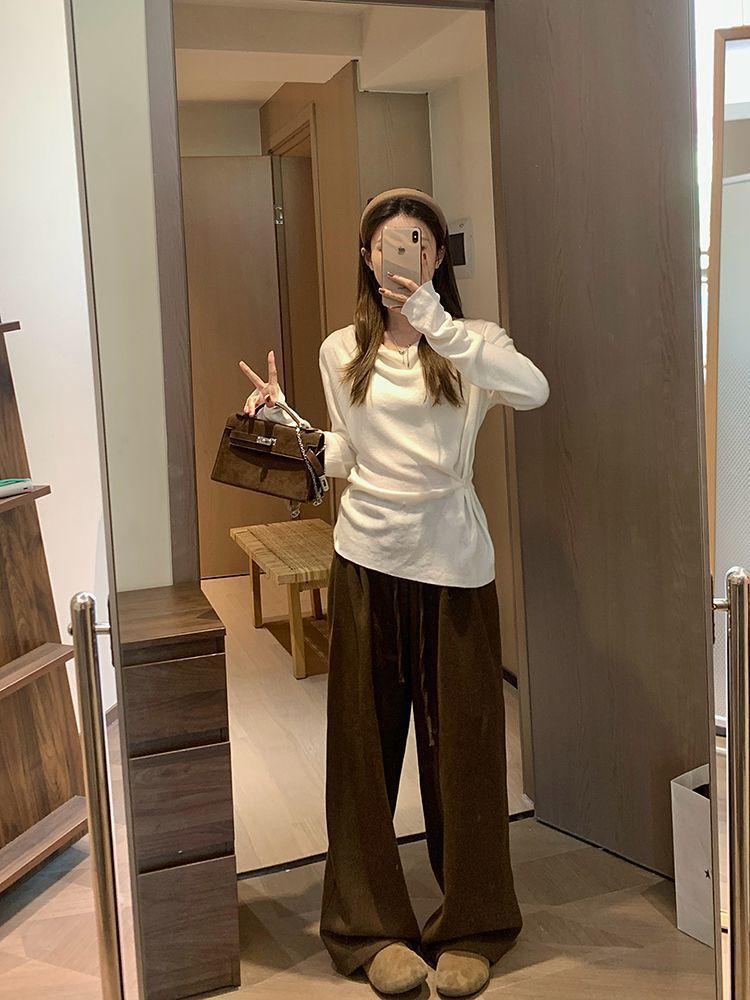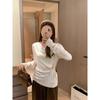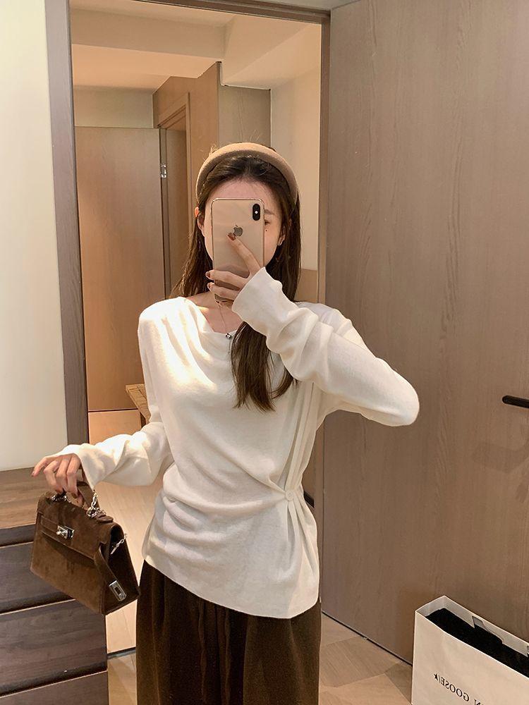 Suéter de Punto Top de Otoño Ropa de Mujer 2025 Beige Jersey Manga Larga Botón Lateral Adelgazante Camisa Base Un Hombro