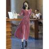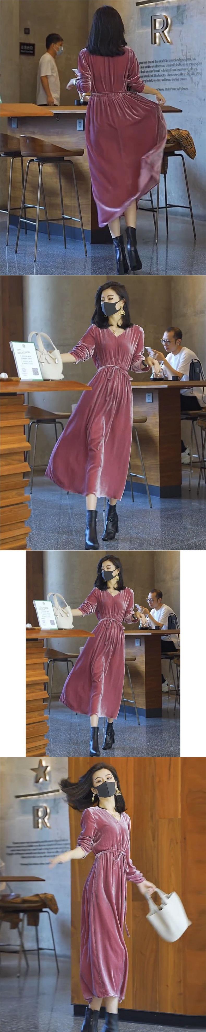 Otoño 2025 nuevo vestido suelto de terciopelo dorado estilo largo corte ajustado temperamento manga larga talla grande ropa de otoño vestido largo de mujer