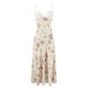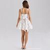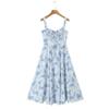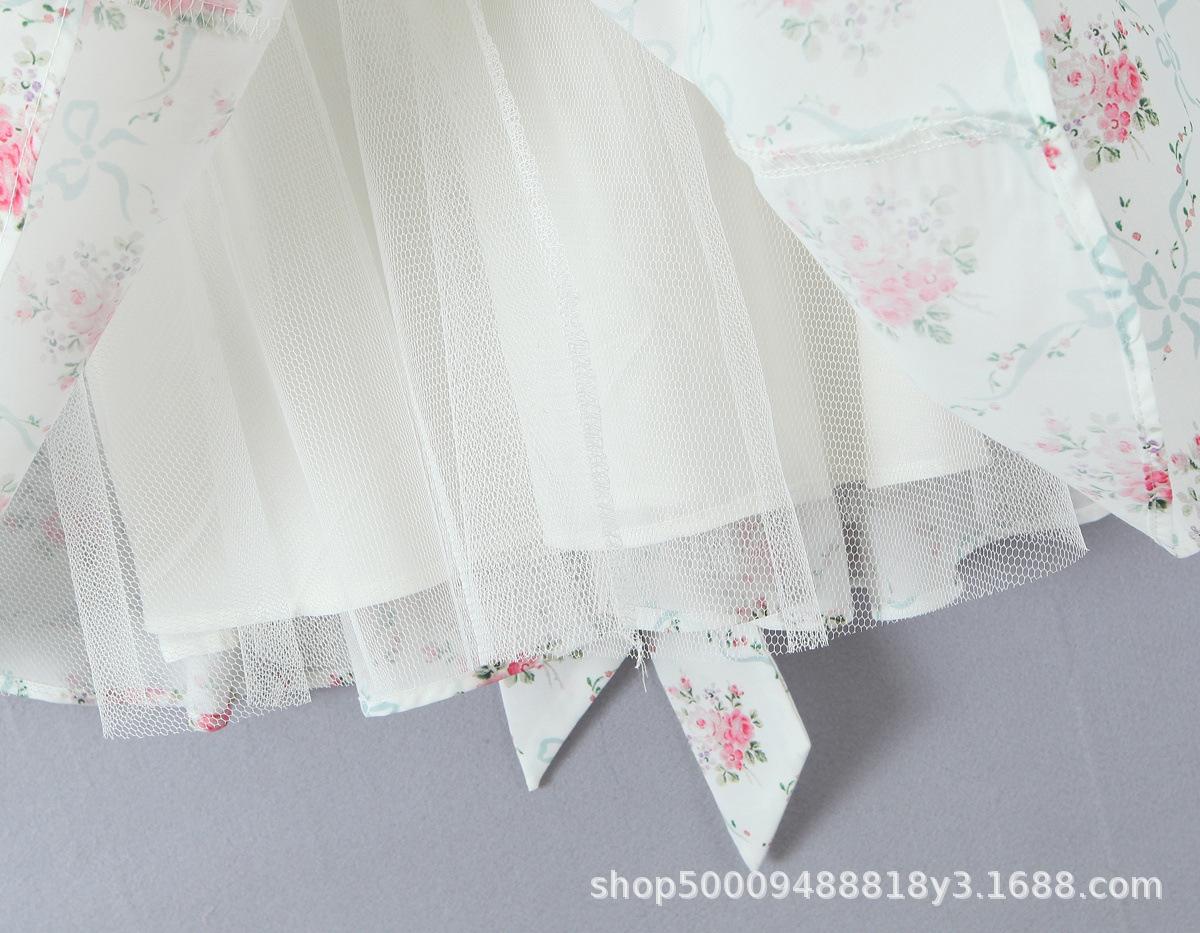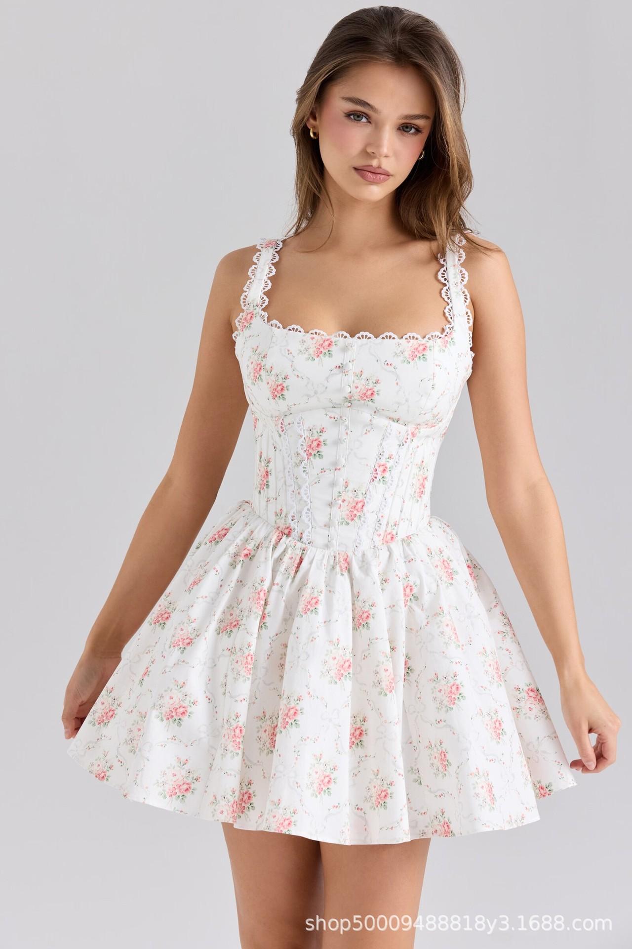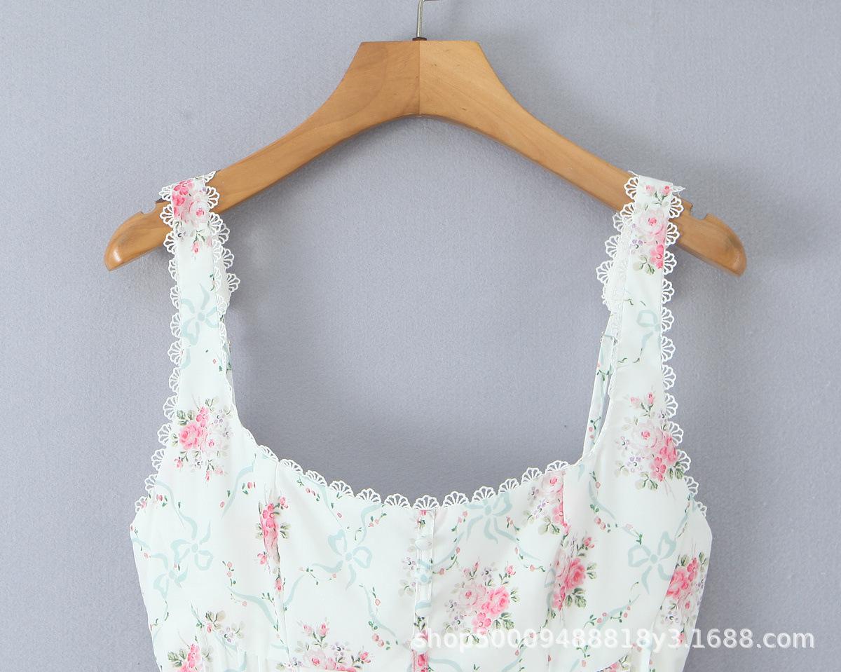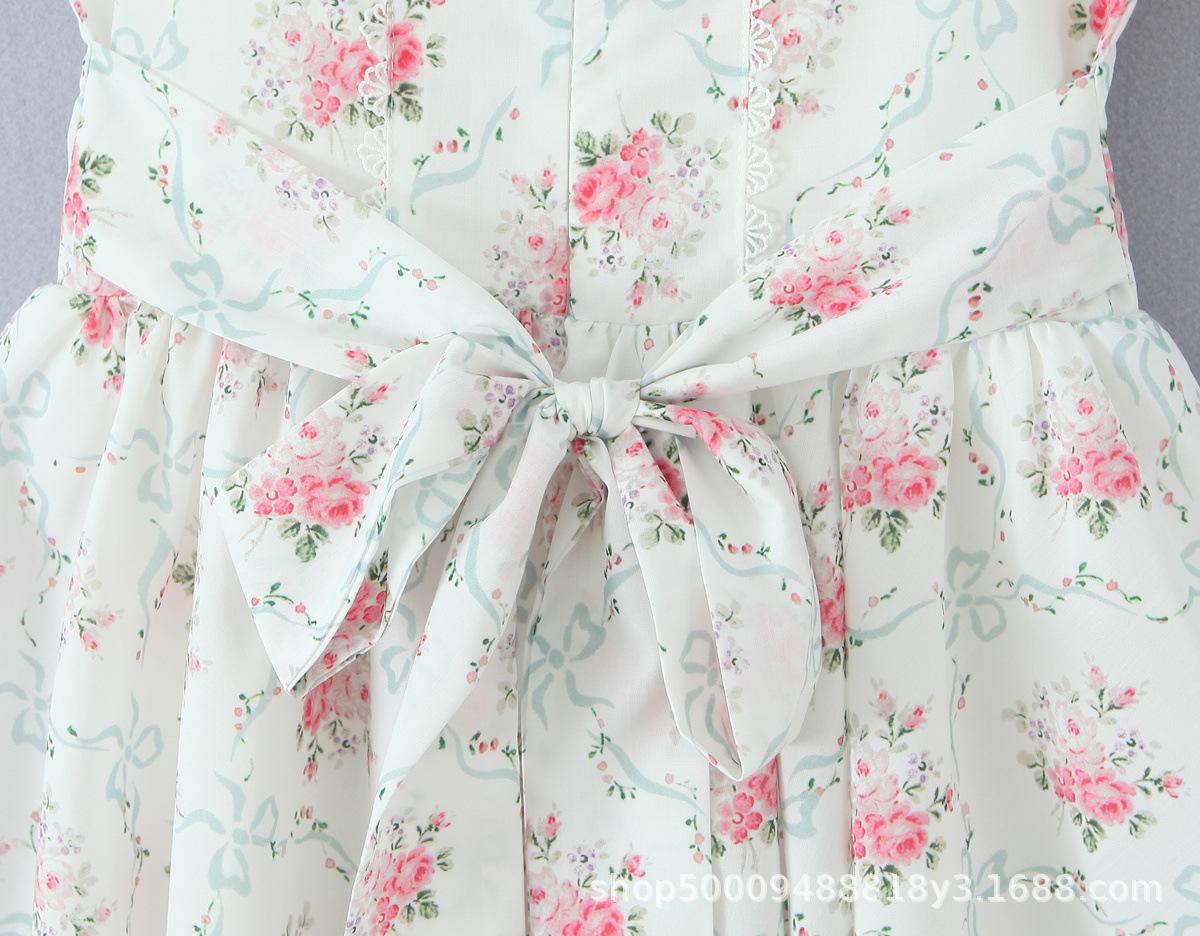 Casa Mismo Estilo Francés Estampado Rosa Dulce Decorado con Lazo Falda con Tirantes de Encaje Plisado en la Cintura Vestido de Mujer