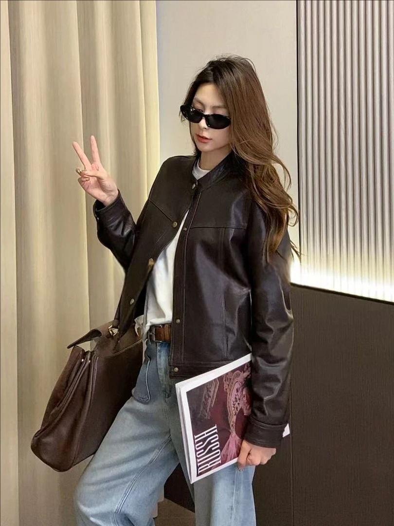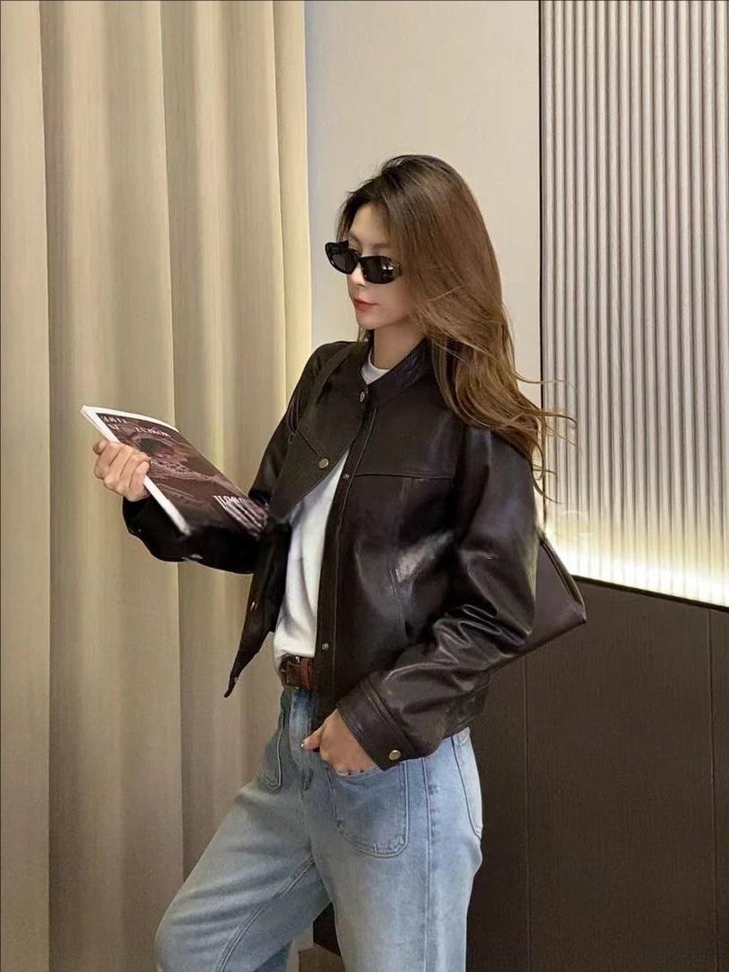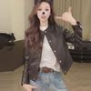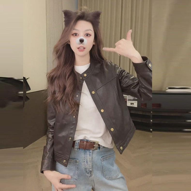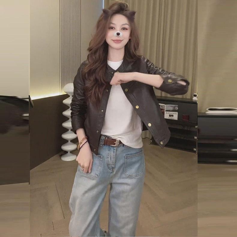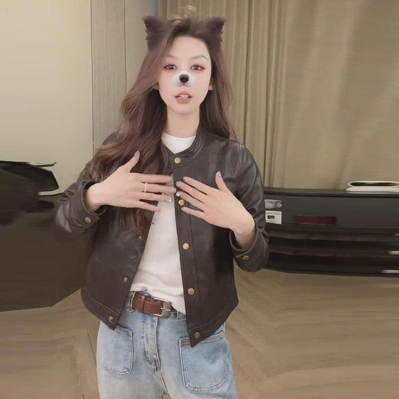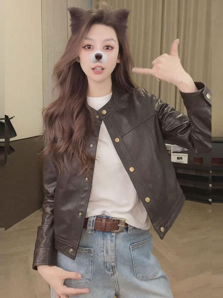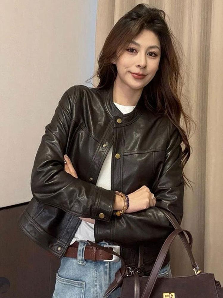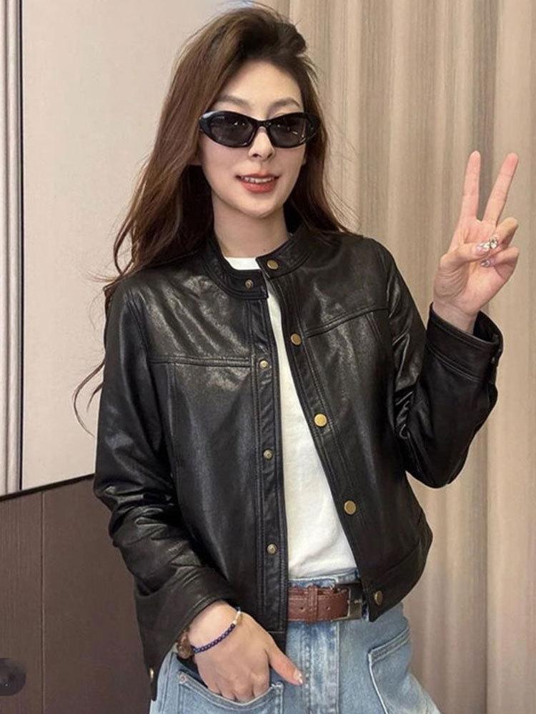 2025 Otoño/Invierno Nuevo Temperamento Chaqueta Abrigo de Cuero PU para Mujer Manga Larga Temperamento Apuesto Chaqueta Corta Versátil A7057