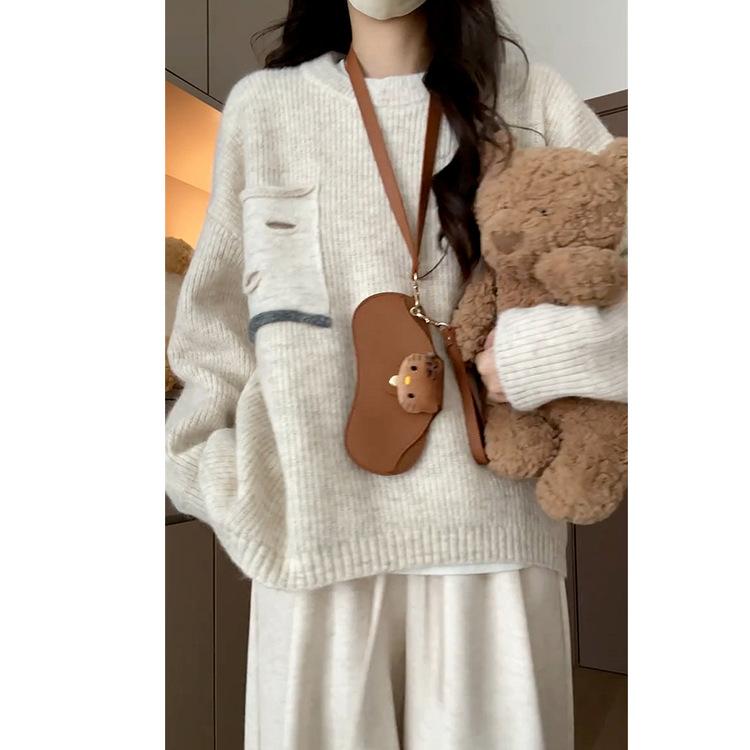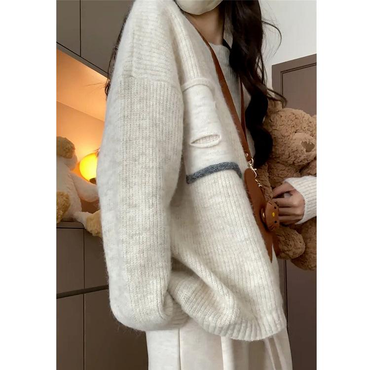 2025 Nuevo Suéter Holgado Estilo Perezoso Mujer Otoño Invierno Jersey Top de Punto Capa Interior Camiseta Base Top de Alta Gama