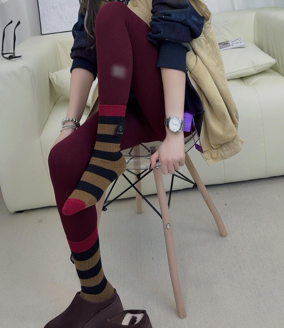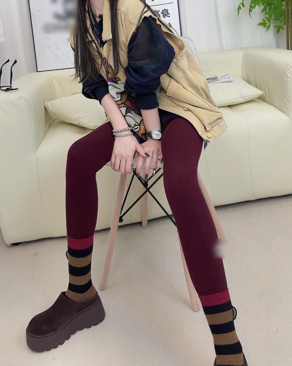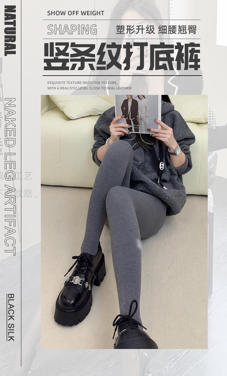 Leggings de rayas verticales para otoño e invierno, mallas gruesas y forradas con vellón, control de abdomen de cintura alta, pantimedias adelgazantes para mujer