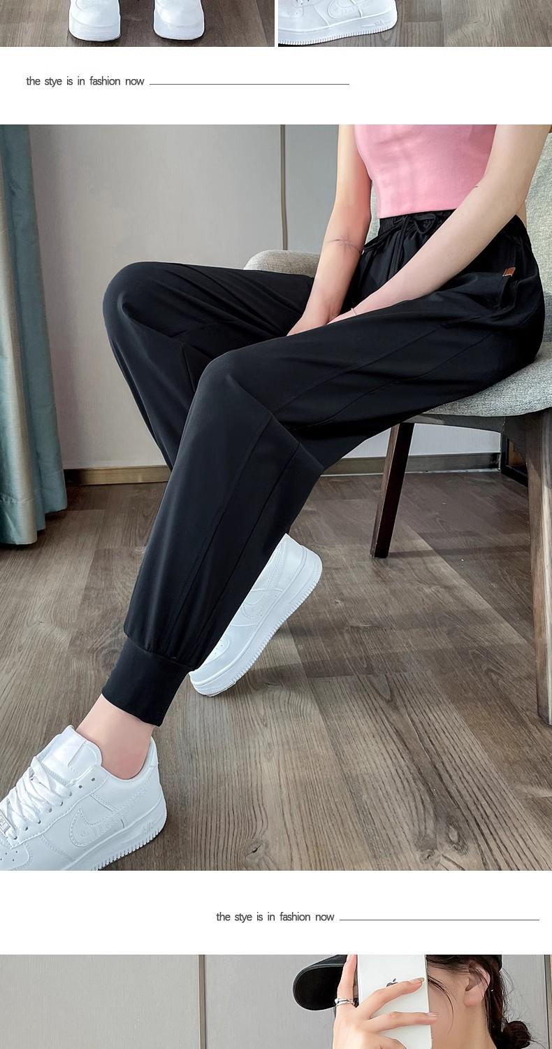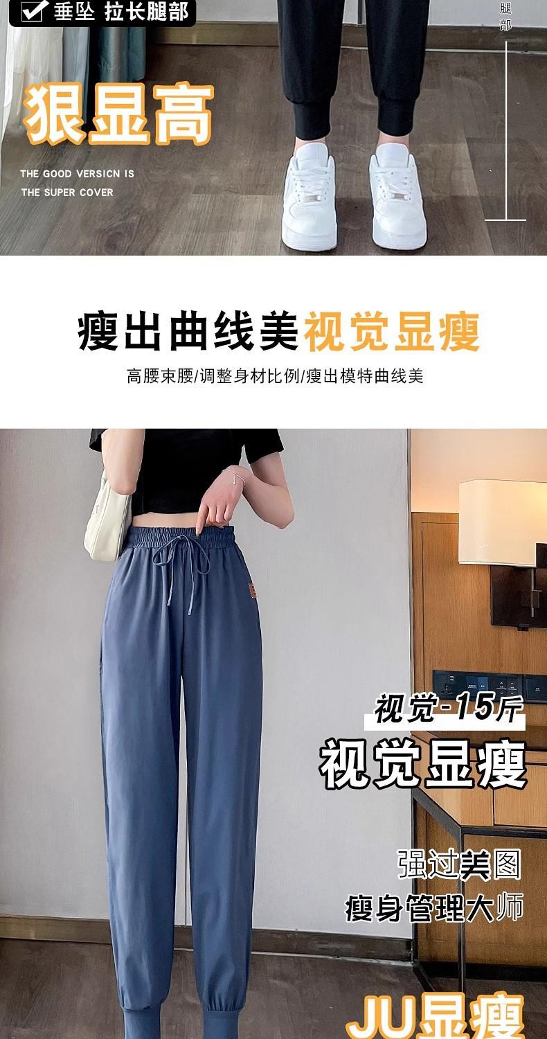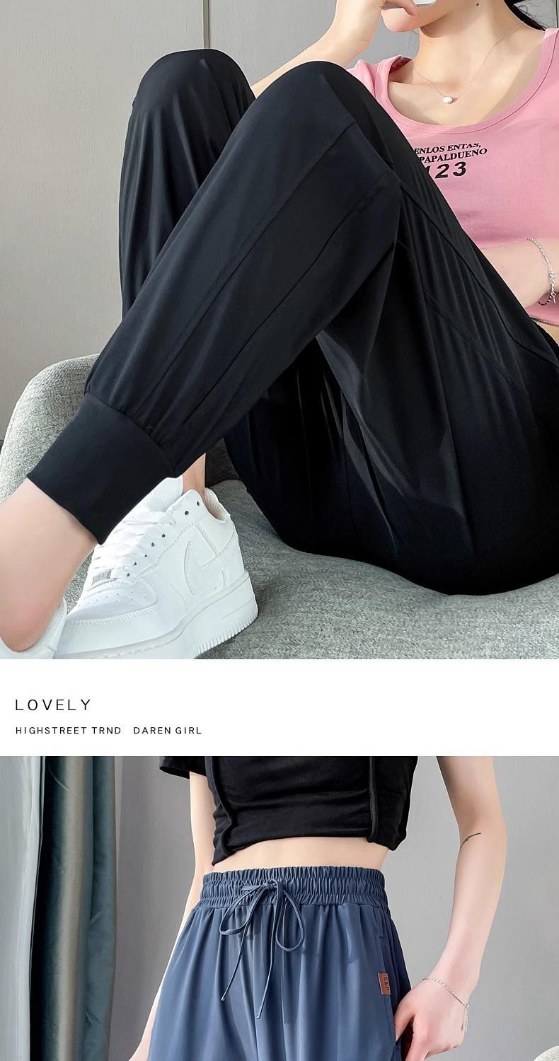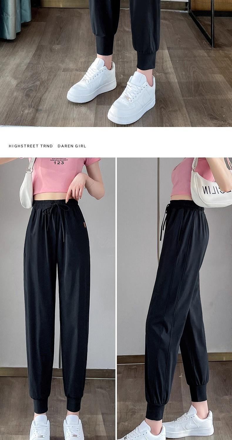 Pantalones deportivos de secado rápido para mujer verano delgados sueltos con puño 2024 nuevos nueve puntos cintura alta harem casual pantalones de seda helada