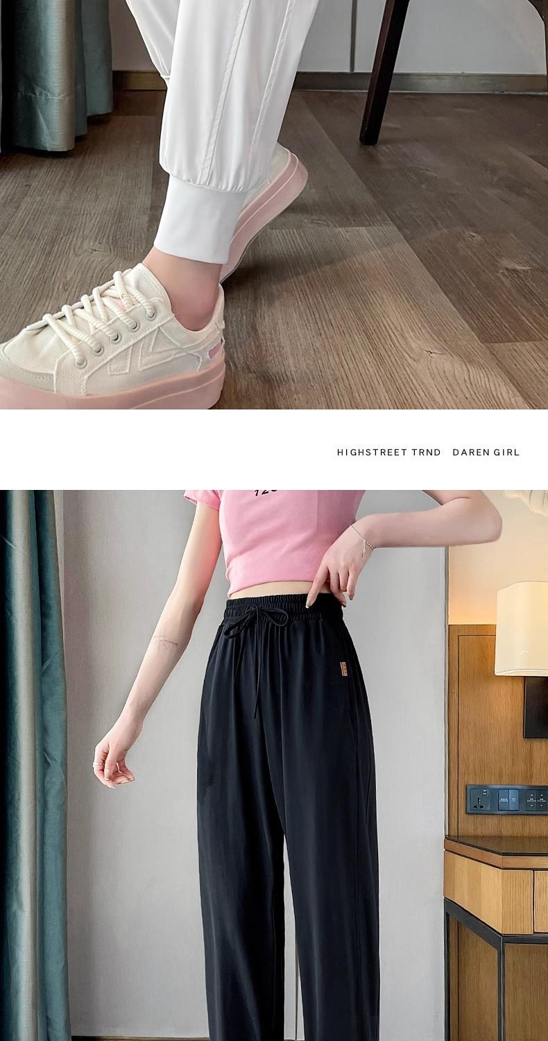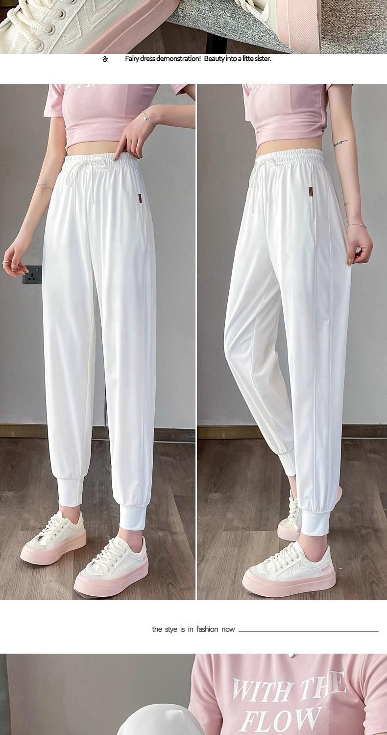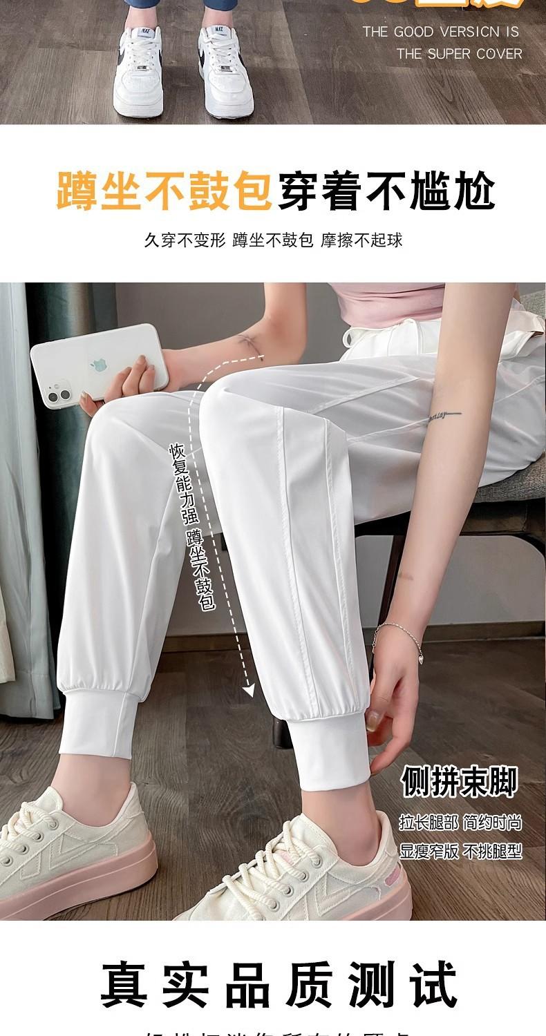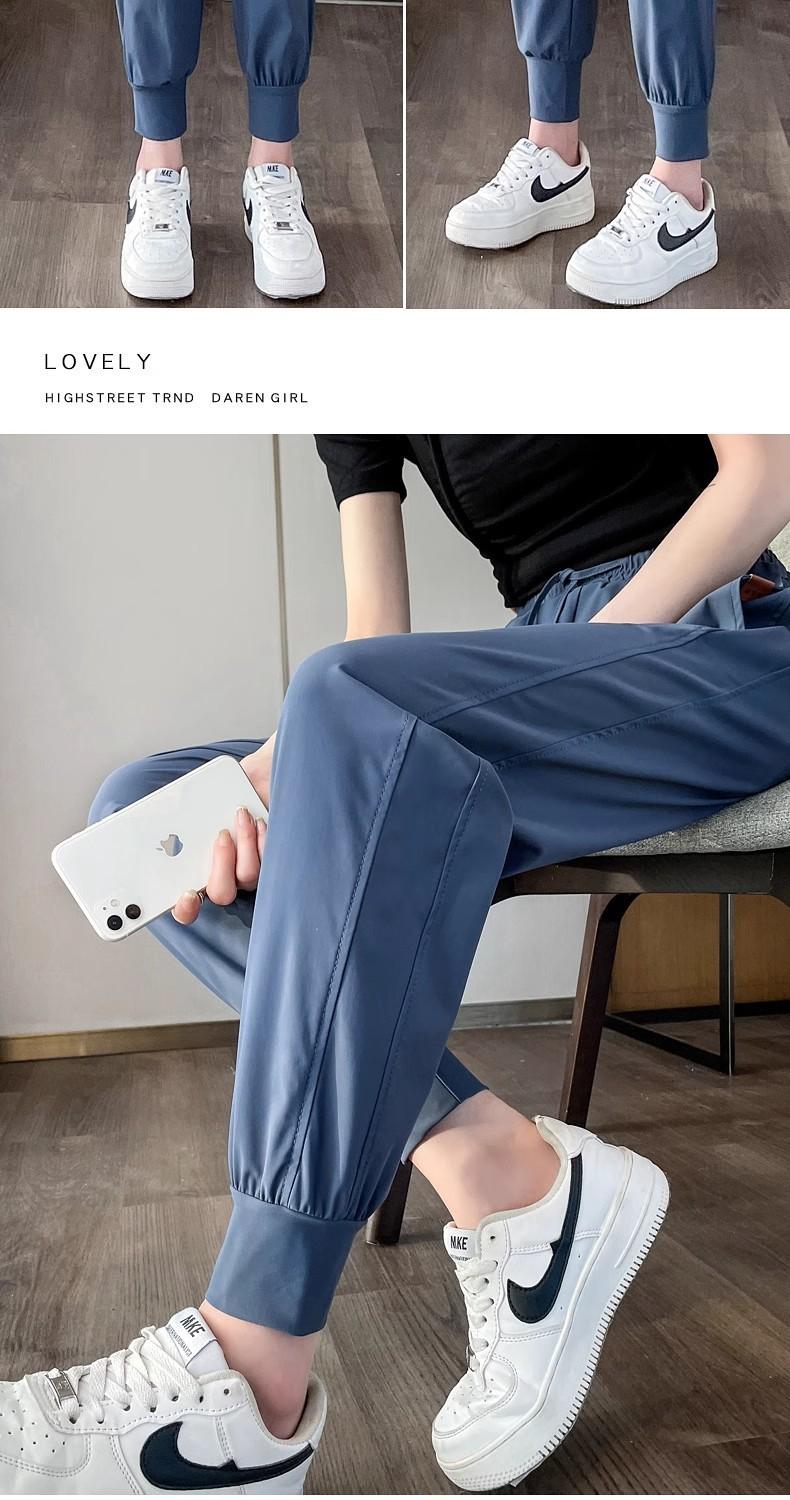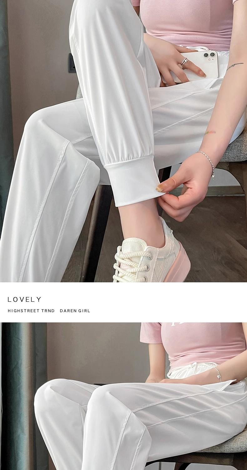 Pantalones deportivos de secado rápido para mujer verano delgados sueltos con puño 2024 nuevos nueve puntos cintura alta harem casual pantalones de seda helada