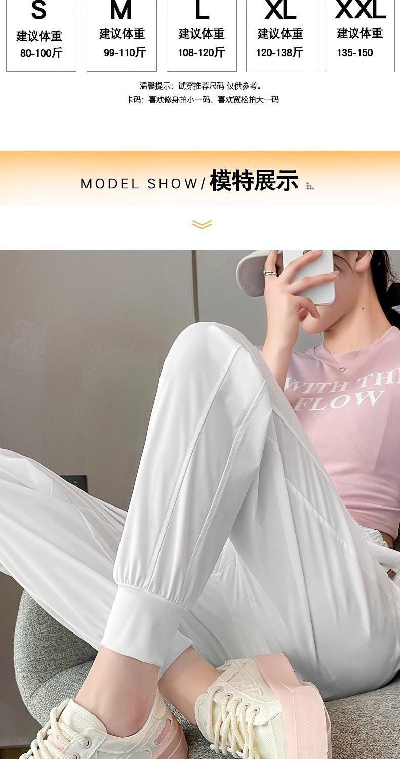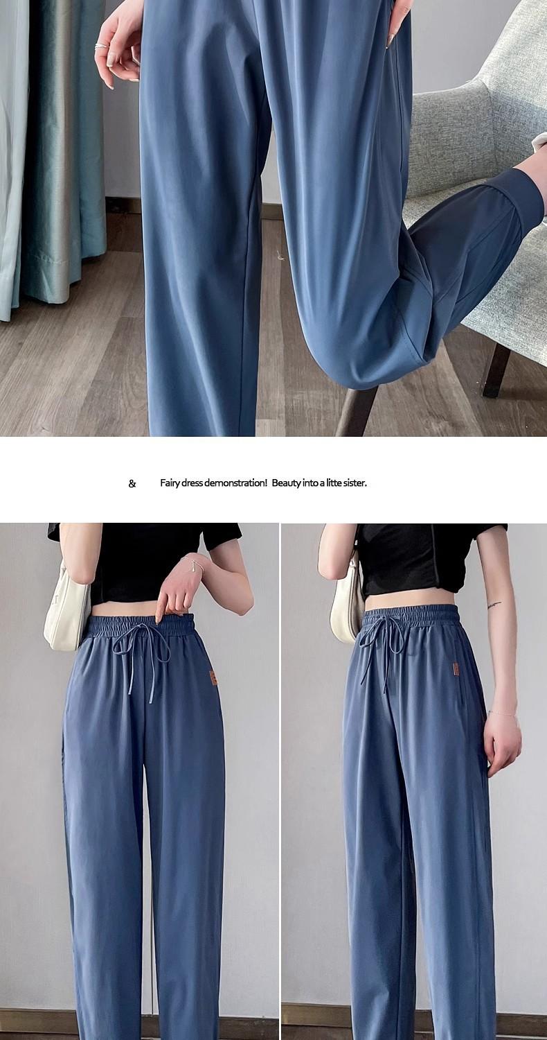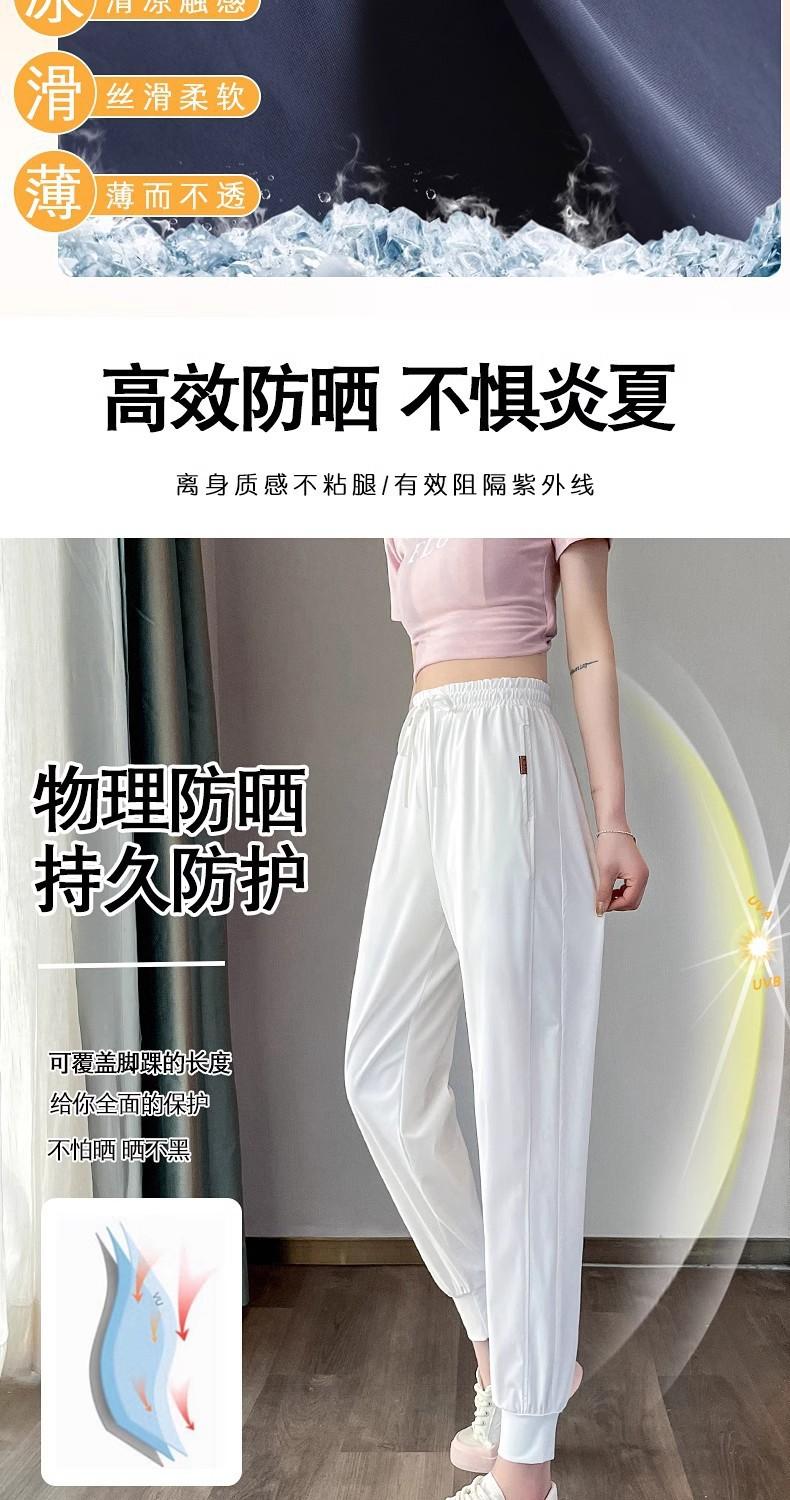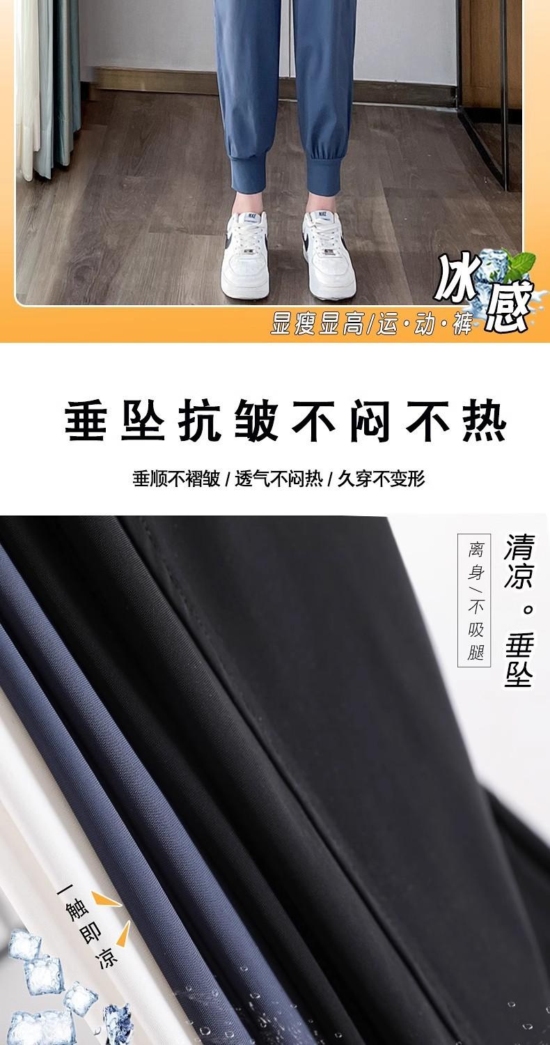 Pantalones deportivos de secado rápido para mujer verano delgados sueltos con puño 2024 nuevos nueve puntos cintura alta harem casual pantalones de seda helada