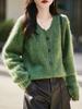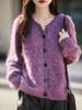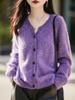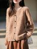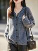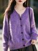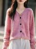 Cárdigan de Cachemira Cepillada para Mujer Cuello en V Otoño e Invierno Nuevo Suéter de Punto Holgado Abrigo Base de Lana Top Jaspeado