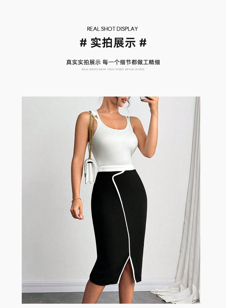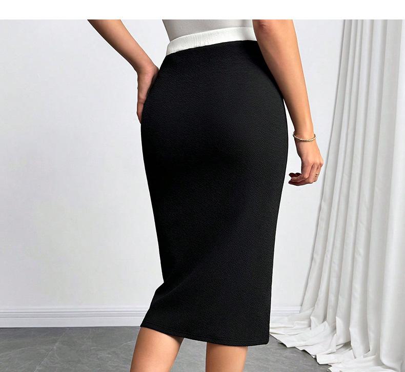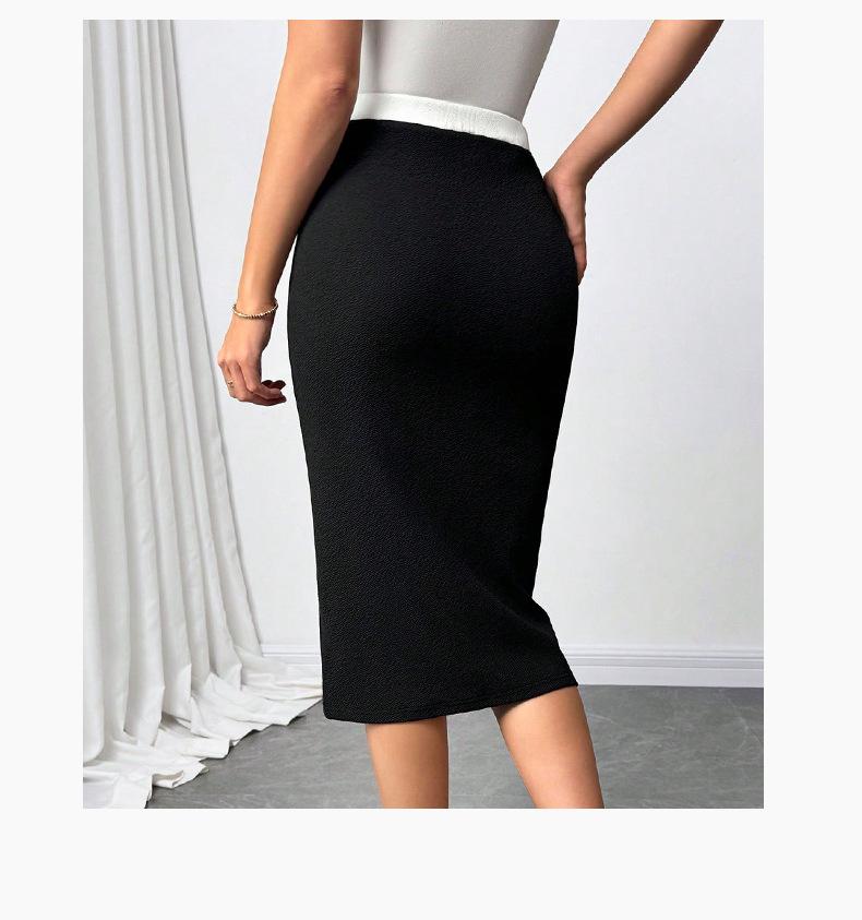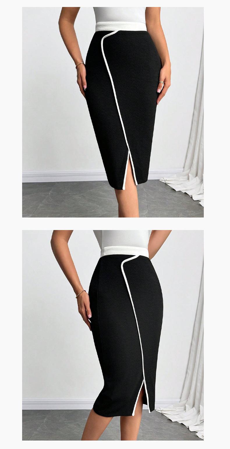Falda Midi Entallada con Abertura de Cintura Alta, Diseño Versátil de Línea, Elegante para Ir al Trabajo, Adelgazante, Europea y Americana, Amazon Transfronterizo