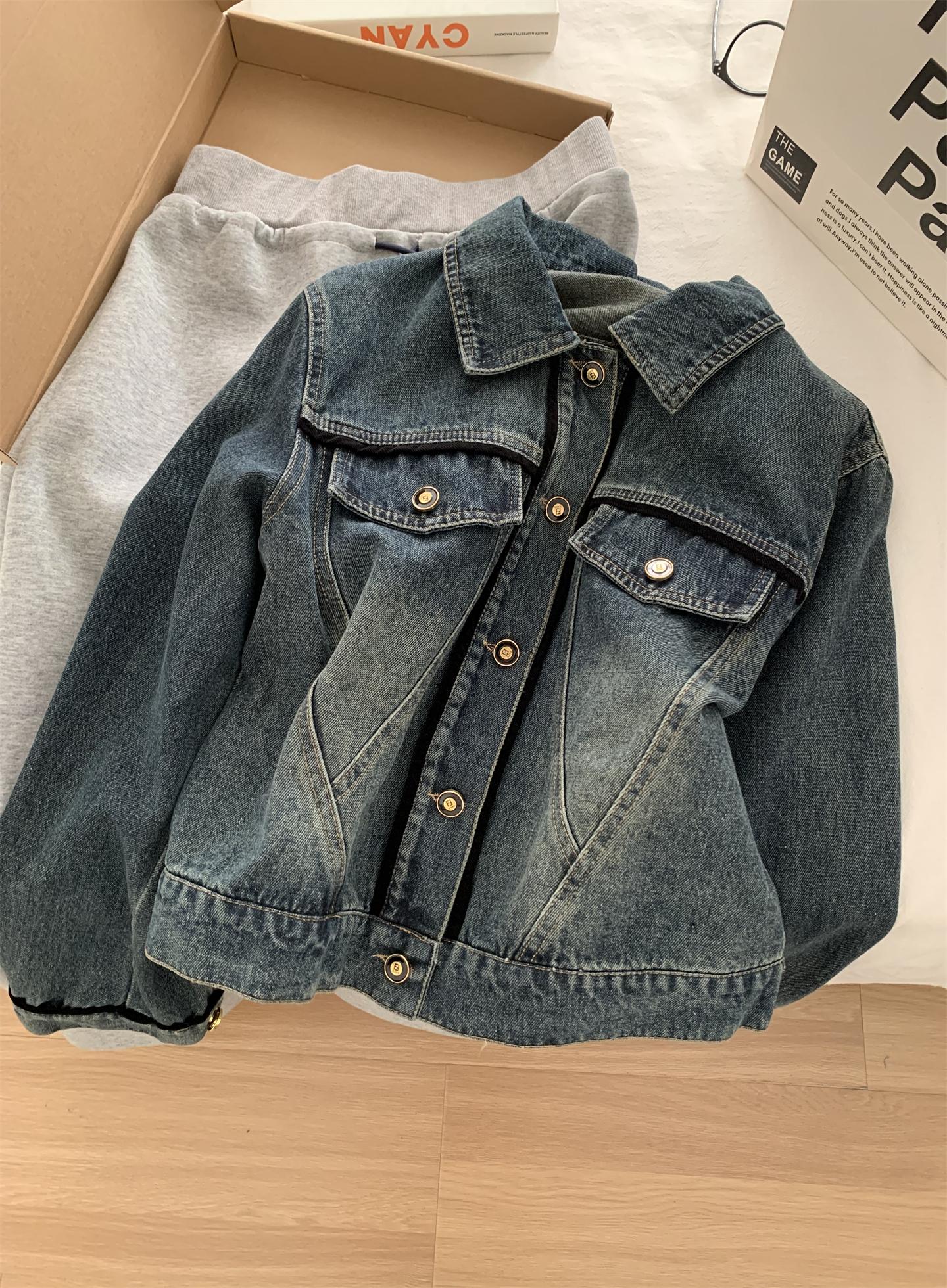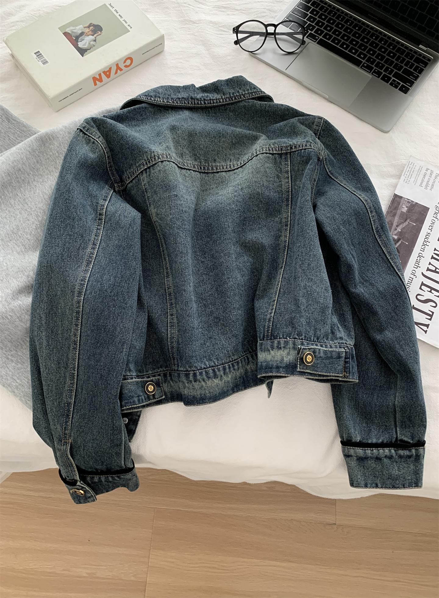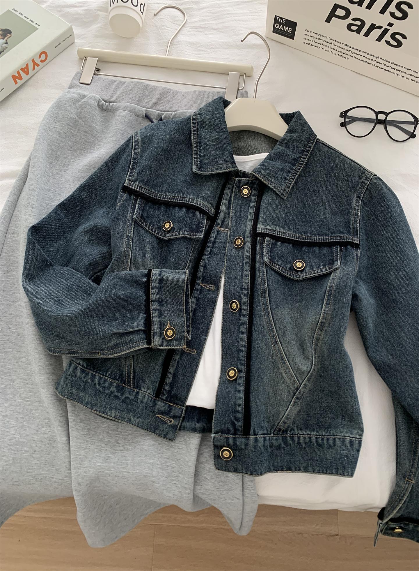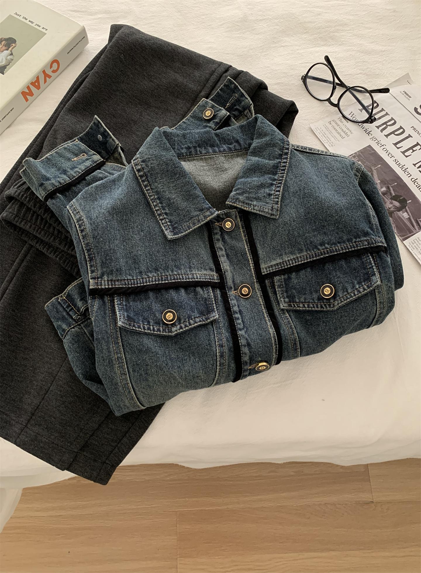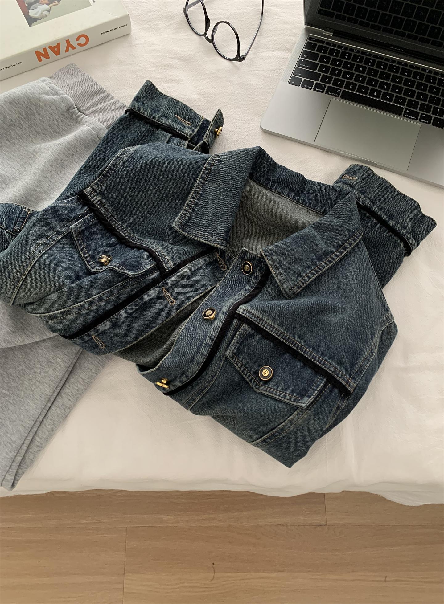 Diseño coreano chaqueta de mezclilla estilo pequeño Chanel mujer pequeña solapa con tira de bolso con hebilla dorada cárdigan corto top 25 otoño/invierno