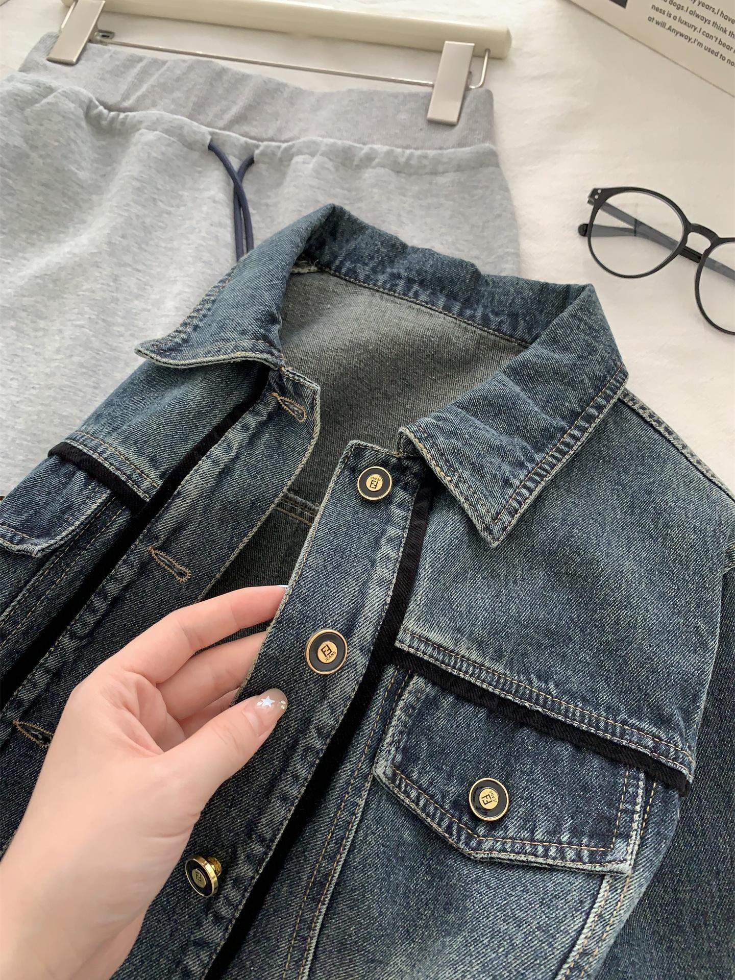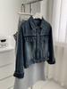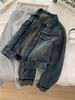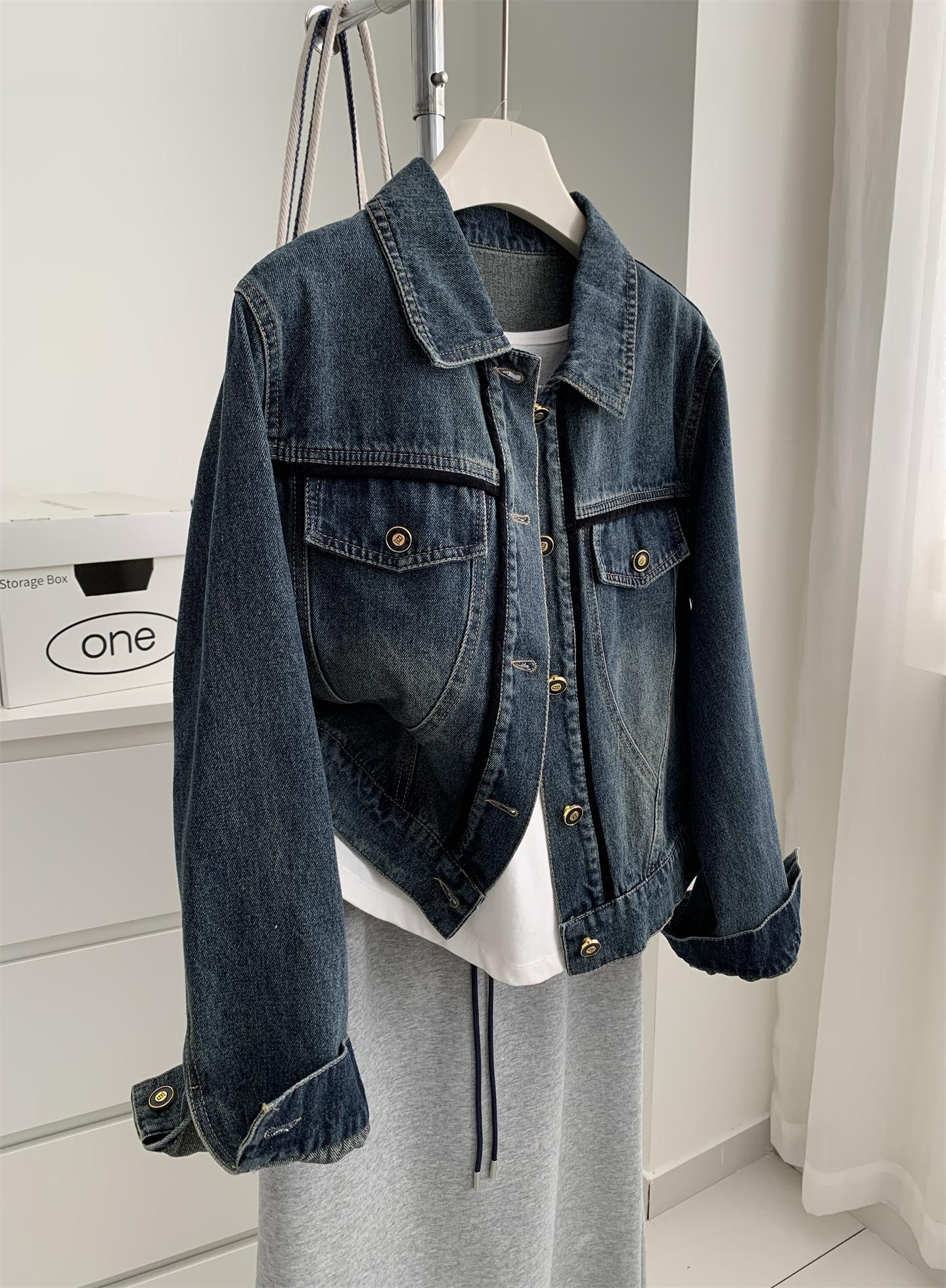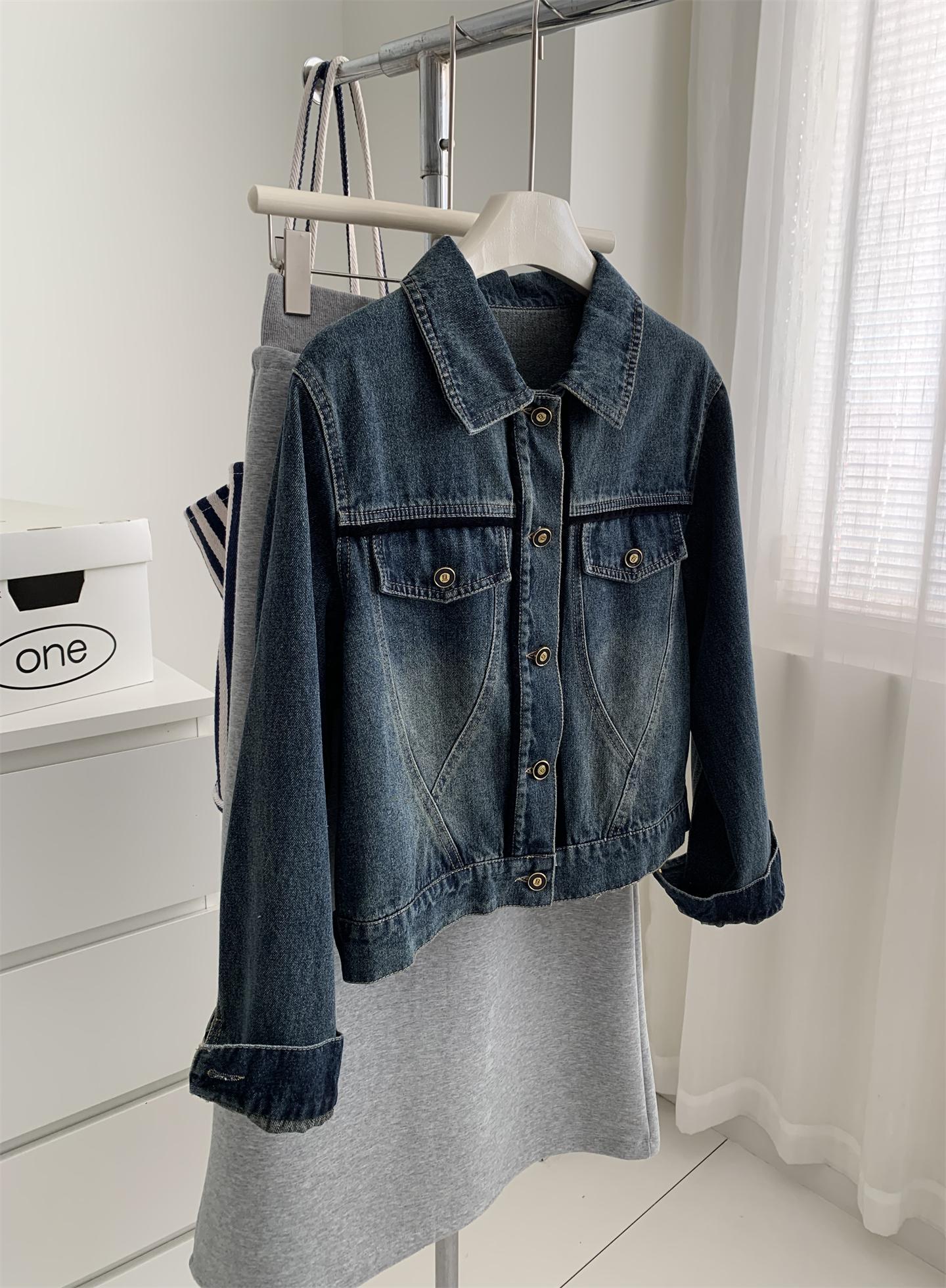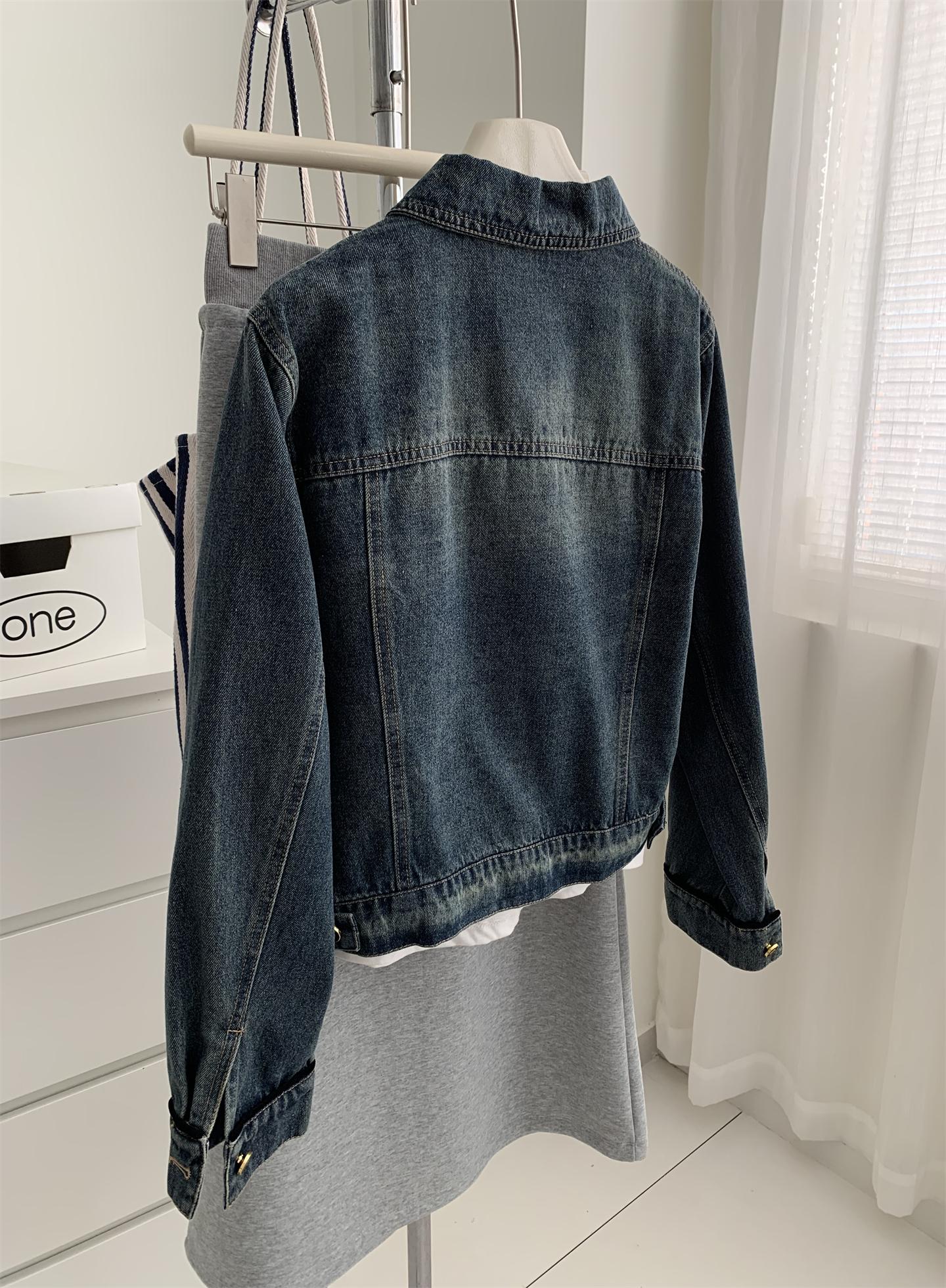 Diseño coreano chaqueta de mezclilla estilo pequeño Chanel mujer pequeña solapa con tira de bolso con hebilla dorada cárdigan corto top 25 otoño/invierno