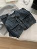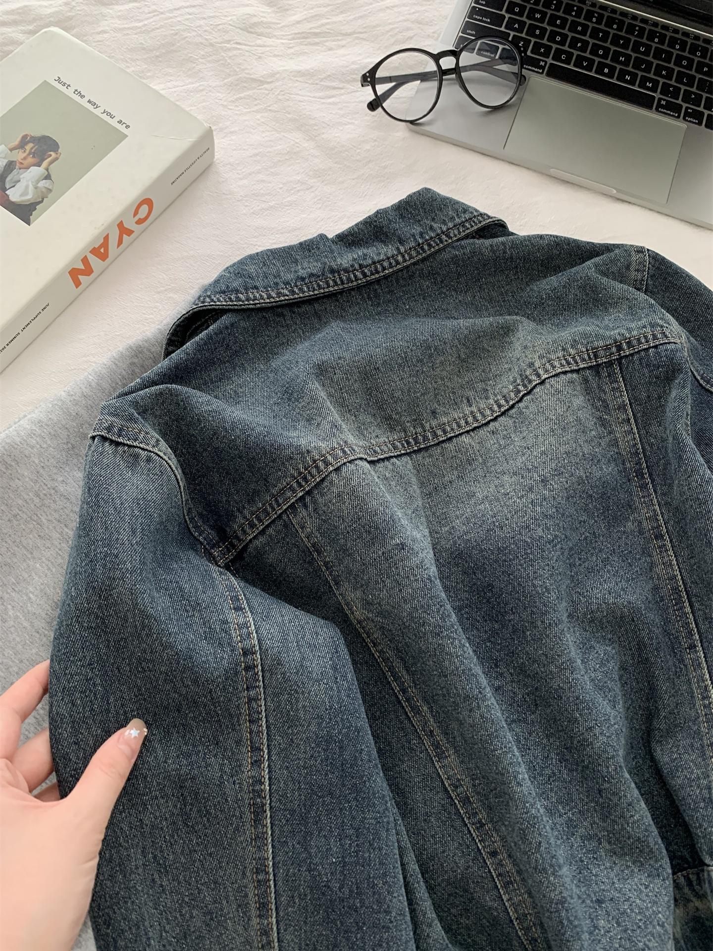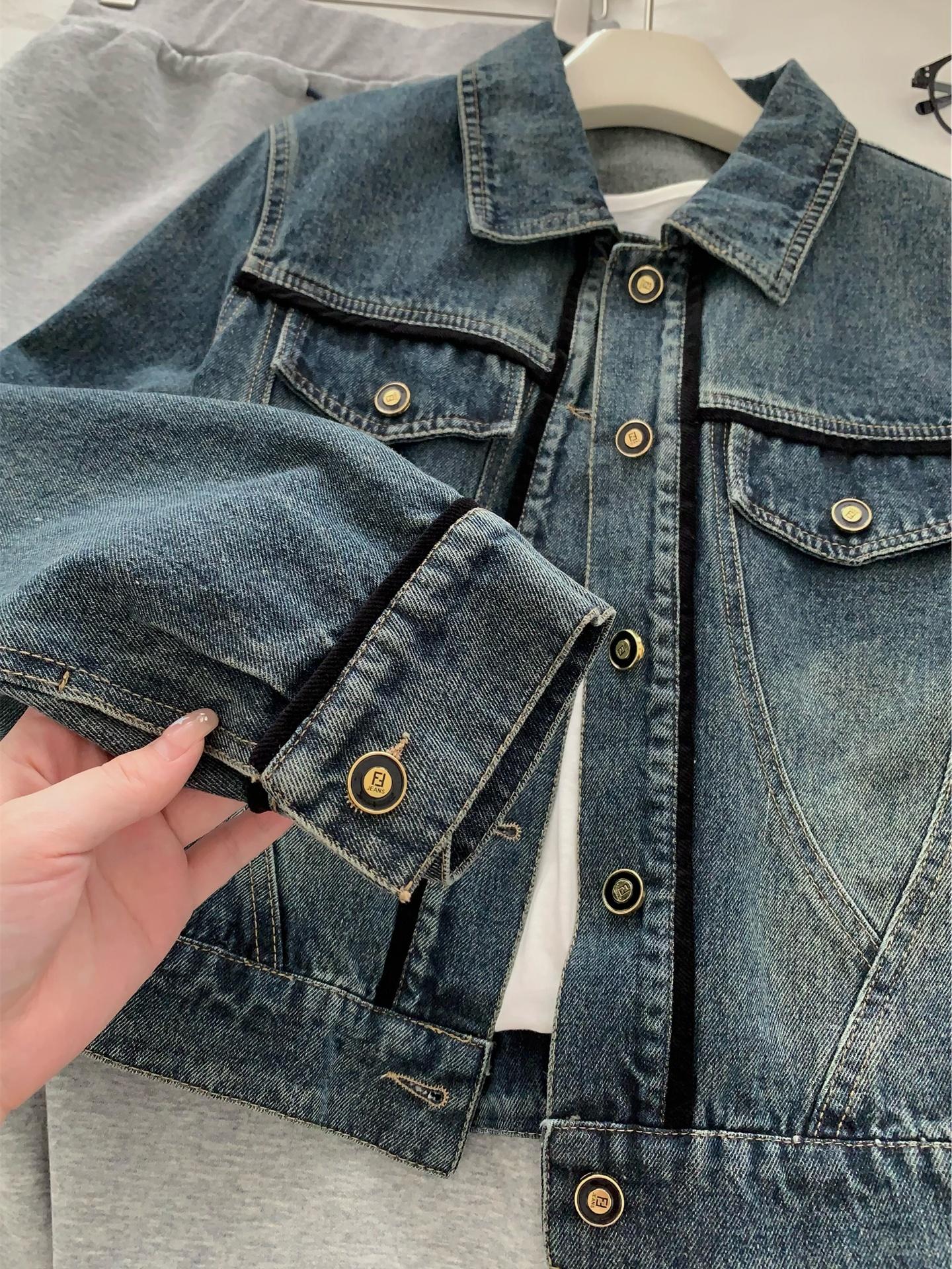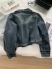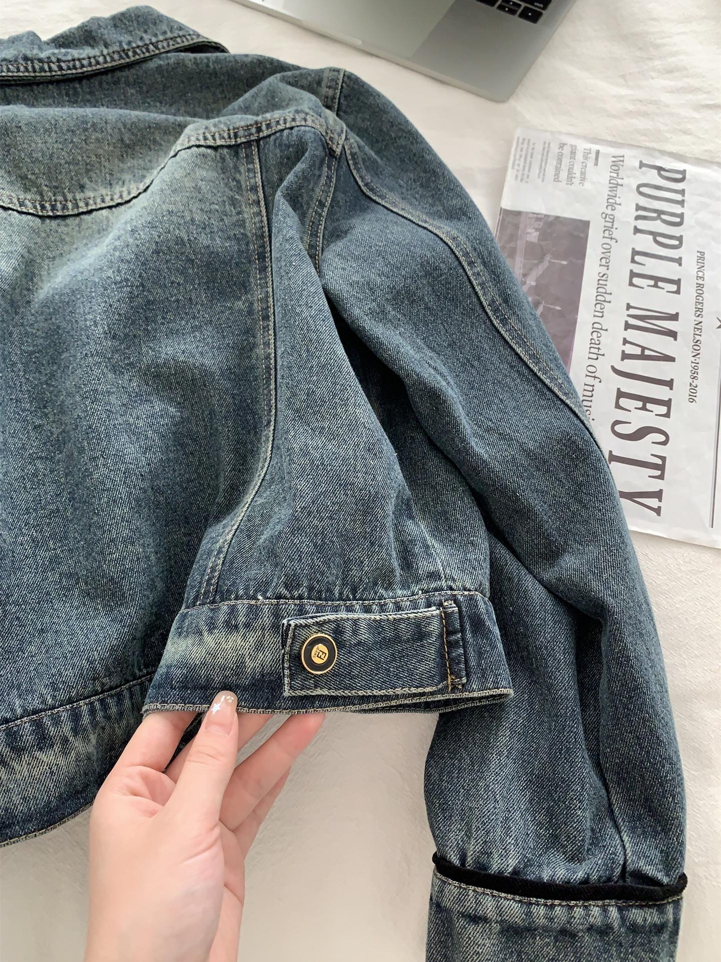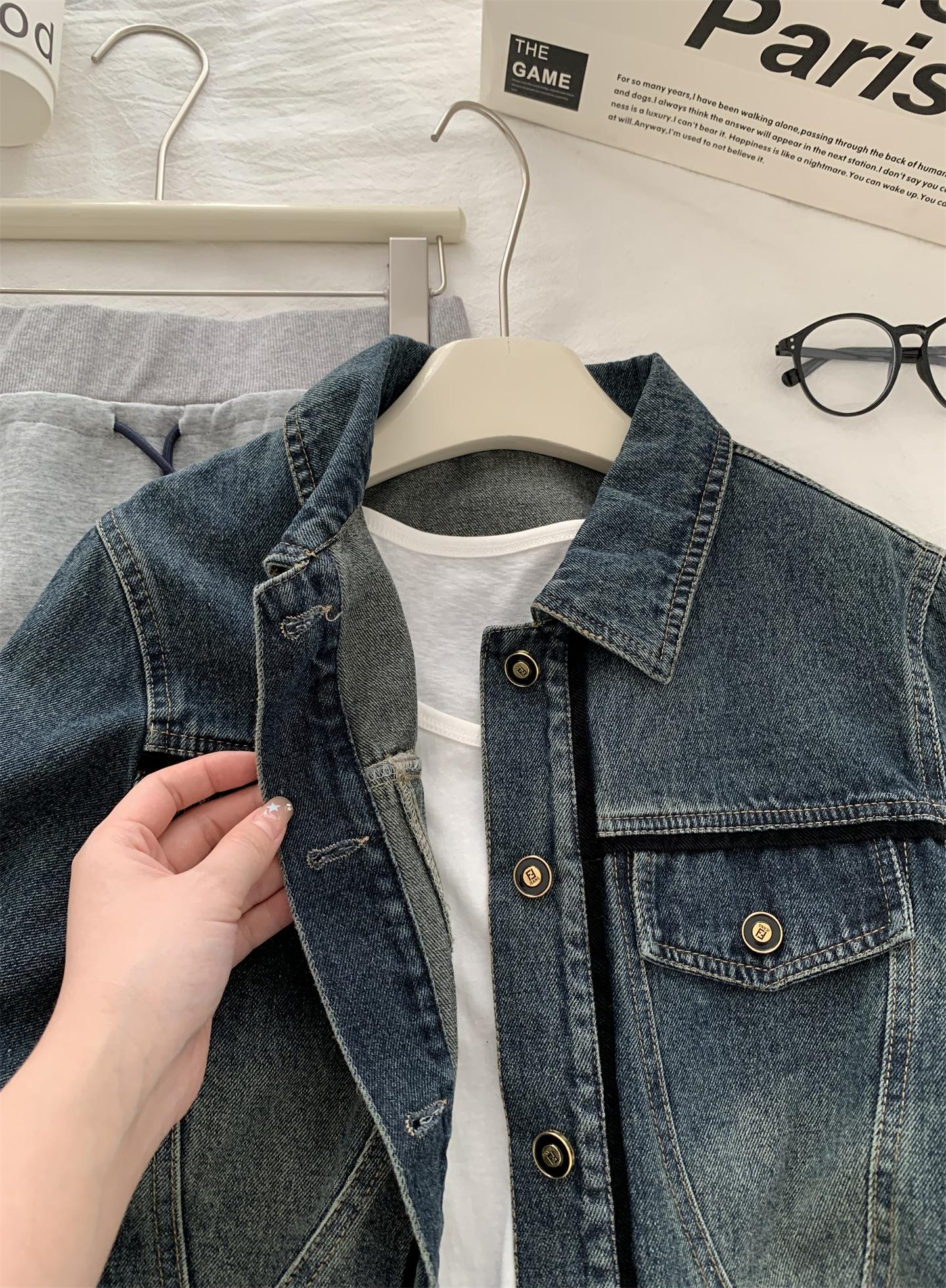 Diseño coreano chaqueta de mezclilla estilo pequeño Chanel mujer pequeña solapa con tira de bolso con hebilla dorada cárdigan corto top 25 otoño/invierno