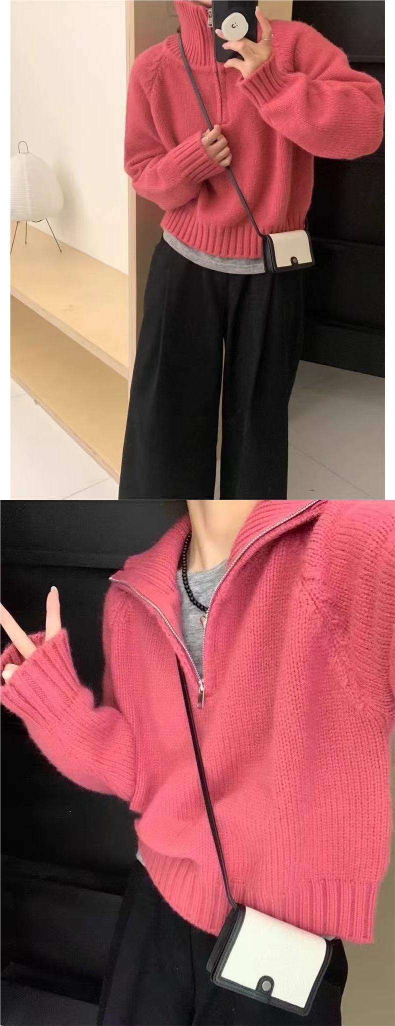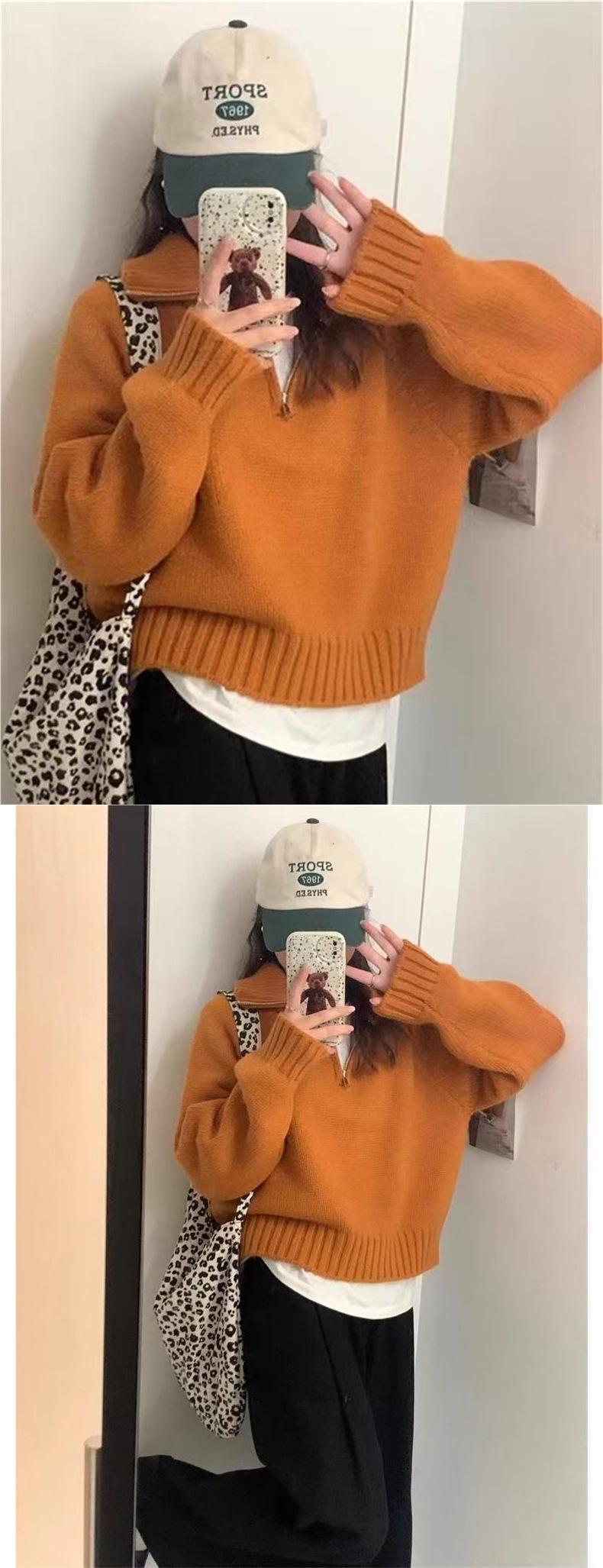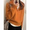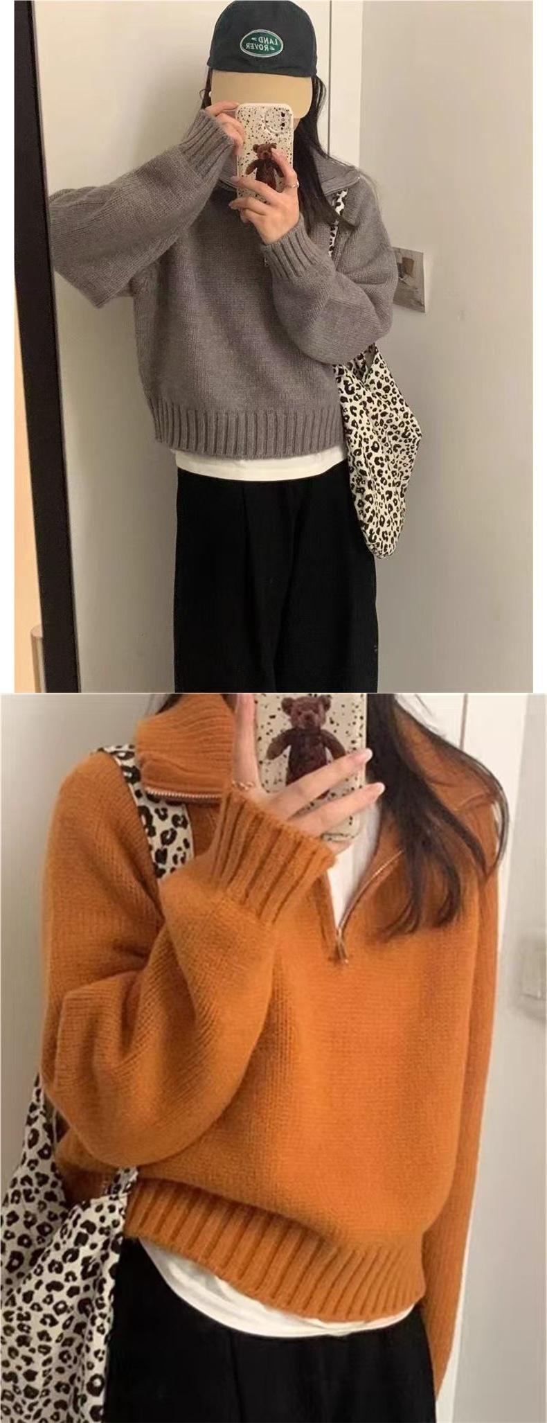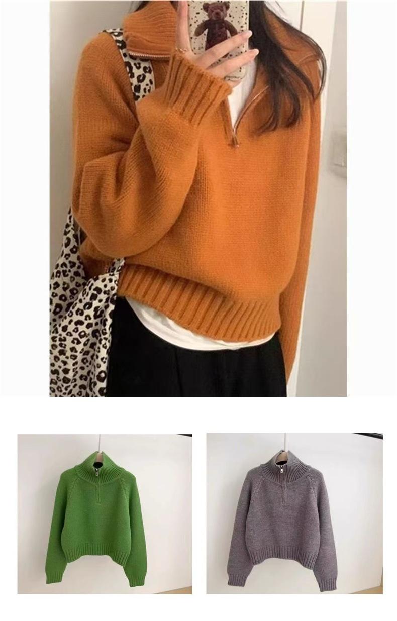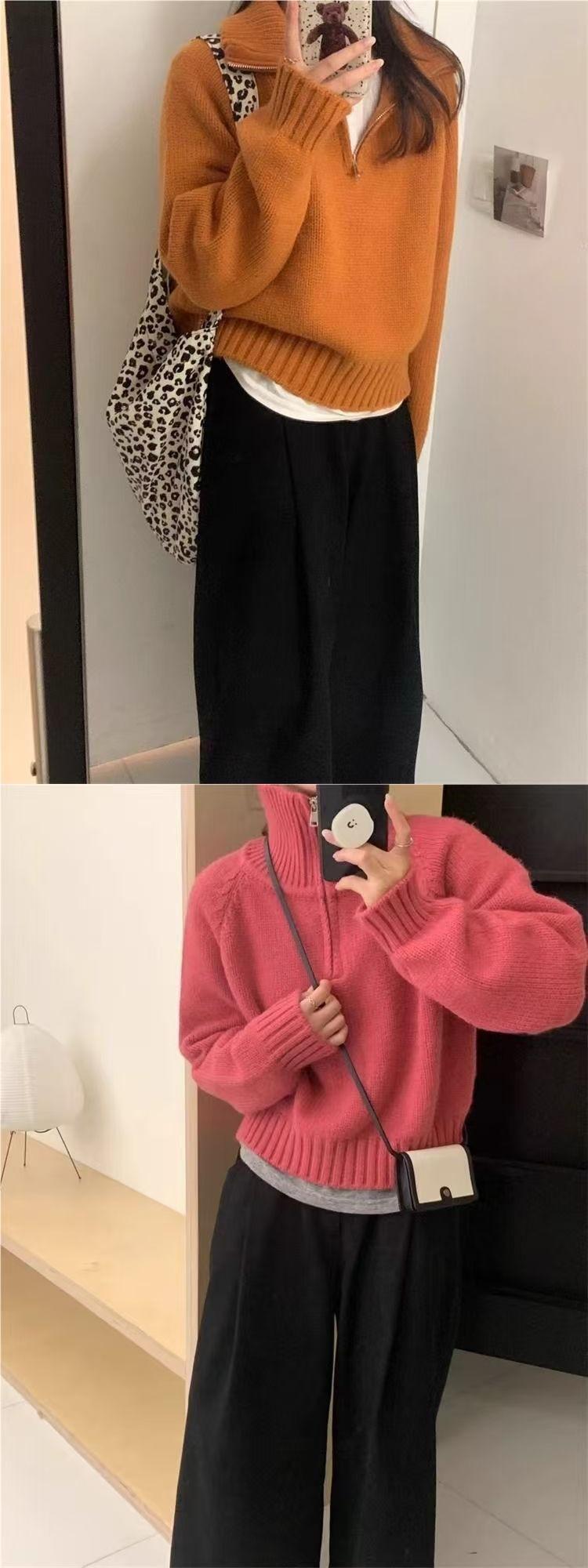 Sentido del Diseño Suéter Pulóver con Media Cremallera y Cuello Vuelto Otoño e Invierno Nuevo Estilo Coreano Cuello Alto Top de Punto Suelto Ropa Exterior