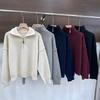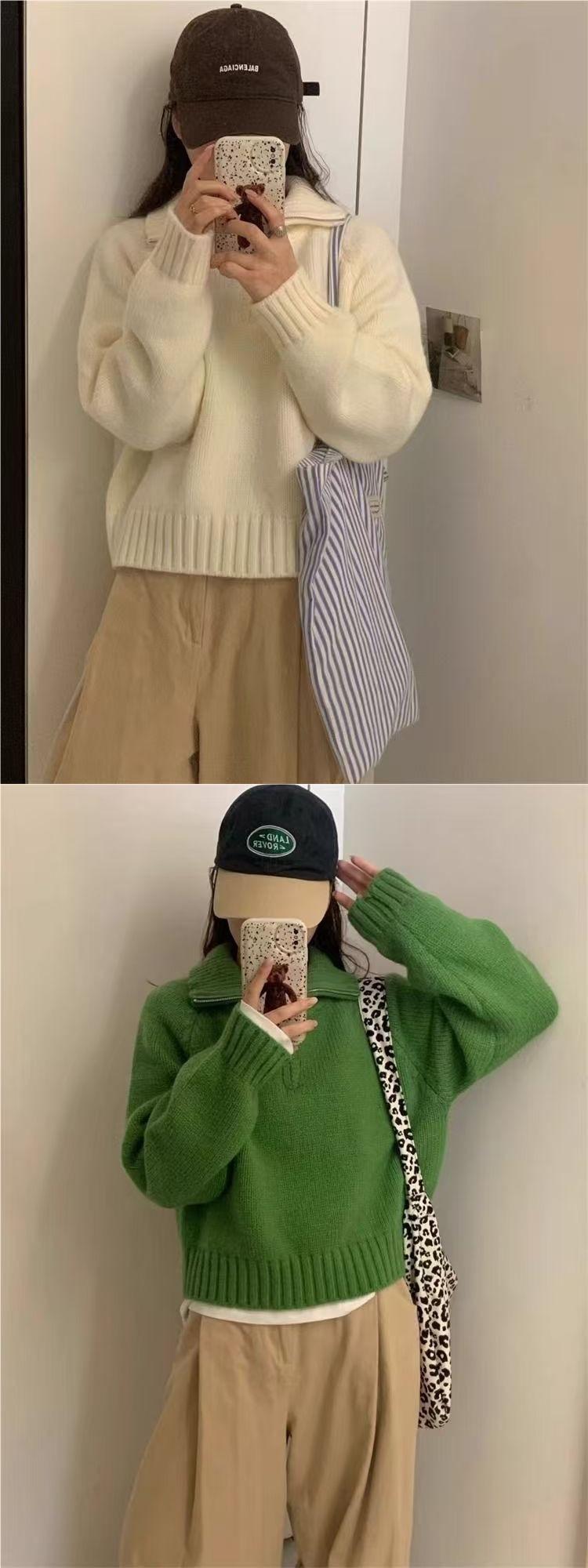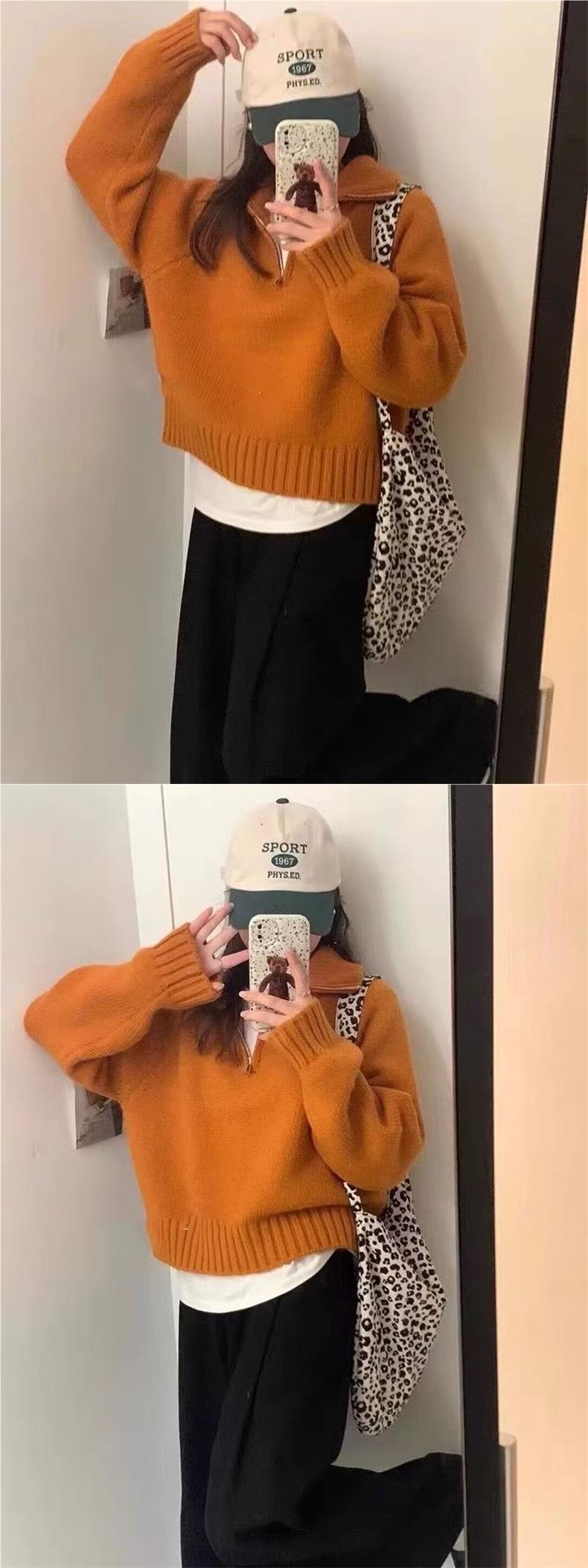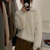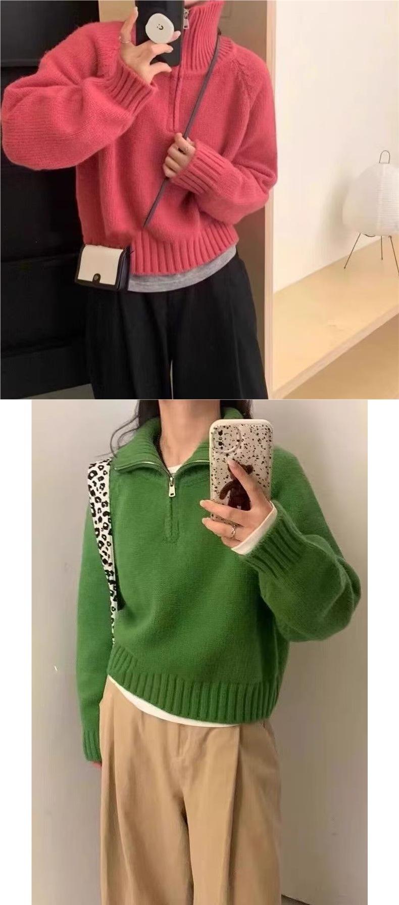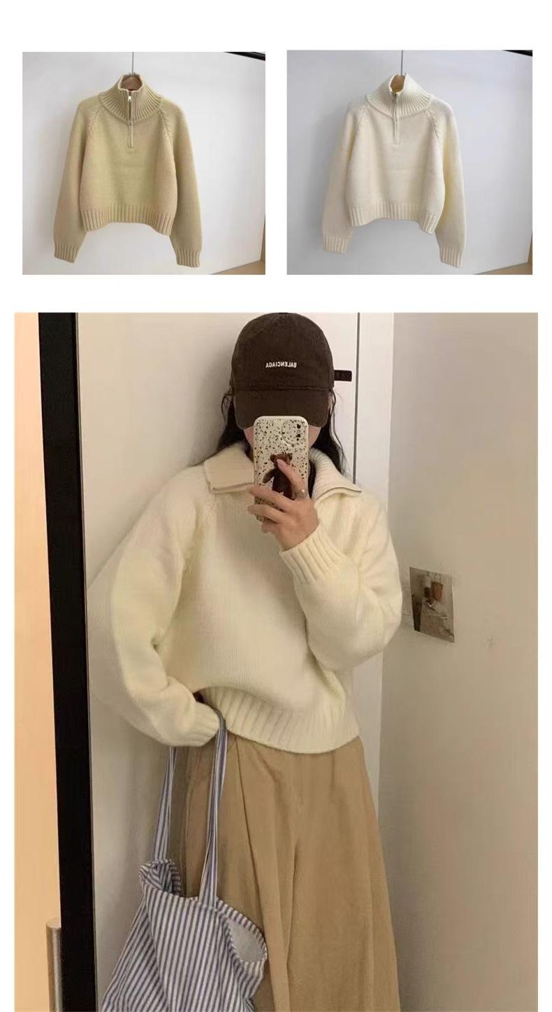 Sentido del Diseño Suéter Pulóver con Media Cremallera y Cuello Vuelto Otoño e Invierno Nuevo Estilo Coreano Cuello Alto Top de Punto Suelto Ropa Exterior