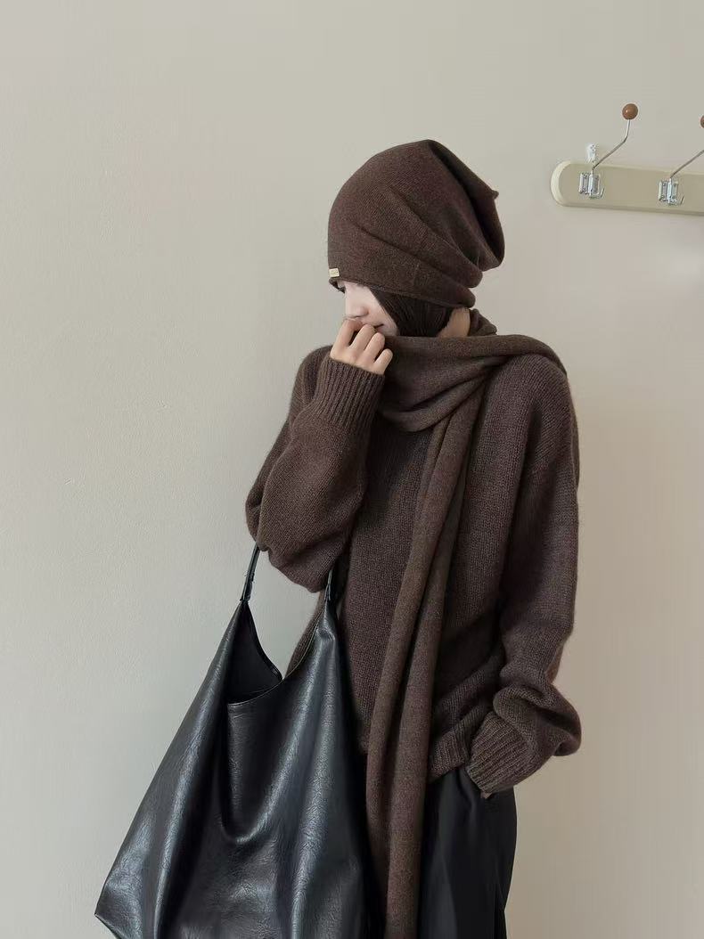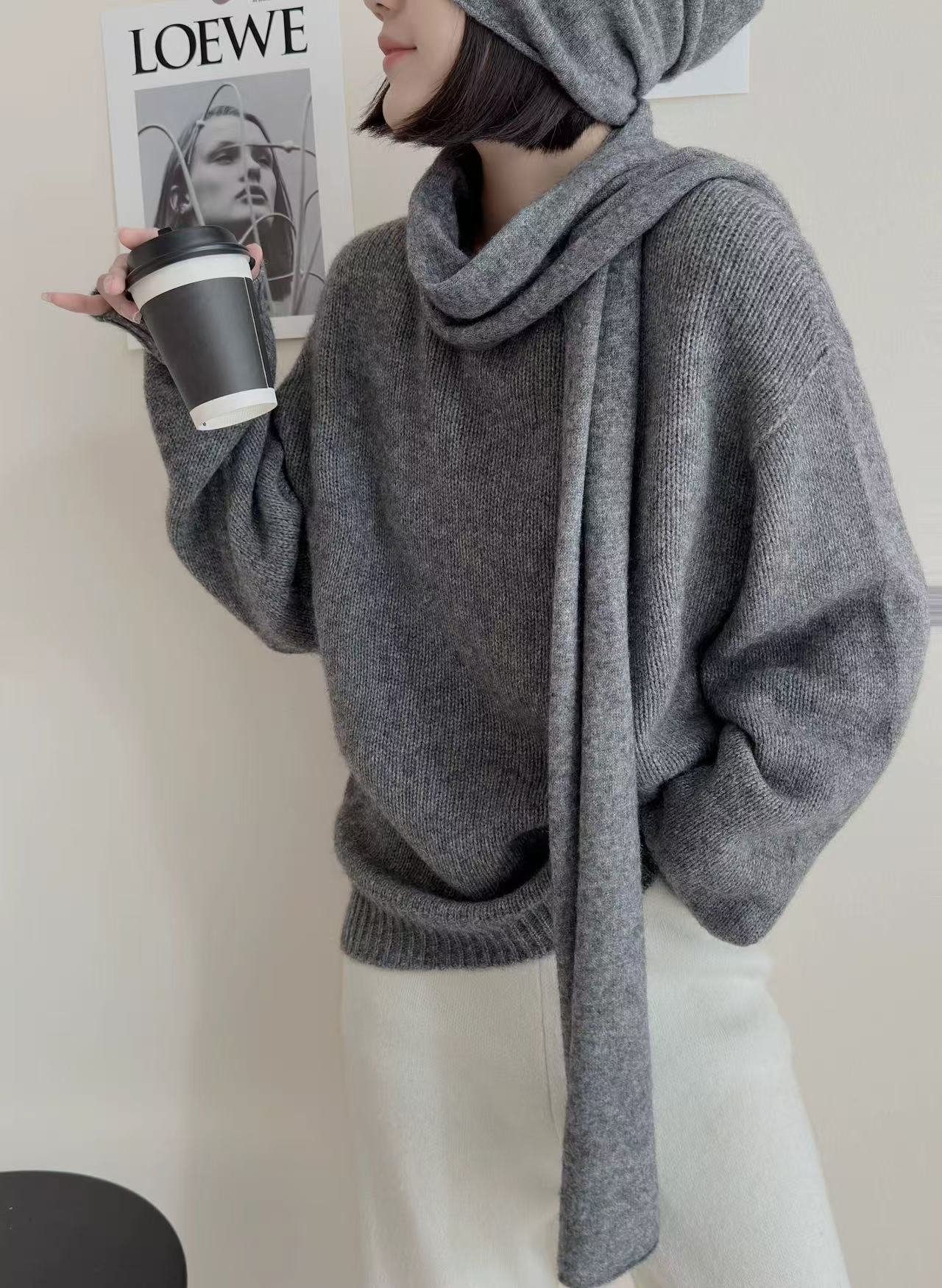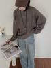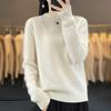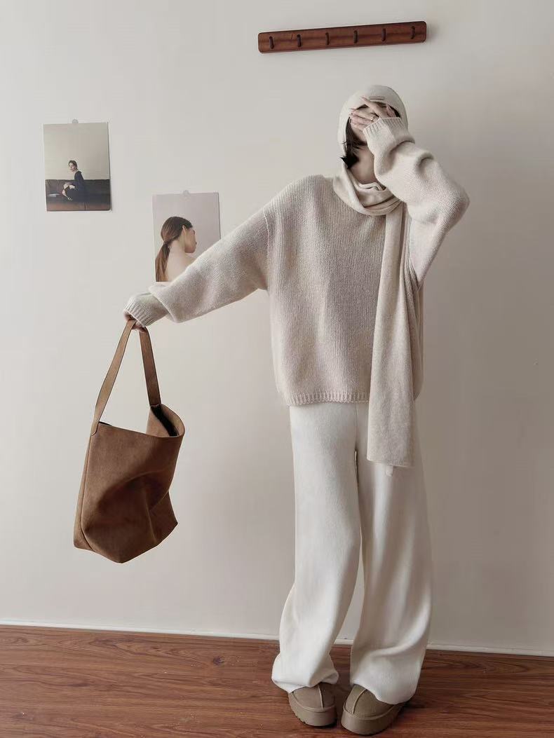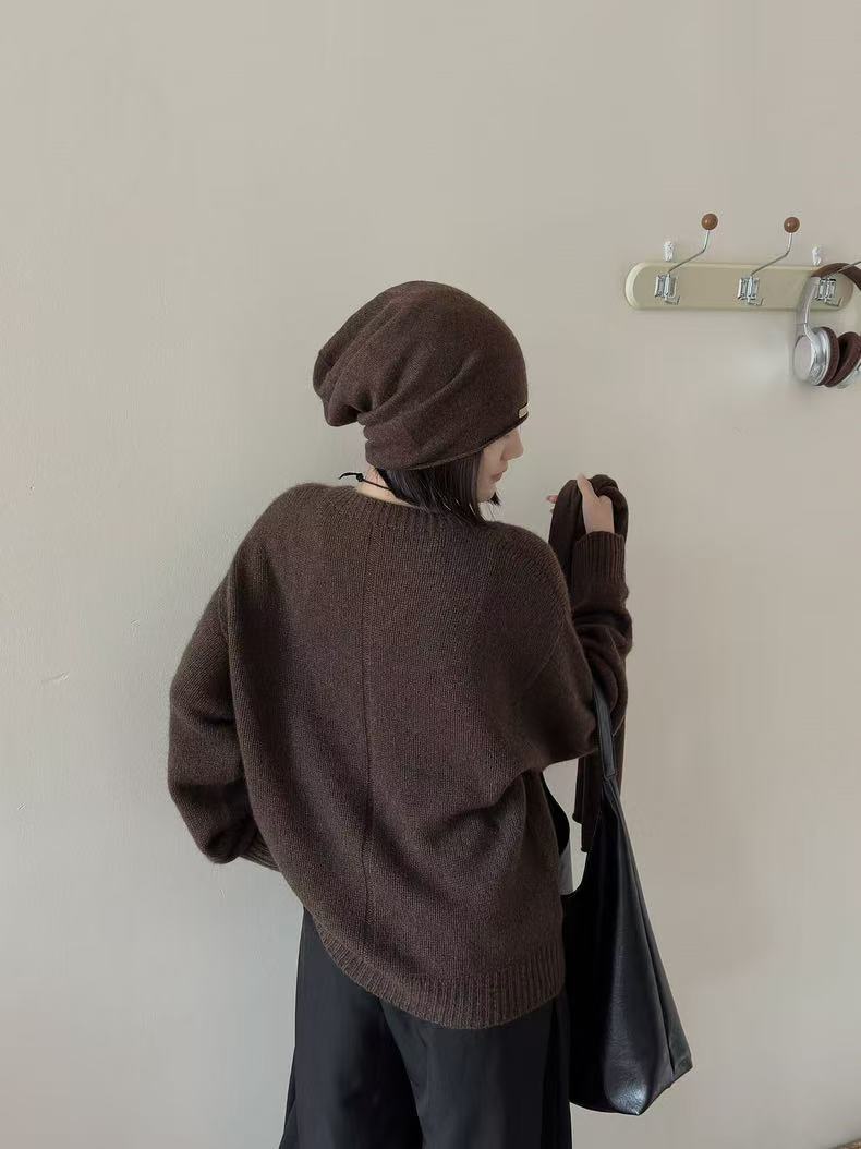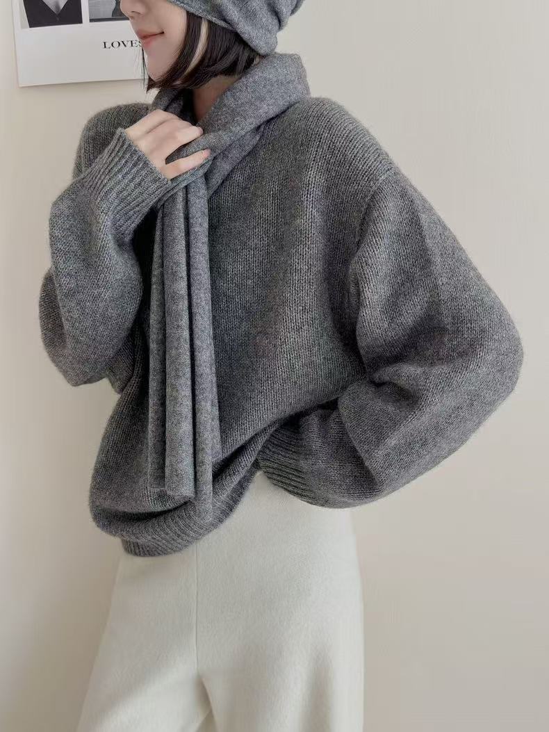 2025 Otoño/Invierno Nuevo Jersey de Punto de Lana Pura para Mujer con Cuello Redondo, Color Sólido, Holgado, Temperamental, Casual, Sencillo, Perezoso