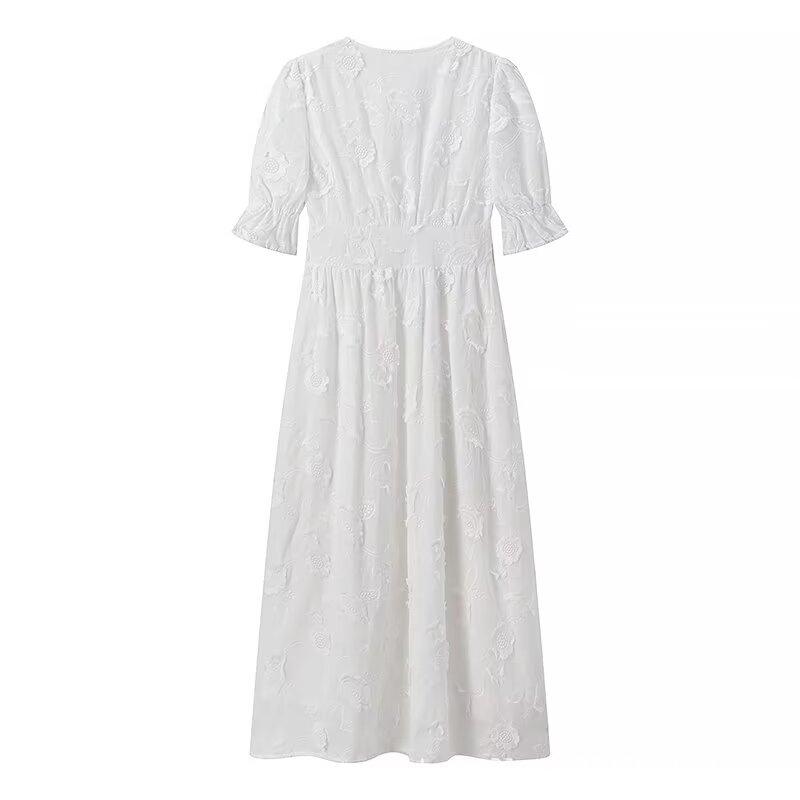 Estilo Europeo y Americano 2024 Verano Nuevo Vestido Cárdigan Bordado de Industria Pesada Estéreo con Cuello en V para Mujer Venta al por Mayor