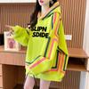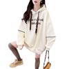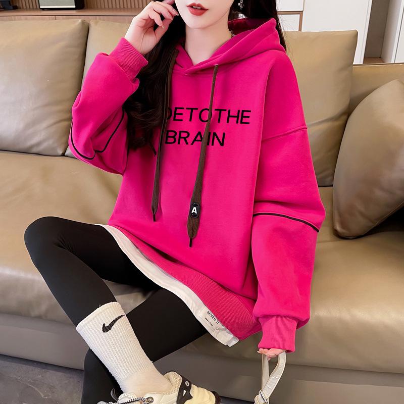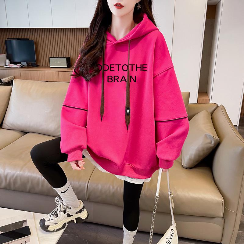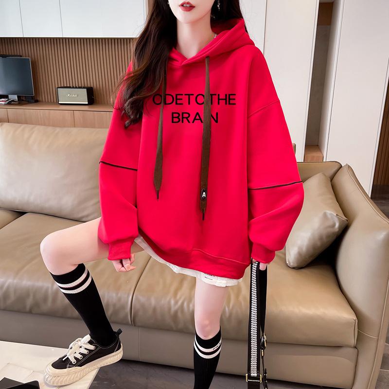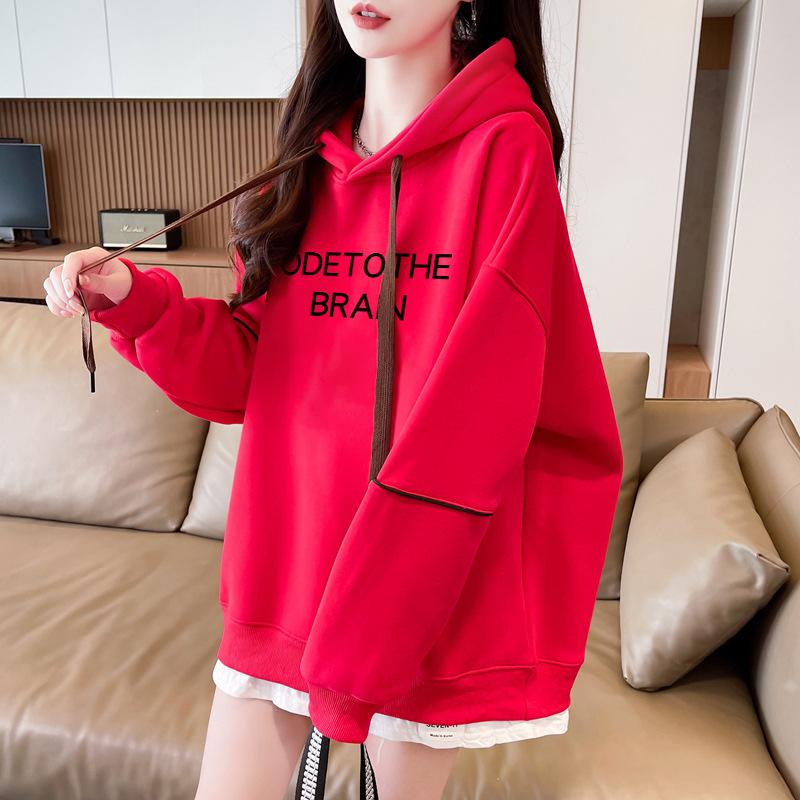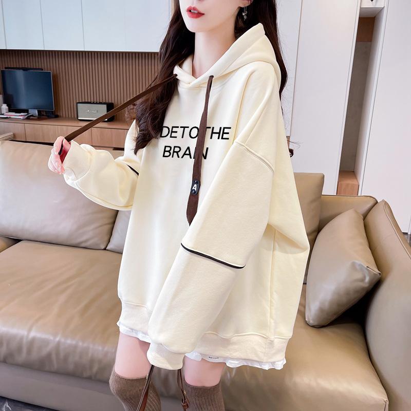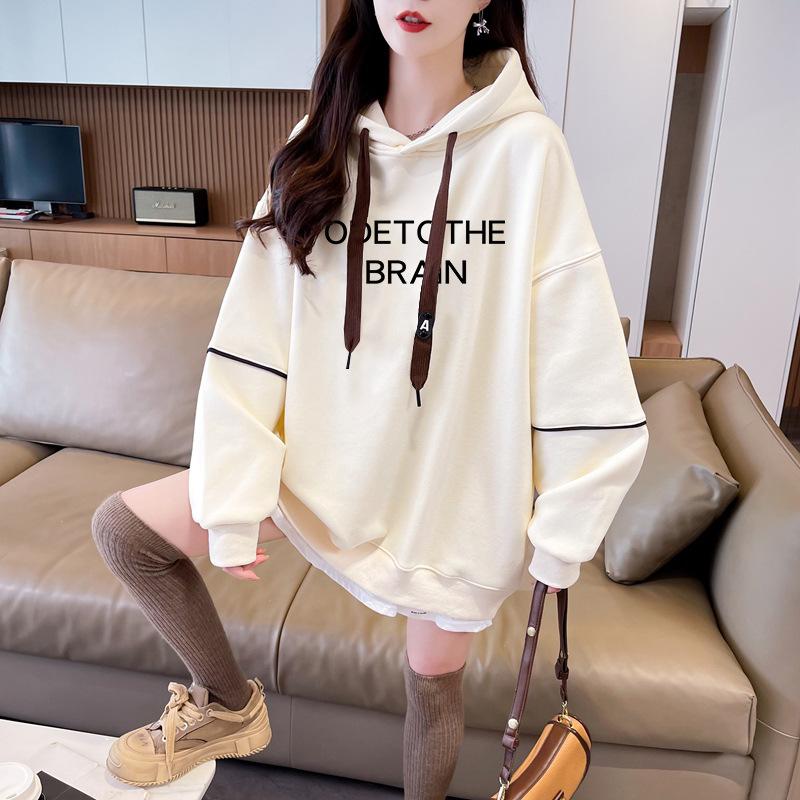 Otoño e Invierno Moda Chic Sencillo Estampado de Letras Diseño Falso de Dos Piezas Oversize con Forro Polar Grueso Sudadera con Capucha