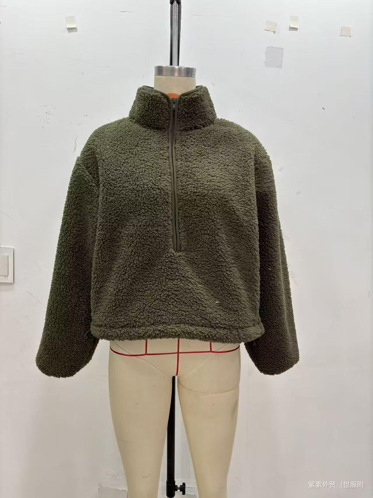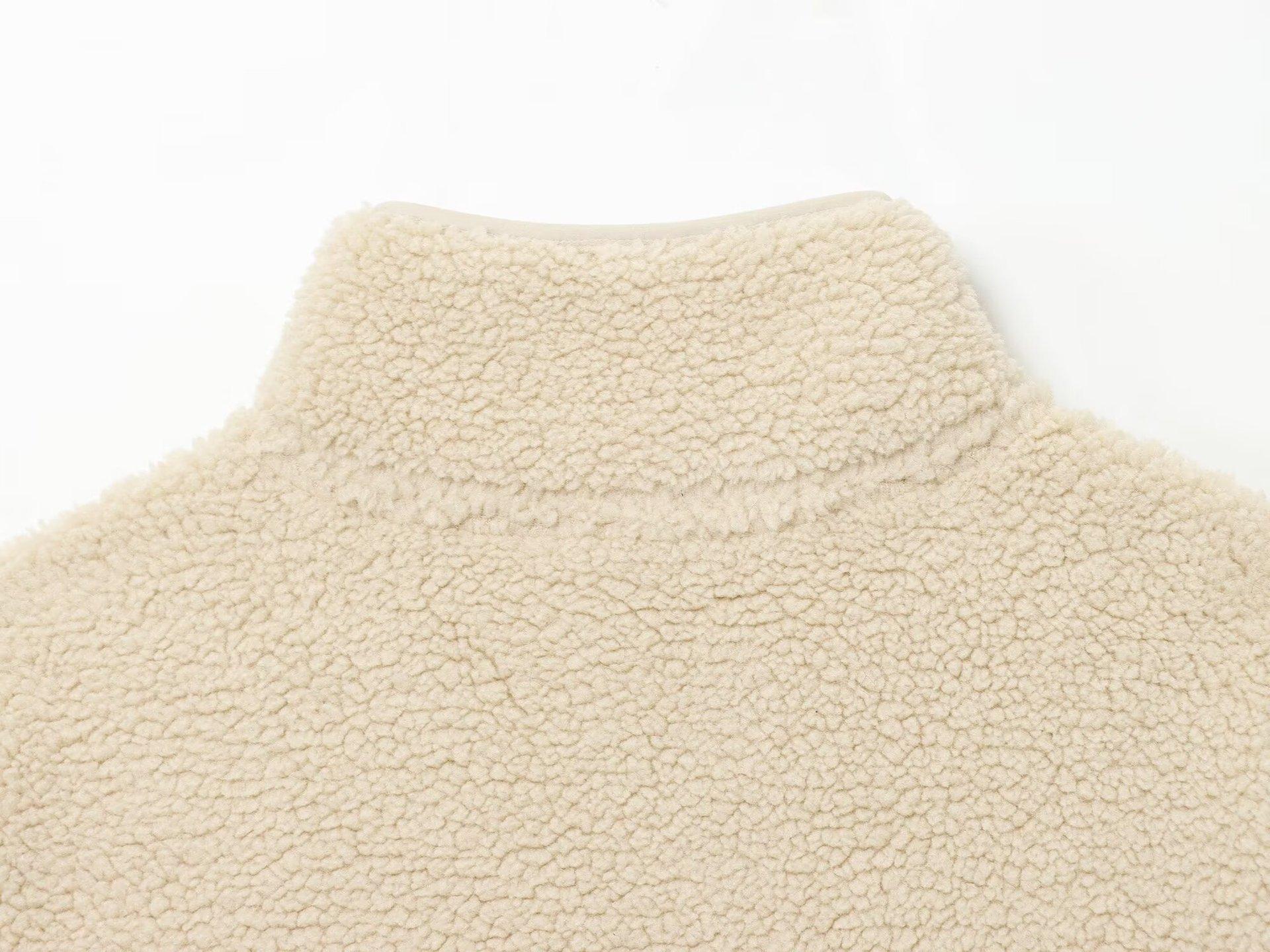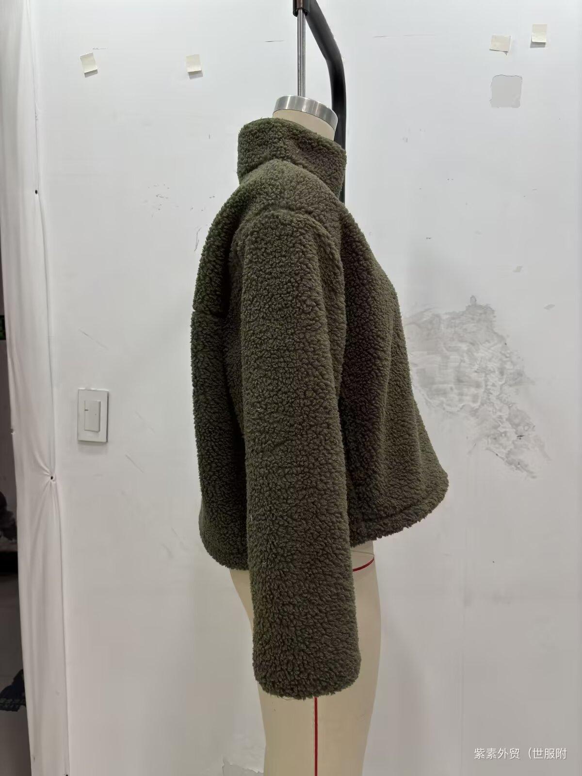 Comercio Exterior Transfronterizo Europa y América 2025 Otoño/Invierno Nuevo Americano Retro Teddy Fleece Cuello Alto Jersey Sudadera Difusa Chaqueta de Algodón Mujer