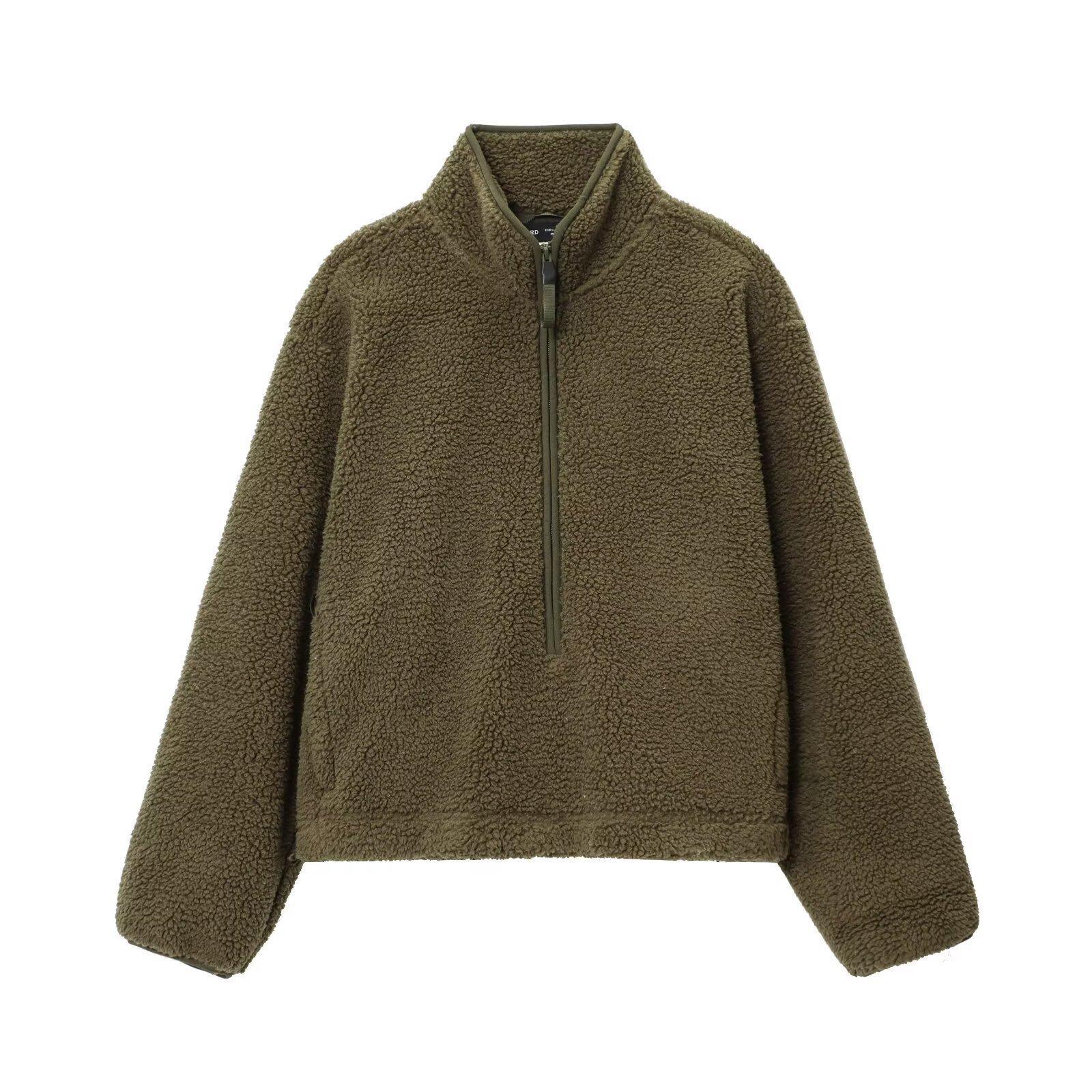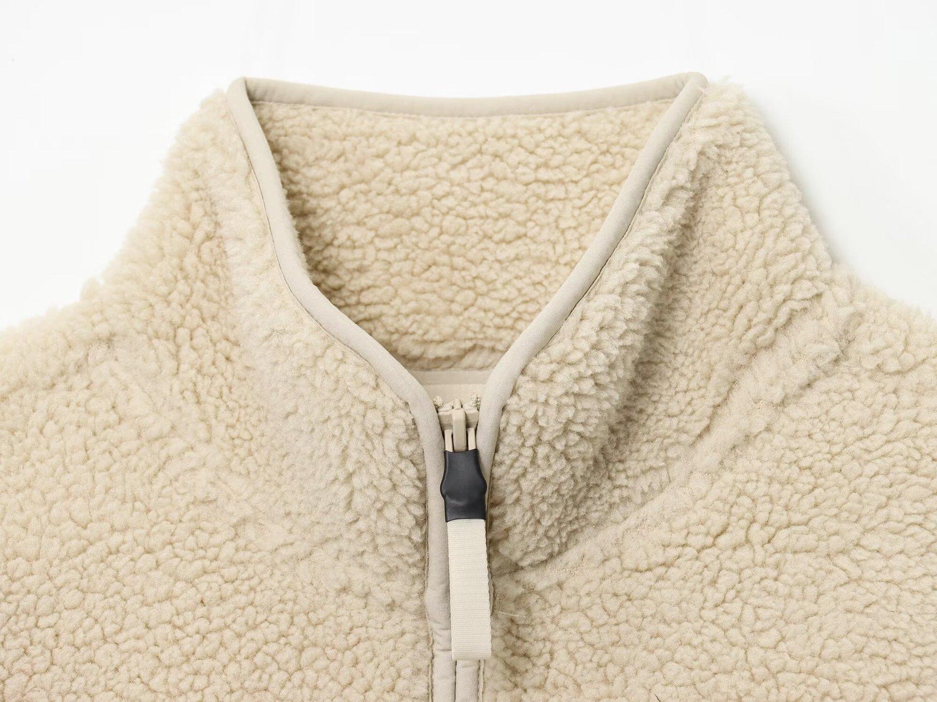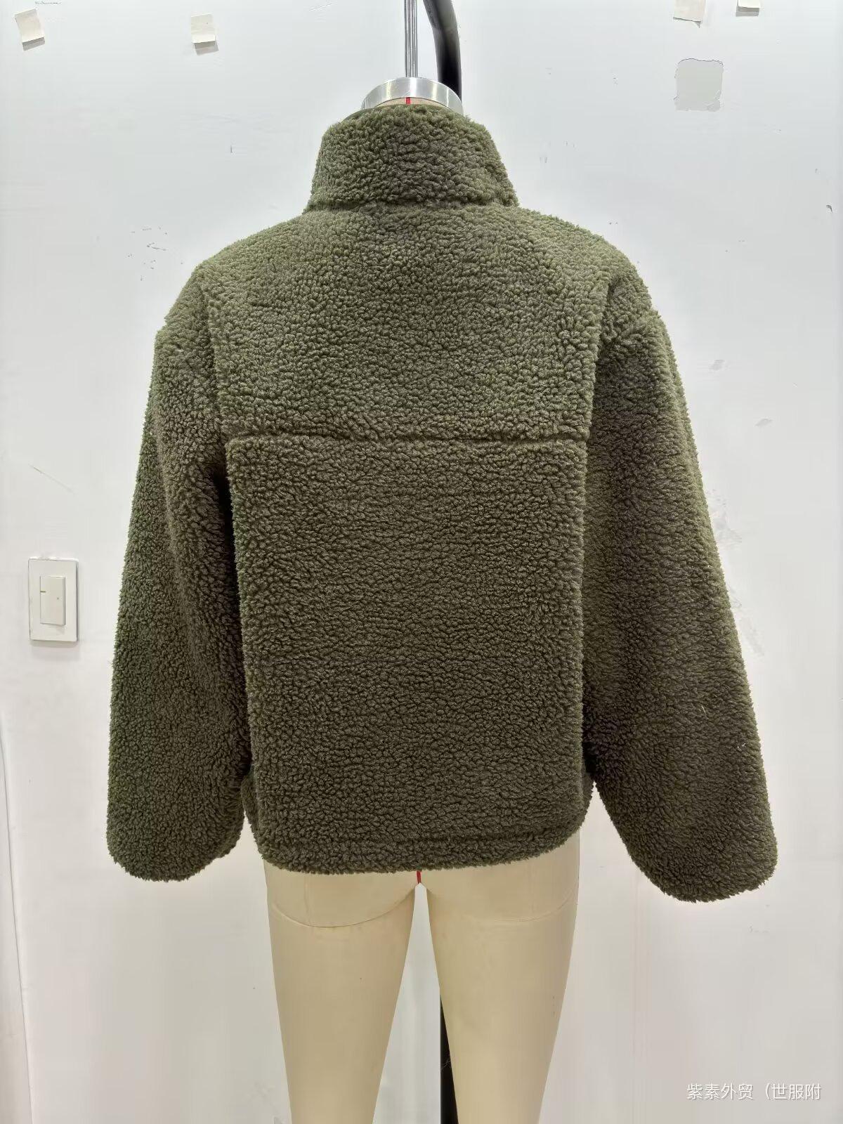 Comercio Exterior Transfronterizo Europa y América 2025 Otoño/Invierno Nuevo Americano Retro Teddy Fleece Cuello Alto Jersey Sudadera Difusa Chaqueta de Algodón Mujer