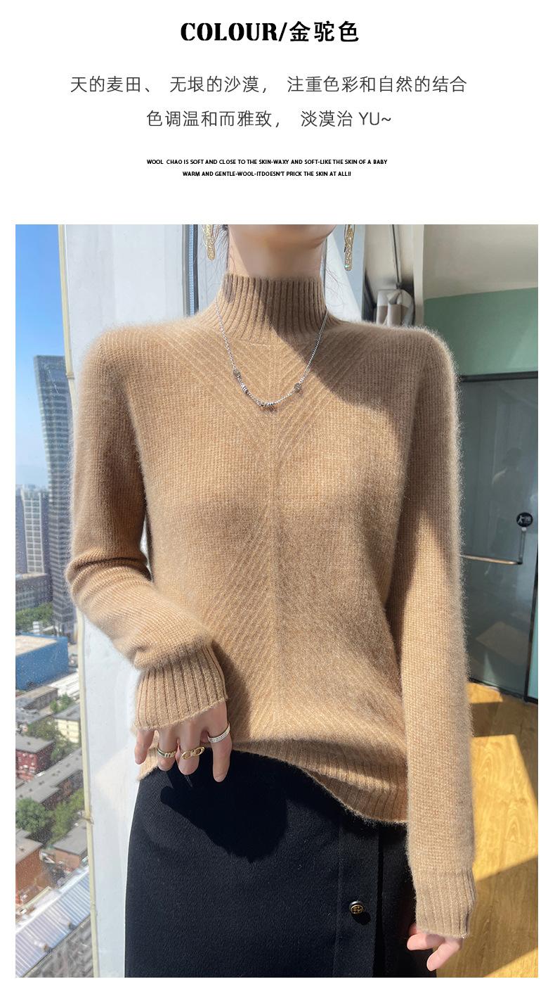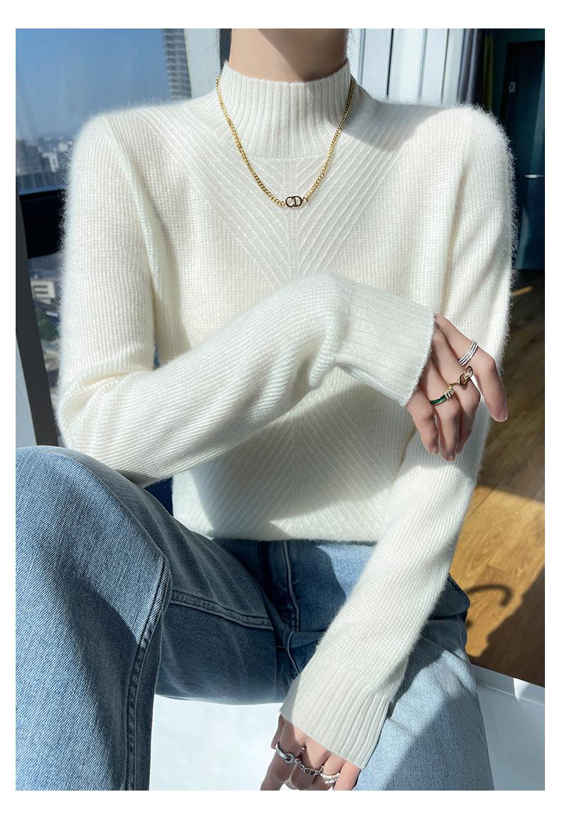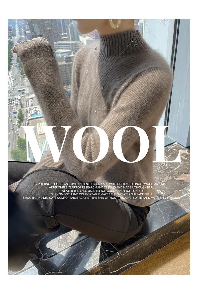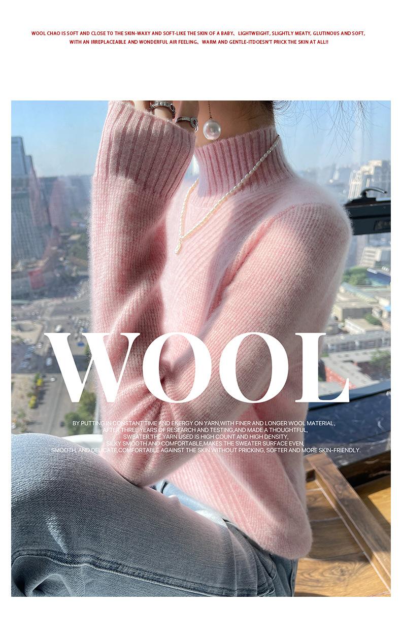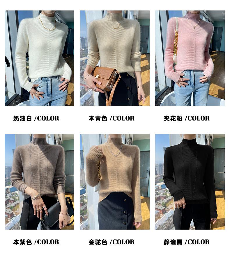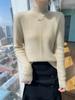 2025 Otoño/Invierno Nuevo Suéter Tejido de Lana Pura de Cuello Medio Alto Manga Larga para Mujer Color Sólido Suave Jersey Capa Base Top