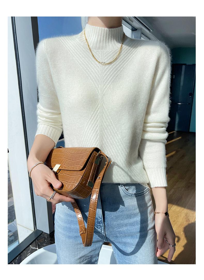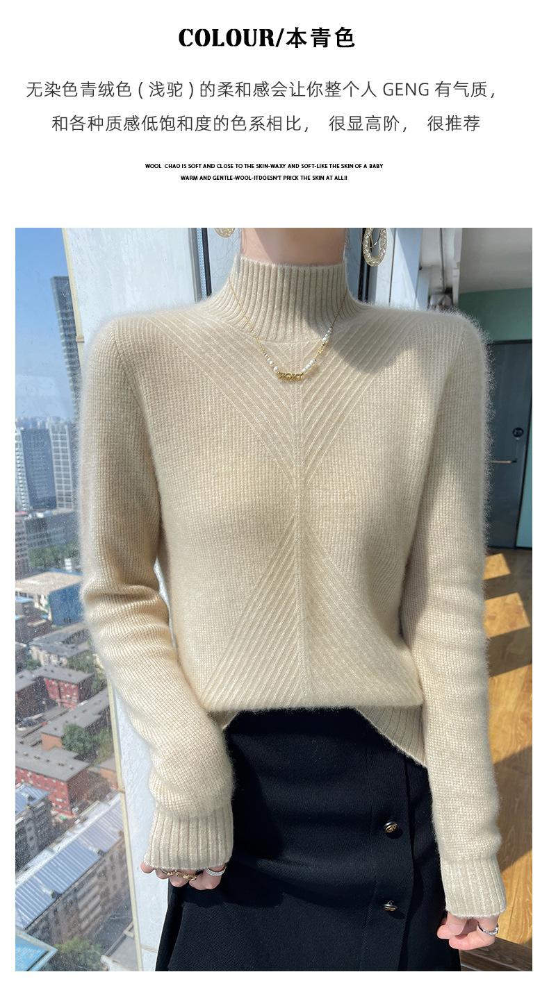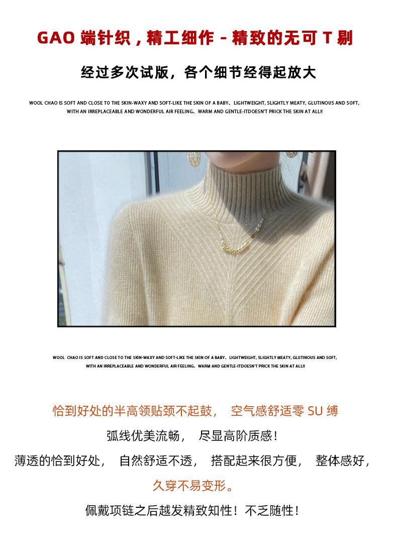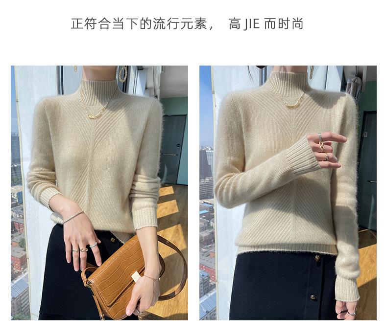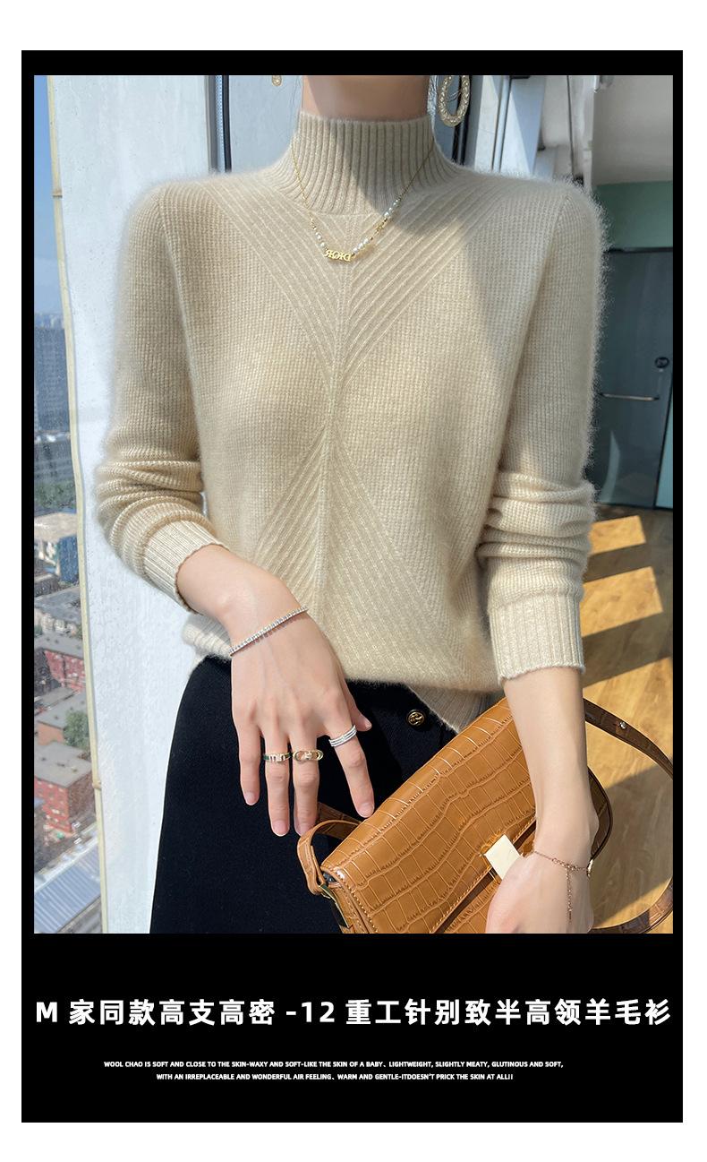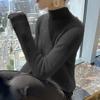 2025 Otoño/Invierno Nuevo Suéter Tejido de Lana Pura de Cuello Medio Alto Manga Larga para Mujer Color Sólido Suave Jersey Capa Base Top