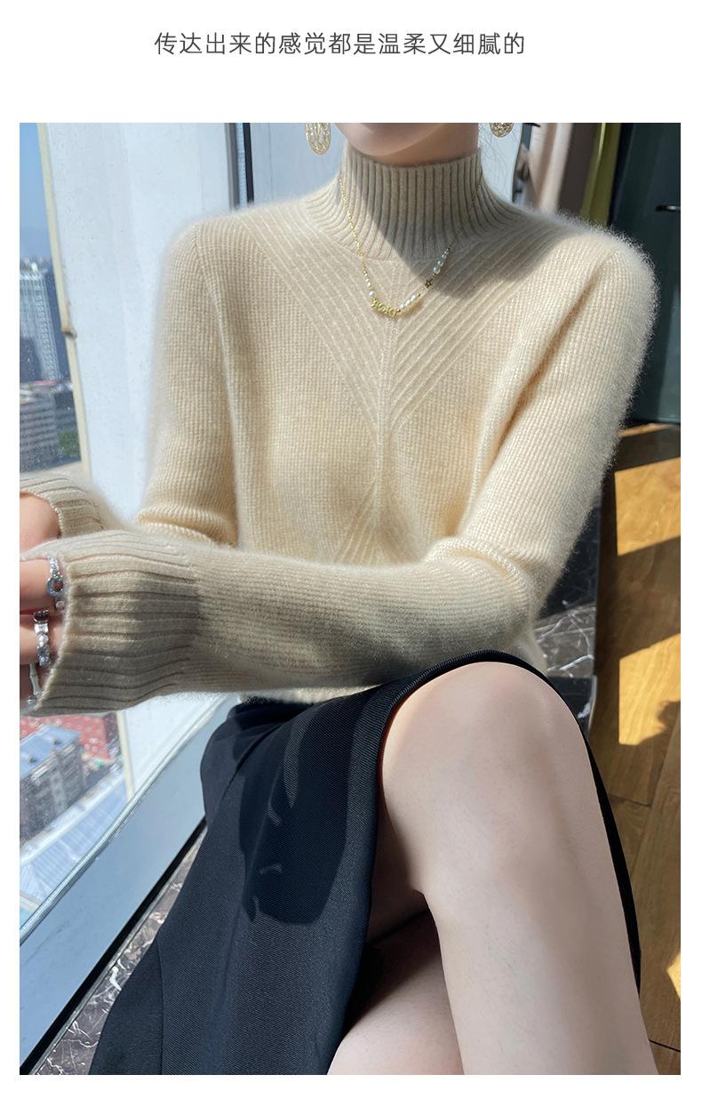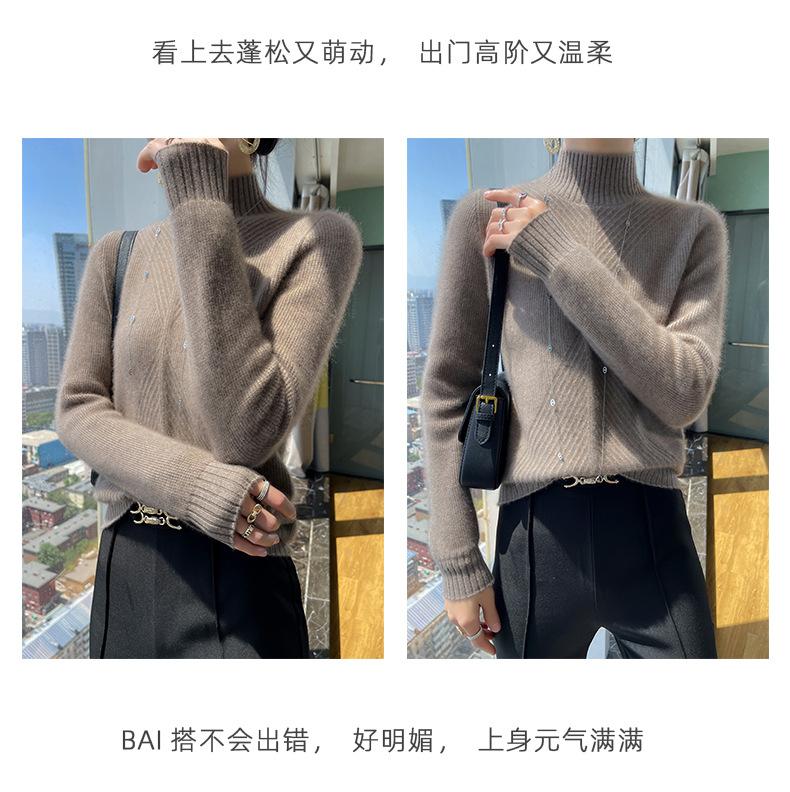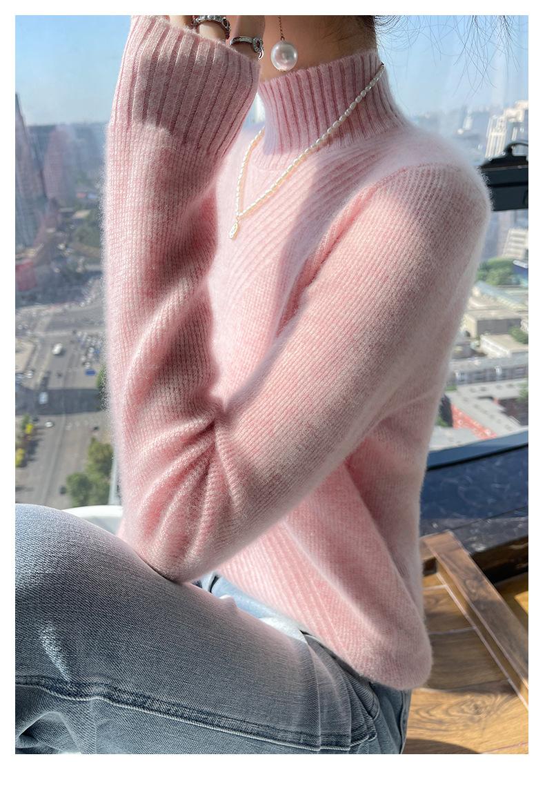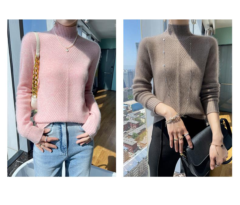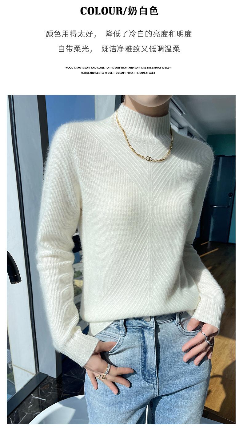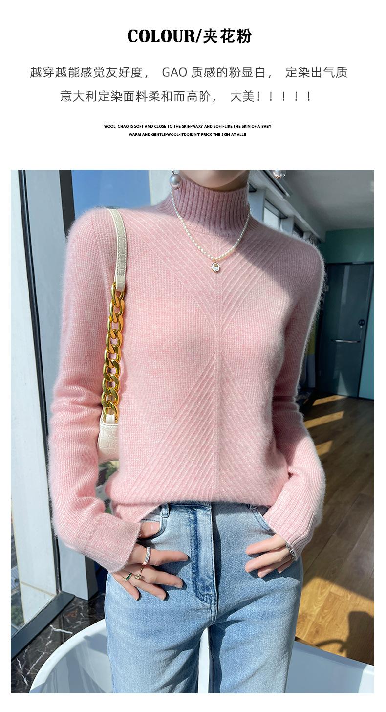 2025 Otoño/Invierno Nuevo Suéter Tejido de Lana Pura de Cuello Medio Alto Manga Larga para Mujer Color Sólido Suave Jersey Capa Base Top