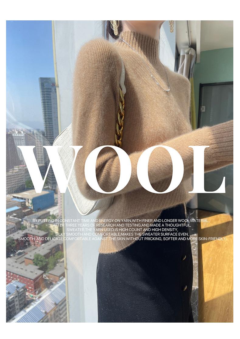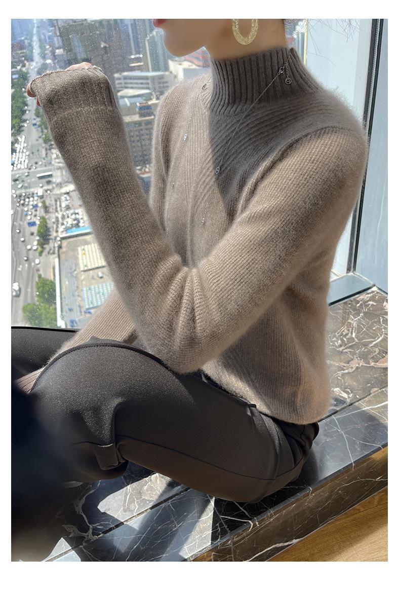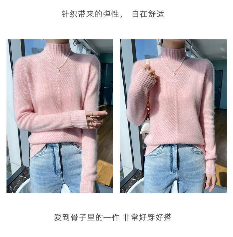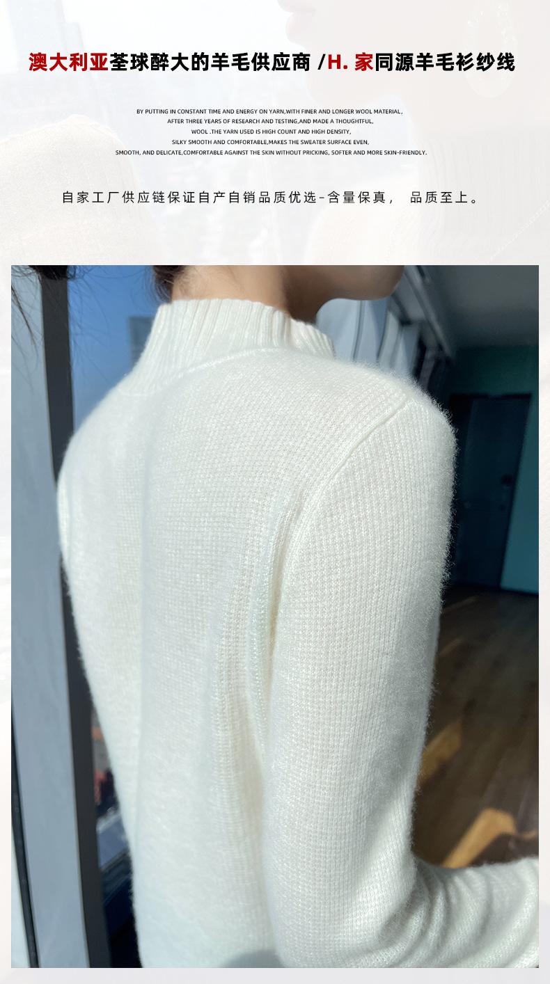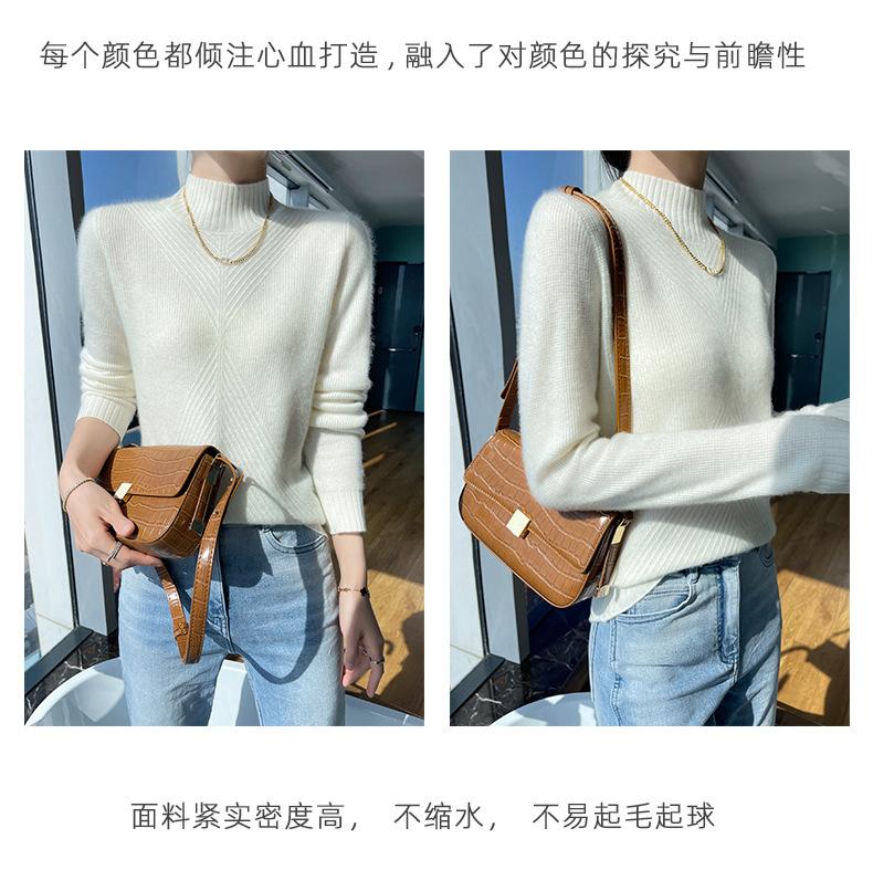 2025 Otoño/Invierno Nuevo Suéter Tejido de Lana Pura de Cuello Medio Alto Manga Larga para Mujer Color Sólido Suave Jersey Capa Base Top