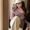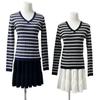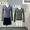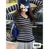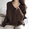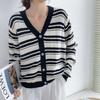 Suéter Pulóver Mujer Otoño Estilo Coreano Holgazán Top de Alta Gama Base Rayada Cuello en V Tejido de Punto Fábrica