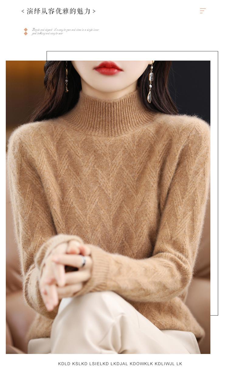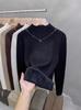 Suéter de Punto de Color Sólido para Mujer 2025 Otoño/Invierno Nuevo Suéter de Cuello Medio Alto Engrosado Moderno Adelgazante Jersey Capa Base