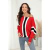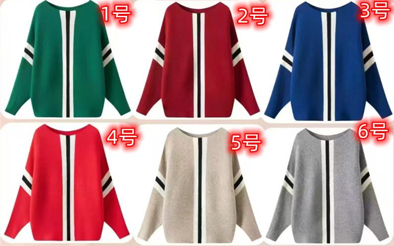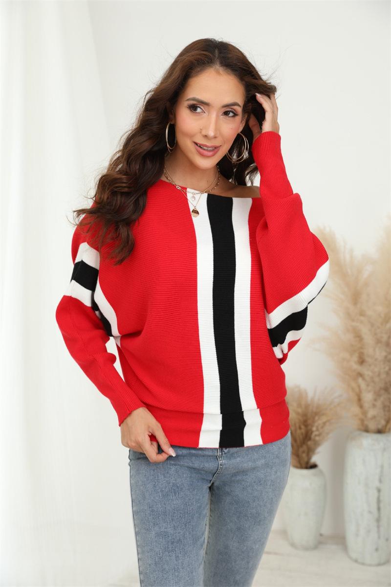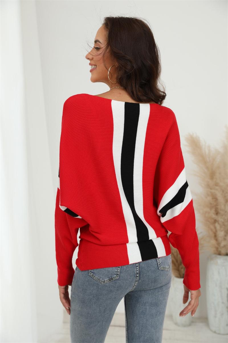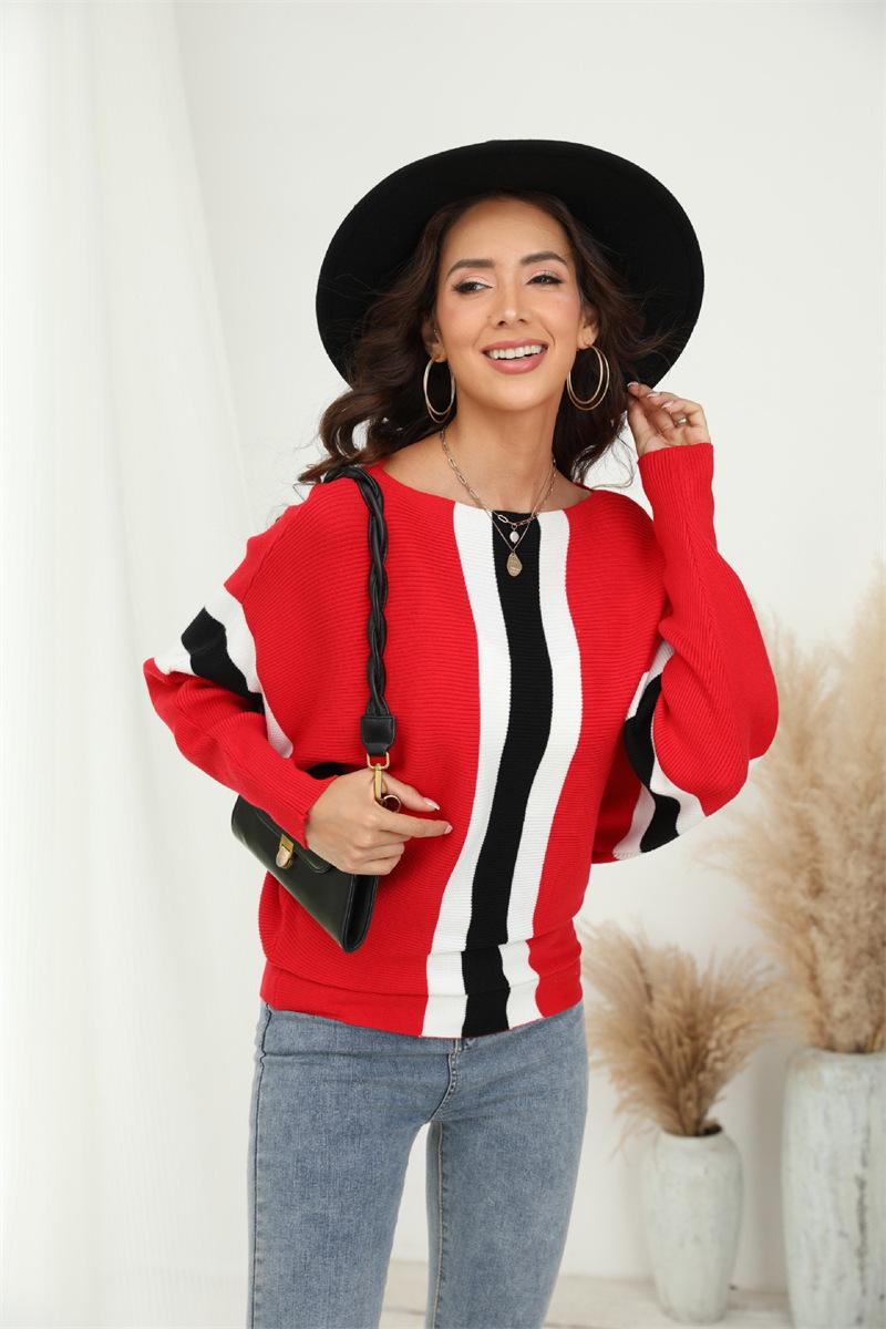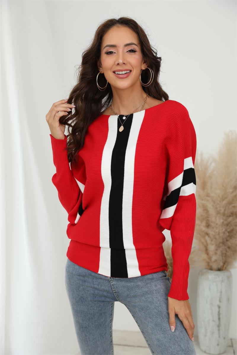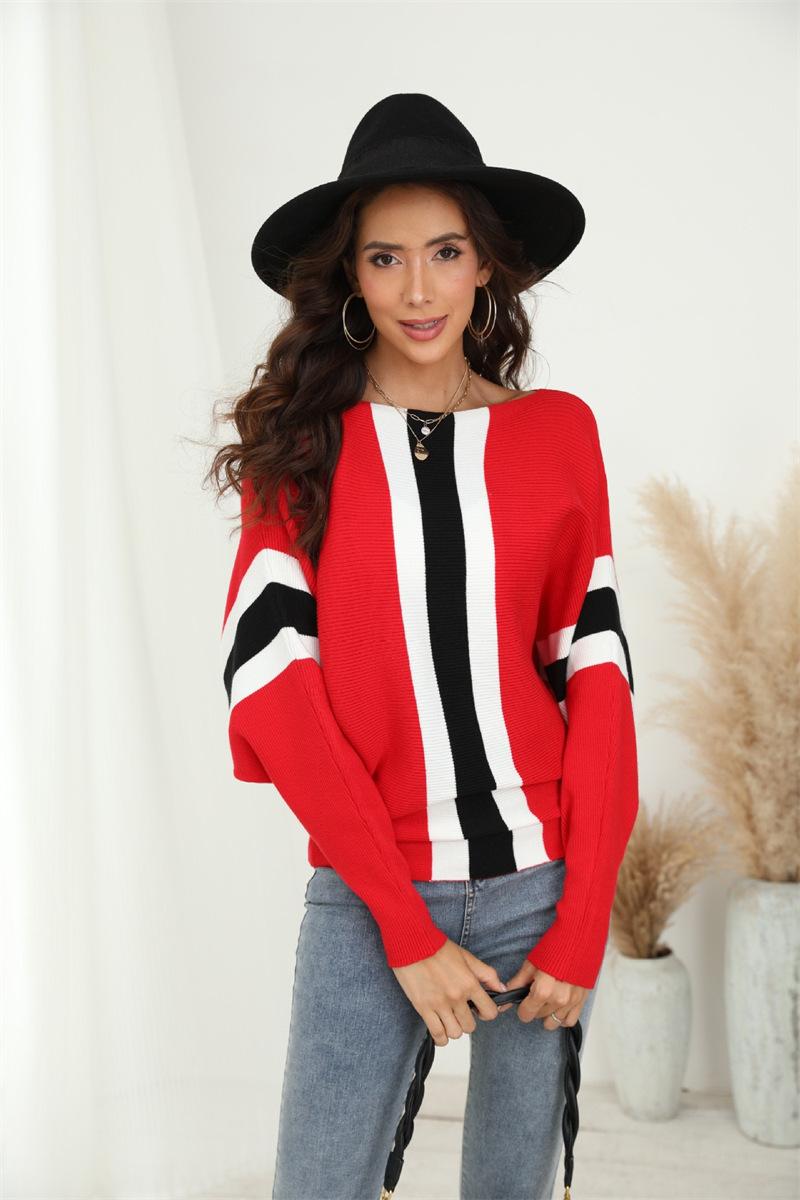 Suéter exclusivo de comercio electrónico transfronterizo para mujer europeo y americano de otoño e invierno con manga murciélago, un hombro, bloque de color a rayas, talla grande, top holgado