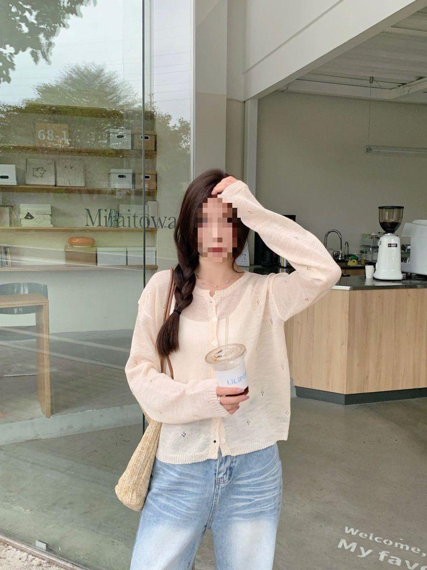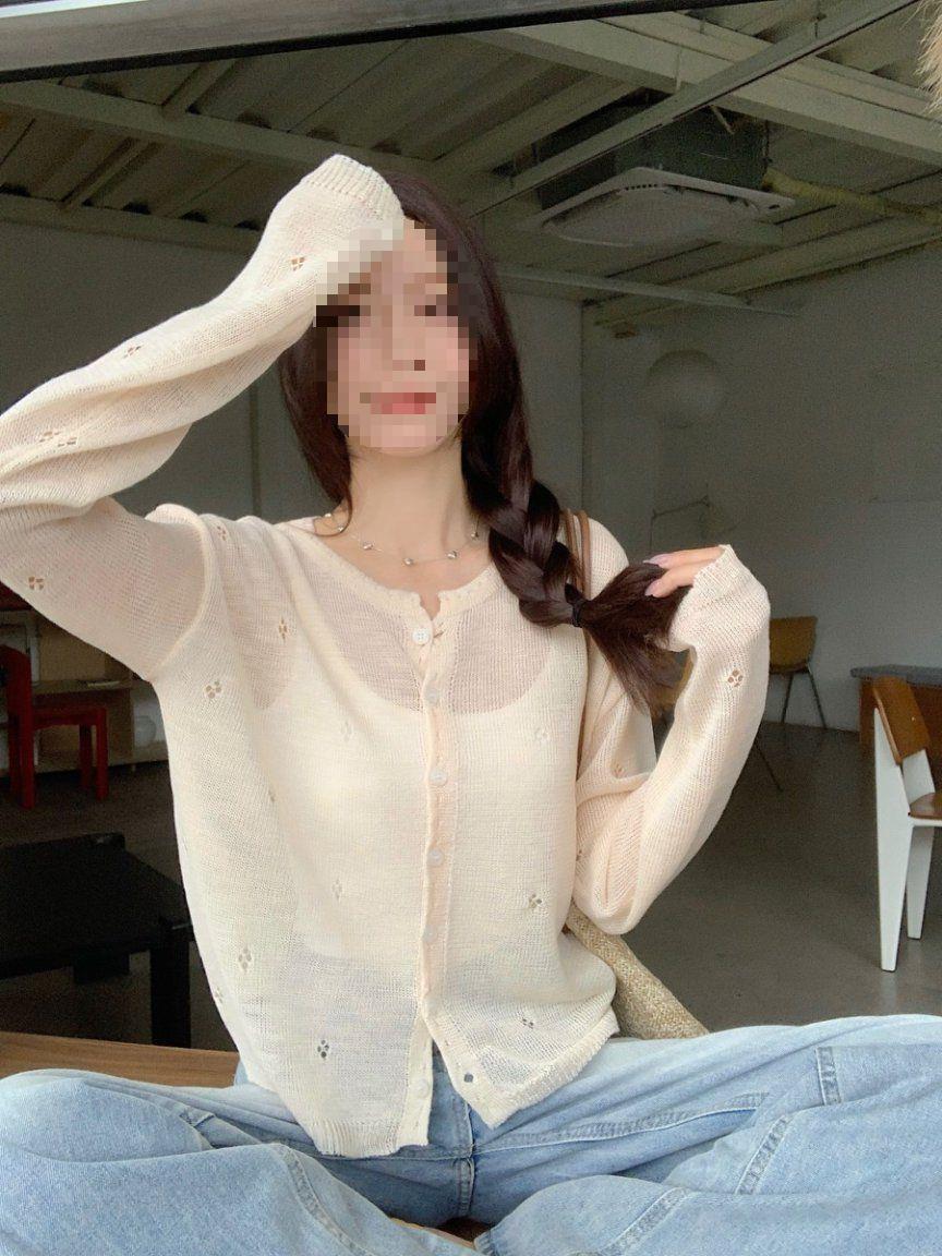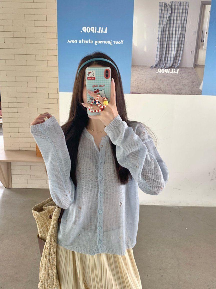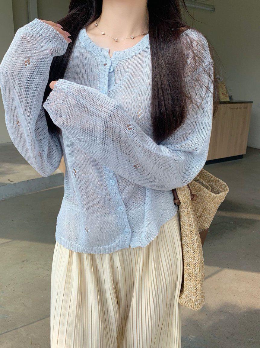 Estilo Suave Calado Crochet Suelto Protección Solar Manga Larga Cárdigan de Punto Diseño para Mujer Delgado Nuevo Top Encubridor