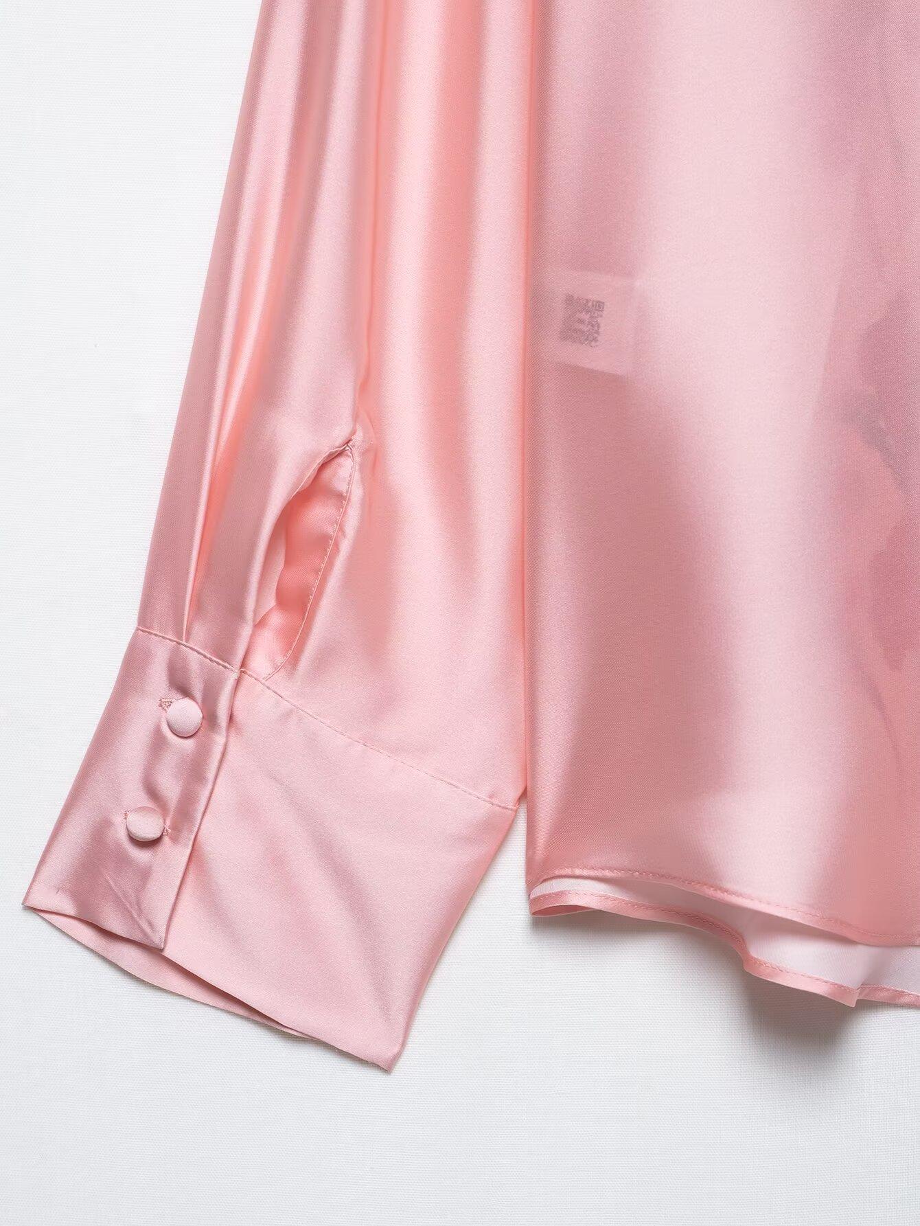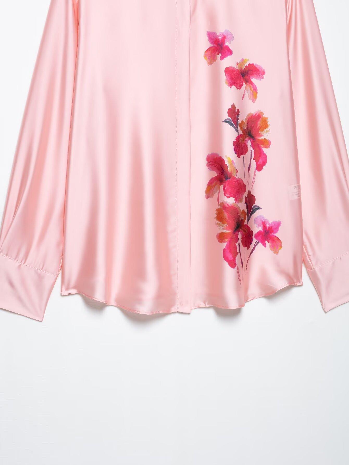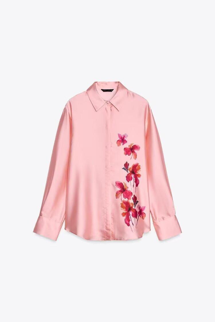 Nuevo Producto Transfronterizo 2025 Ropa de Mujer Estilo Europeo y Americano Venta al por Mayor de Comercio Exterior Camisa de Satén Estampada con Flores de Manga Larga