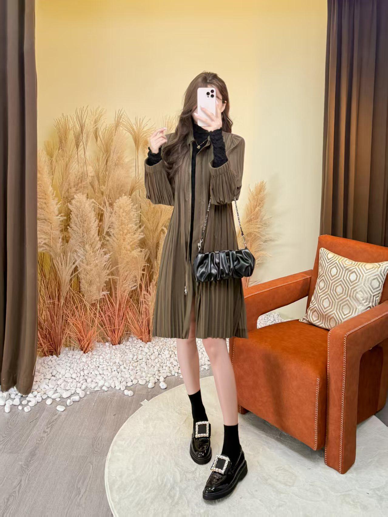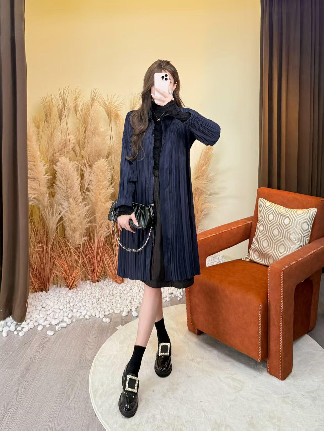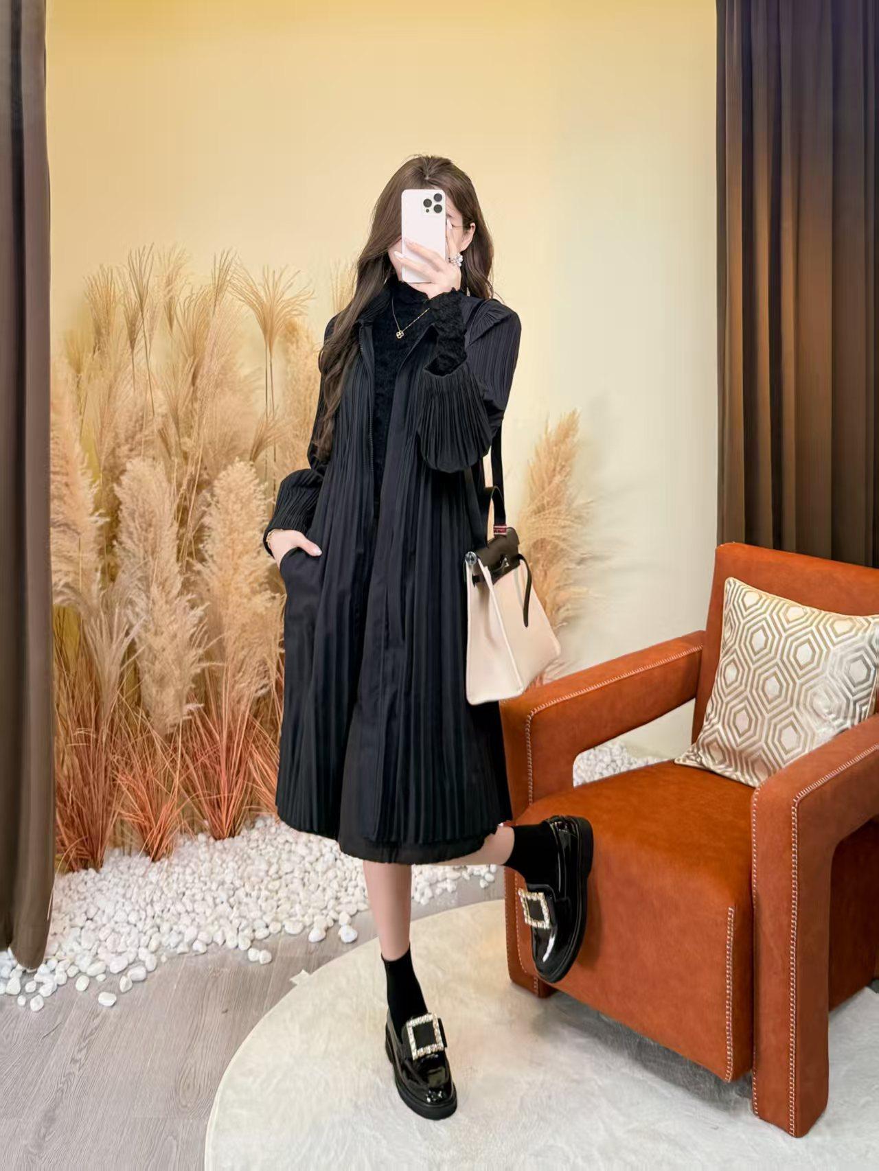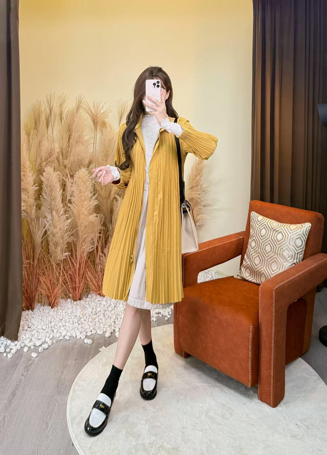 Gabardina plisada estilo mostrador Miyake para mujer, largo medio, alta gama, estilo otoño e invierno, gabardina petite, ropa exterior, conjunto de ropa para mujer
