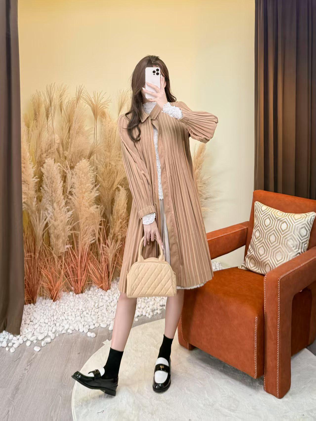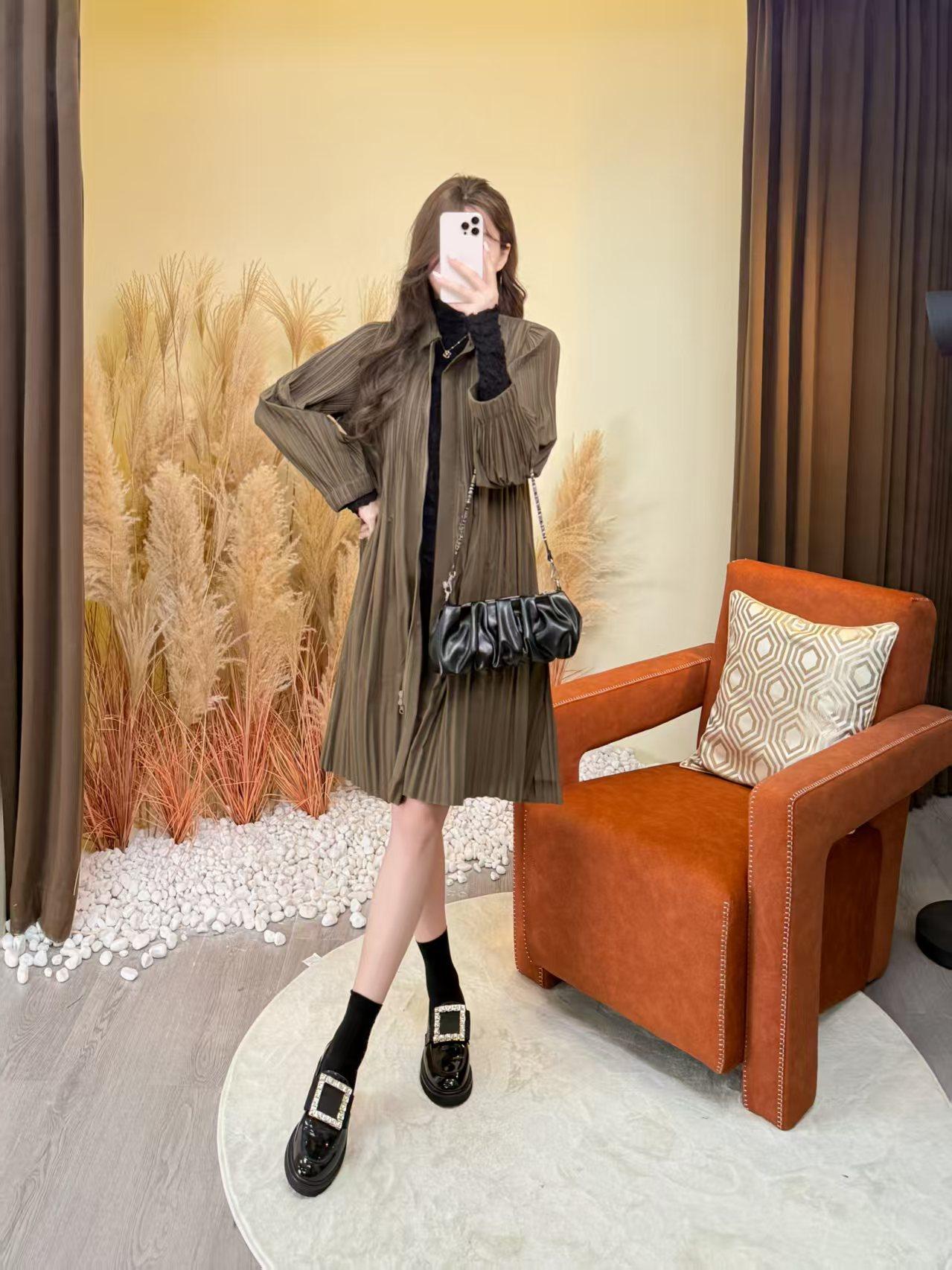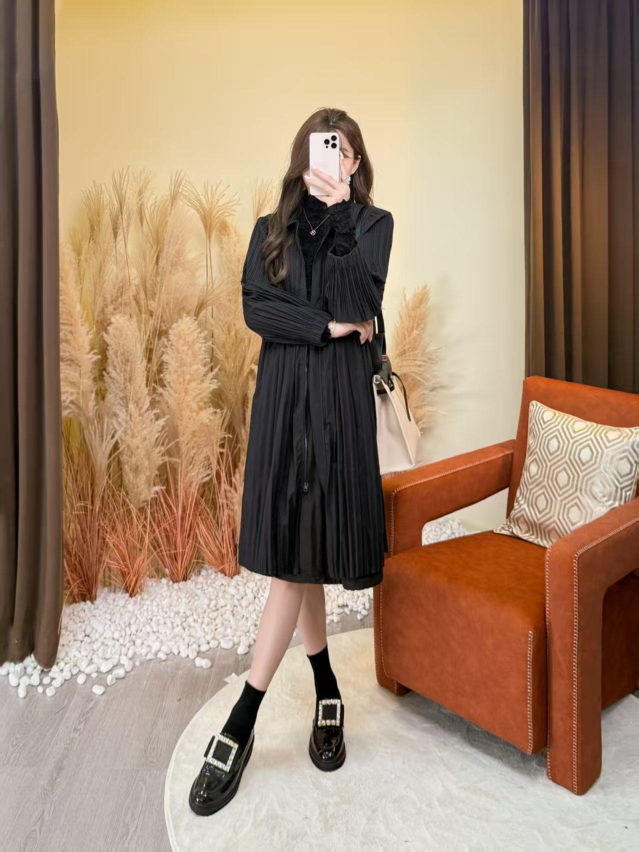 Gabardina plisada estilo mostrador Miyake para mujer, largo medio, alta gama, estilo otoño e invierno, gabardina petite, ropa exterior, conjunto de ropa para mujer