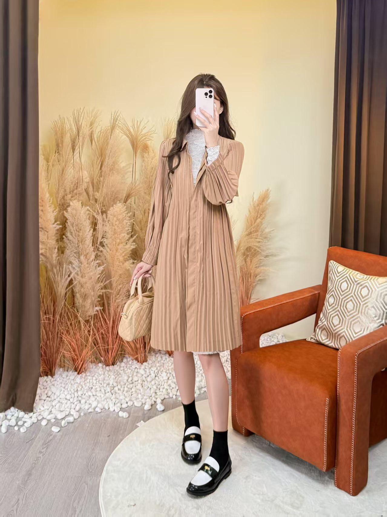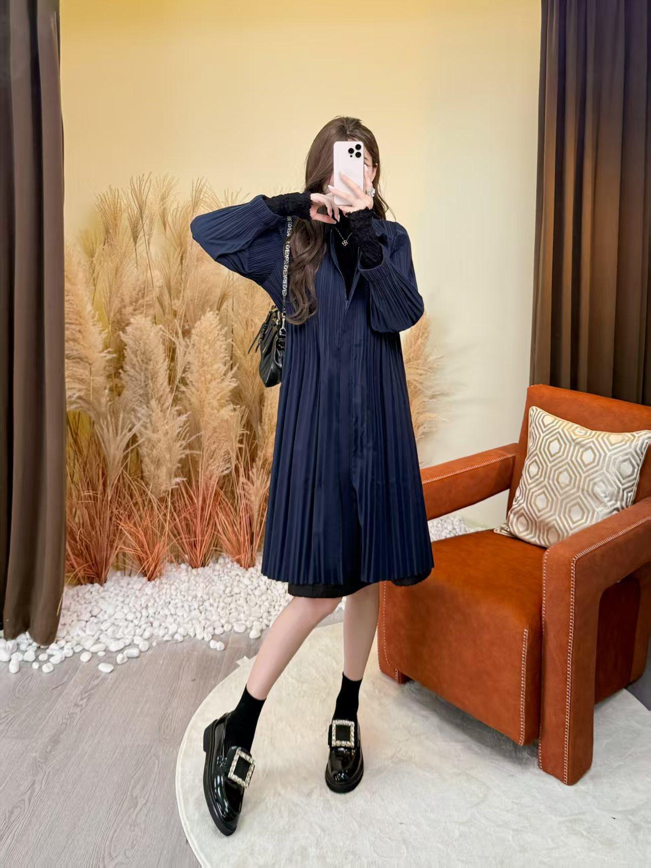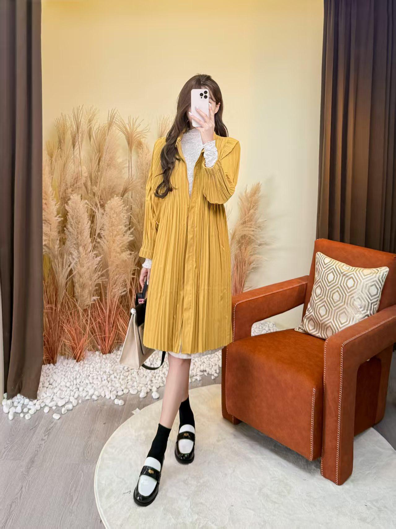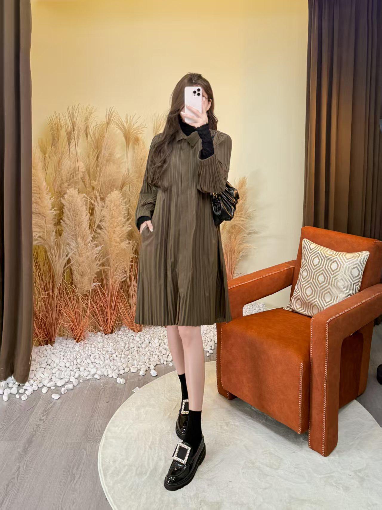 Gabardina plisada estilo mostrador Miyake para mujer, largo medio, alta gama, estilo otoño e invierno, gabardina petite, ropa exterior, conjunto de ropa para mujer