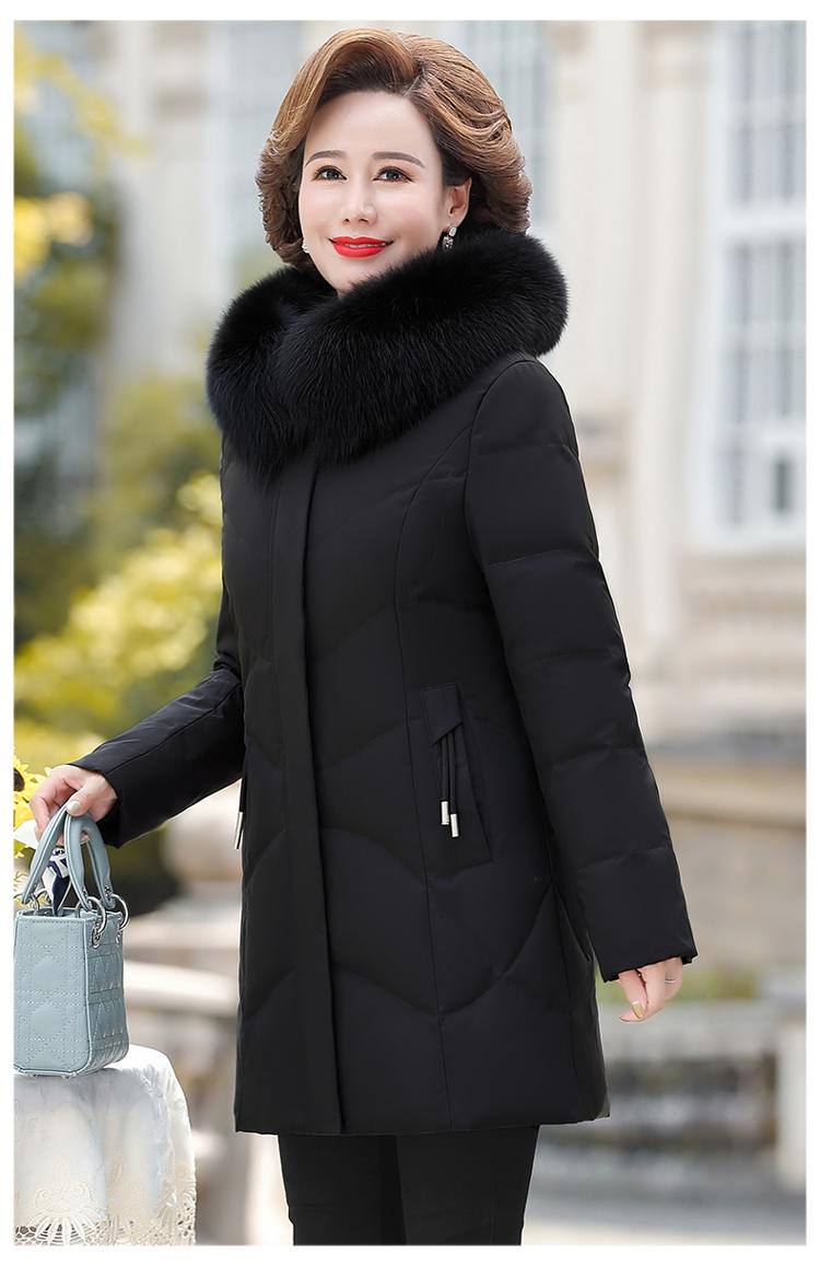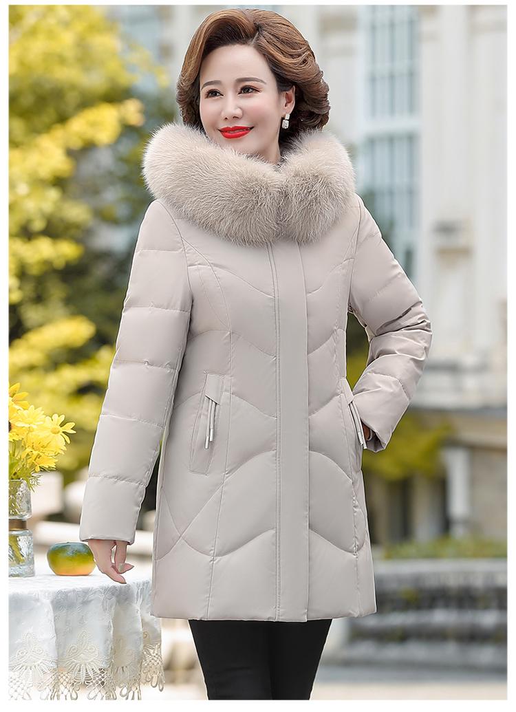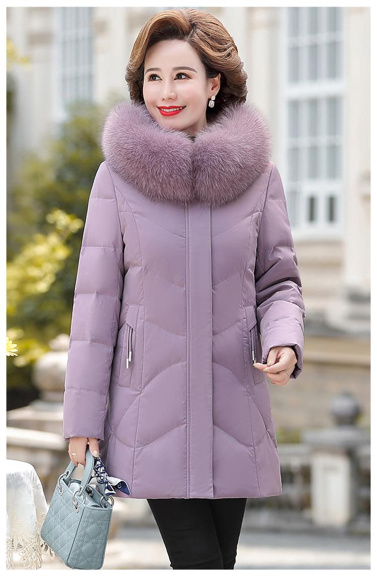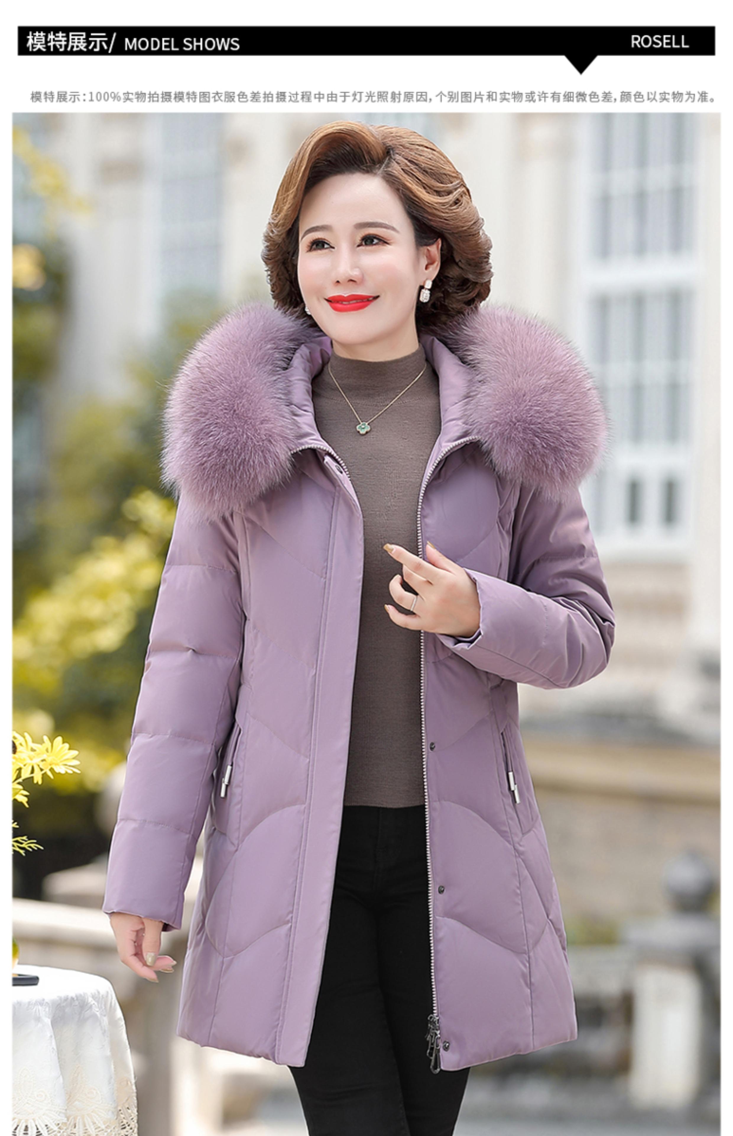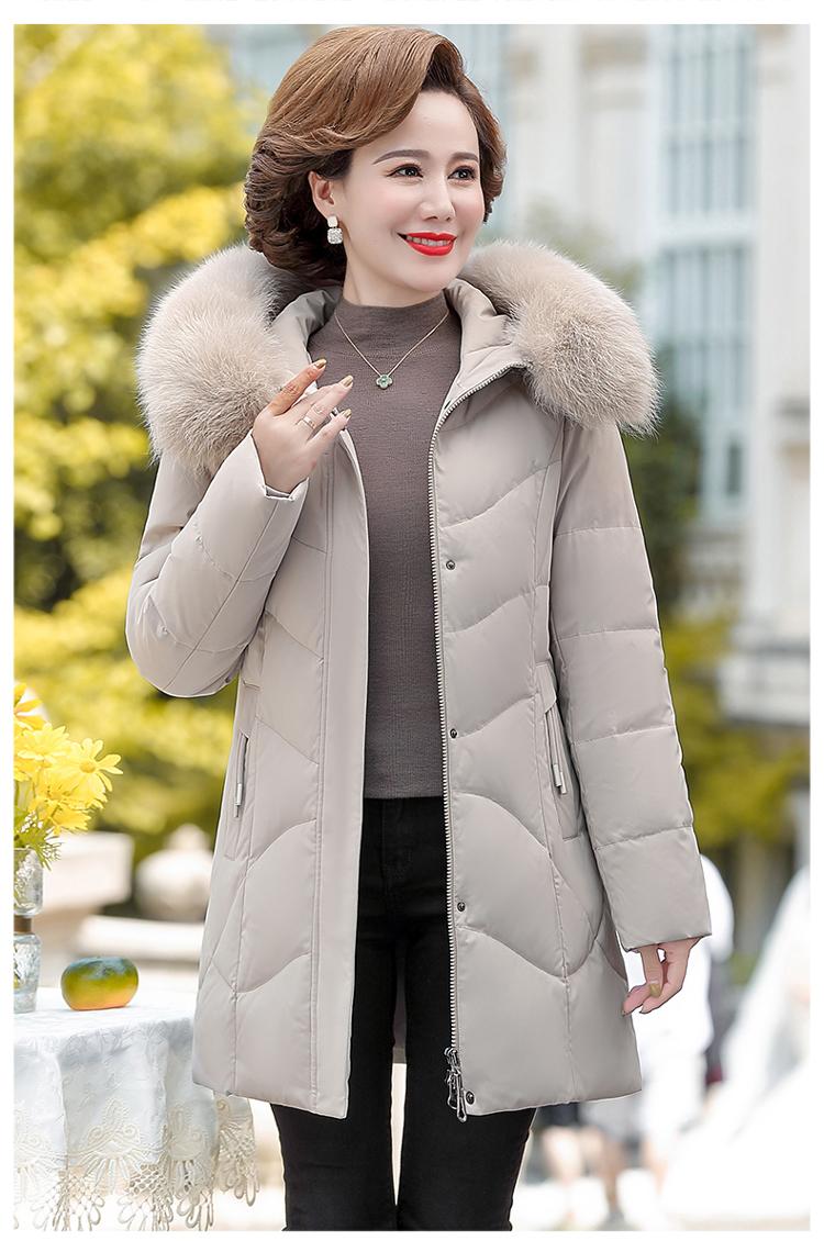 Chaqueta de Plumón de Ganso Blanco Genuino para Mujer Invierno Nueva Marca de Alta Gama Cuello de Piel de Zorro Mamá de Mediana Edad Abrigo Grueso de Longitud Media